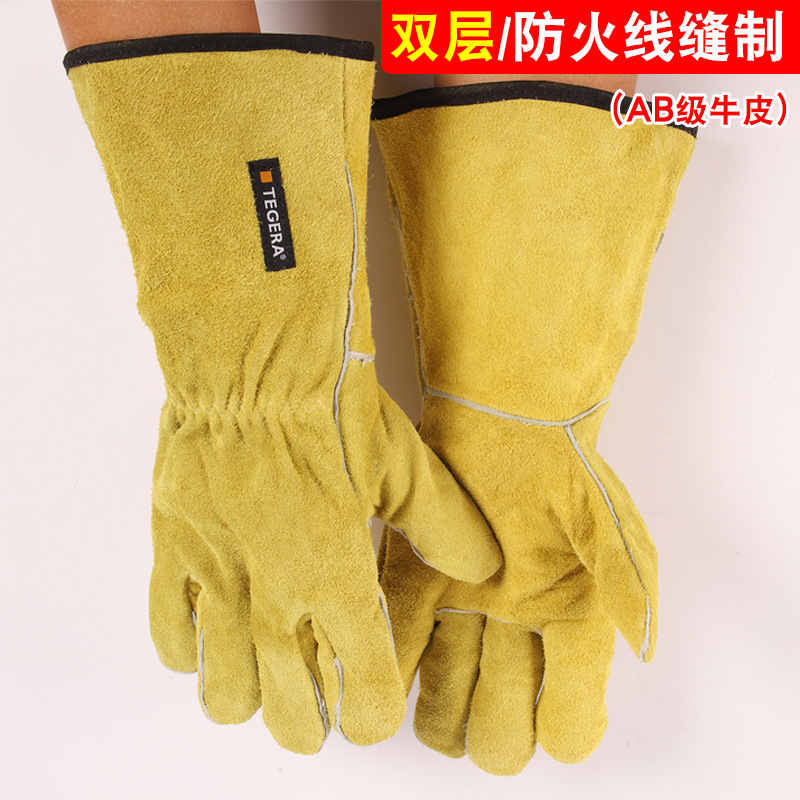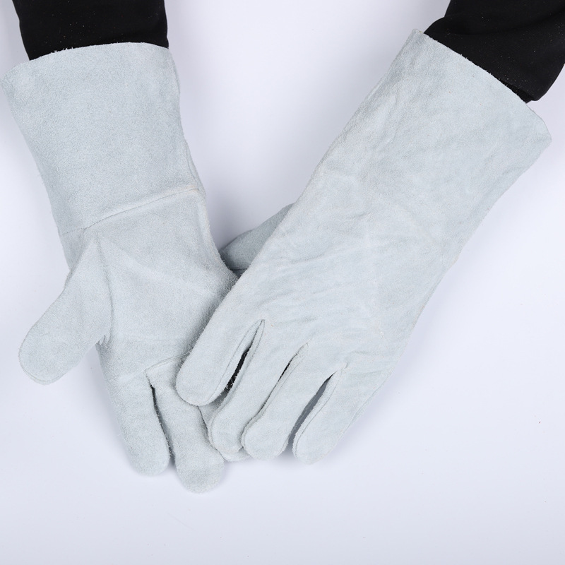 Cowhide 용접 장갑 용접 두꺼운 고온 단열 안티 scald 원예 안티 펑크 야외 긴 장갑 Maiao