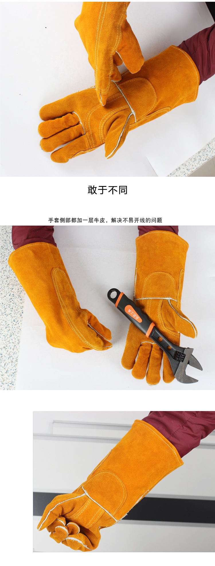 Cowhide 용접 장갑 용접 두꺼운 고온 단열 안티 scald 원예 안티 펑크 야외 긴 장갑 Maiao스토어 가기