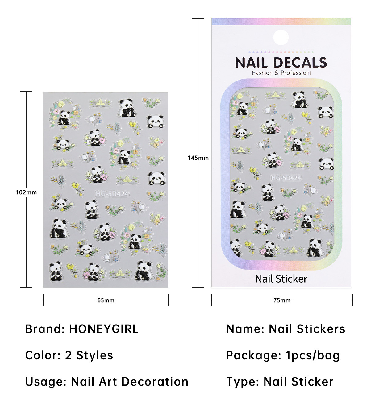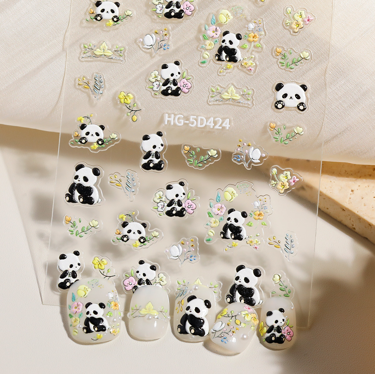 봄 핑크 장미 네일 스티커 5D 양각 입체 귀여운 자이언트 팬더 네일 아트 스티커 쥬얼리 HG 스타일스토어 가기