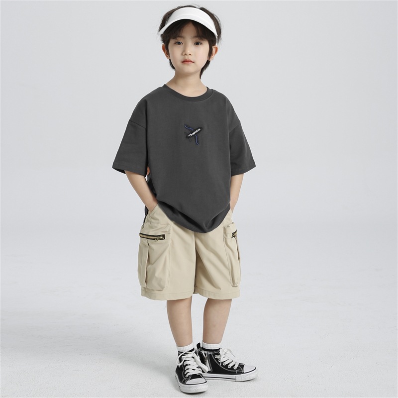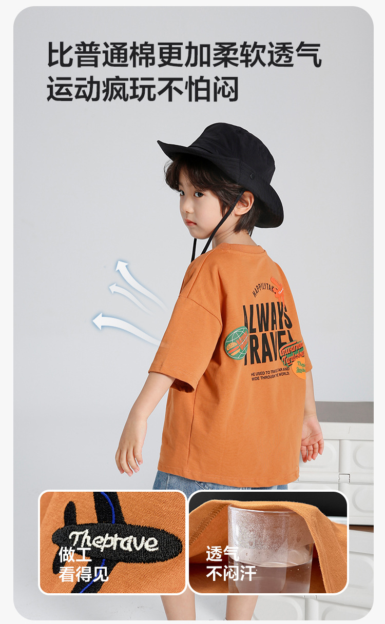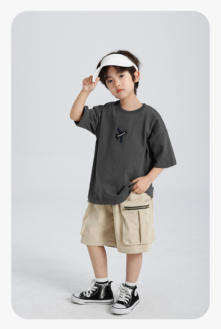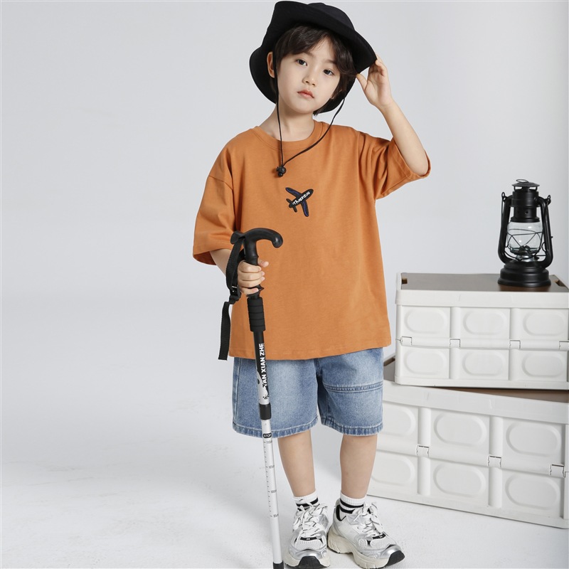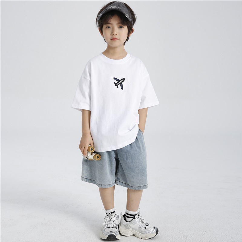 Haima의 2025 년 여름 새 소년 소녀 항공기 인쇄면 반팔 티셔츠 여름 옷 한국 아동복스토어 가기