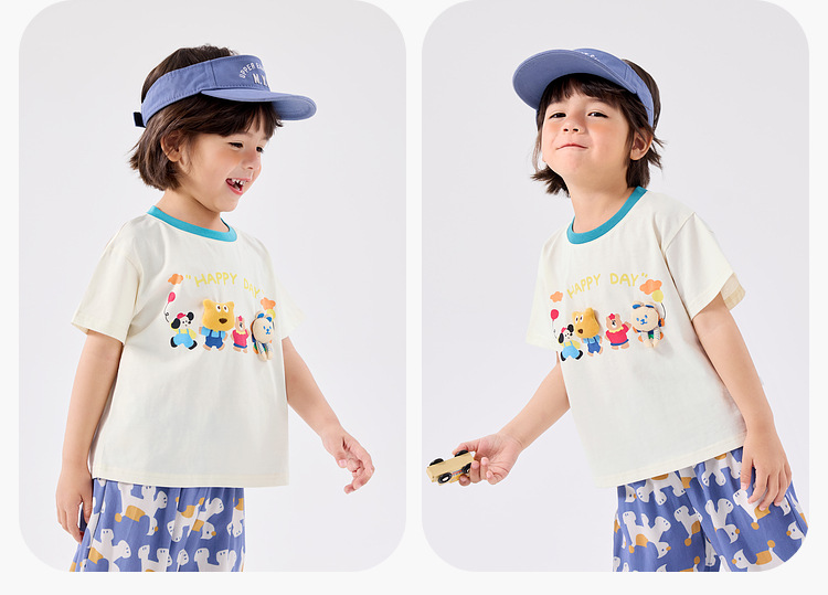 [100 면] 낙서 어린이 3 차원 만화 티셔츠 여름 새 여자 짧은 소매 여름 소년 아동복스토어 가기