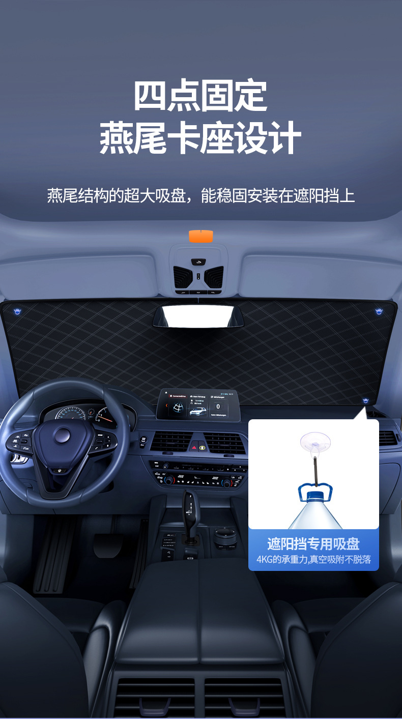 新款镭射炫彩磁吸汽车遮阳帘 不透光钛银反射遮阳挡车用侧窗帘