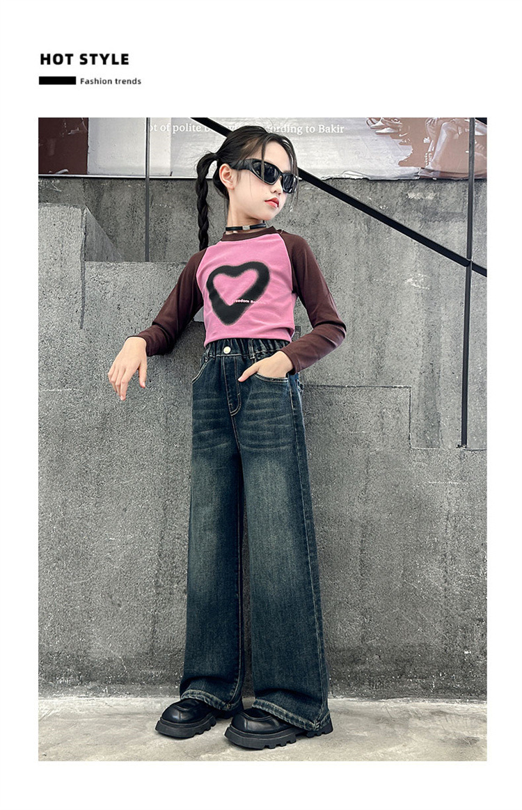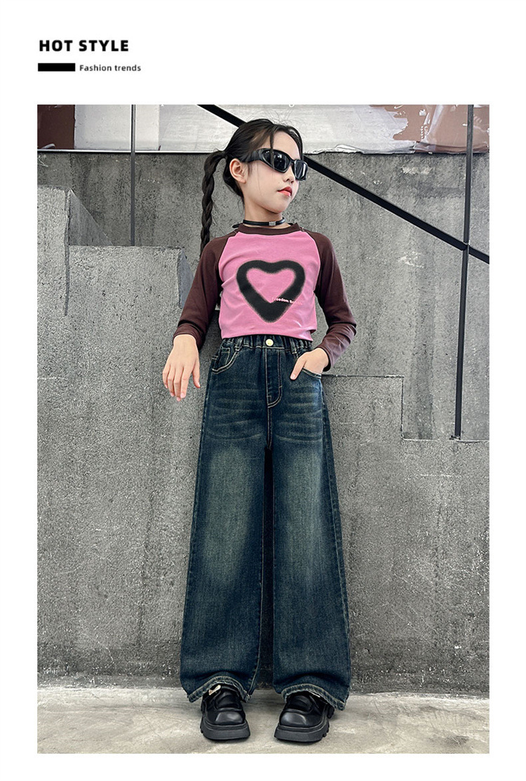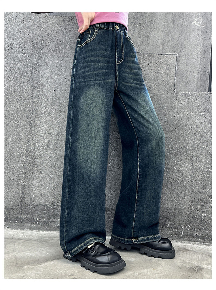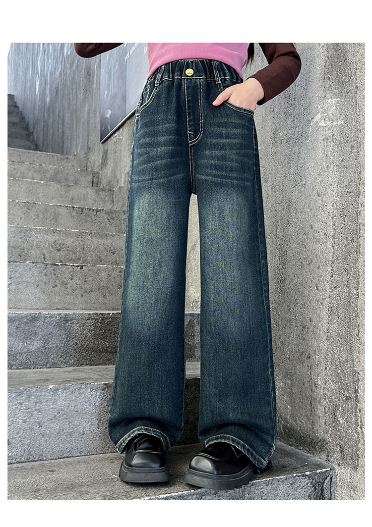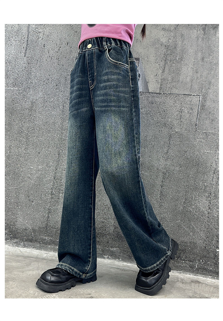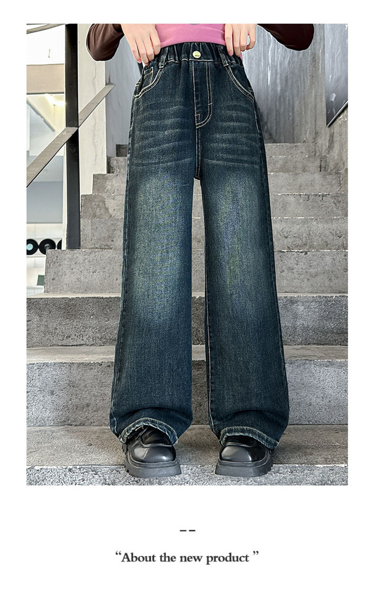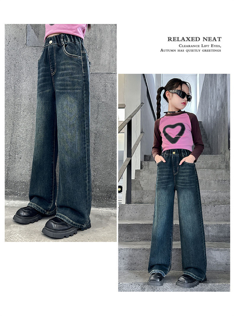 어린이와 소녀를위한 가을 바지 스트레이트-다리 와이드 다리 청바지 큰 어린이와 어린 소녀 새로운 봄과 가을 2025 바지스토어 가기