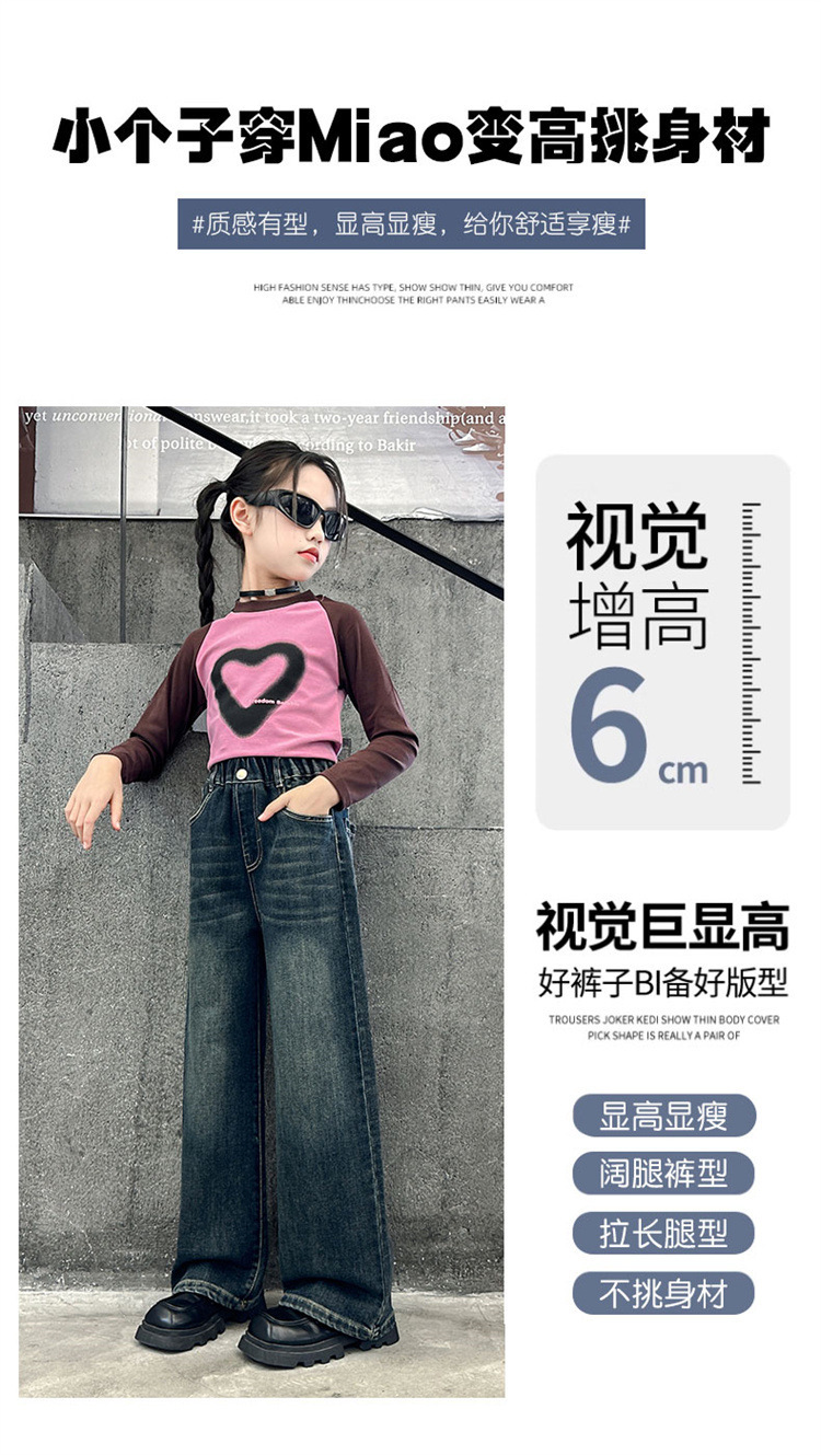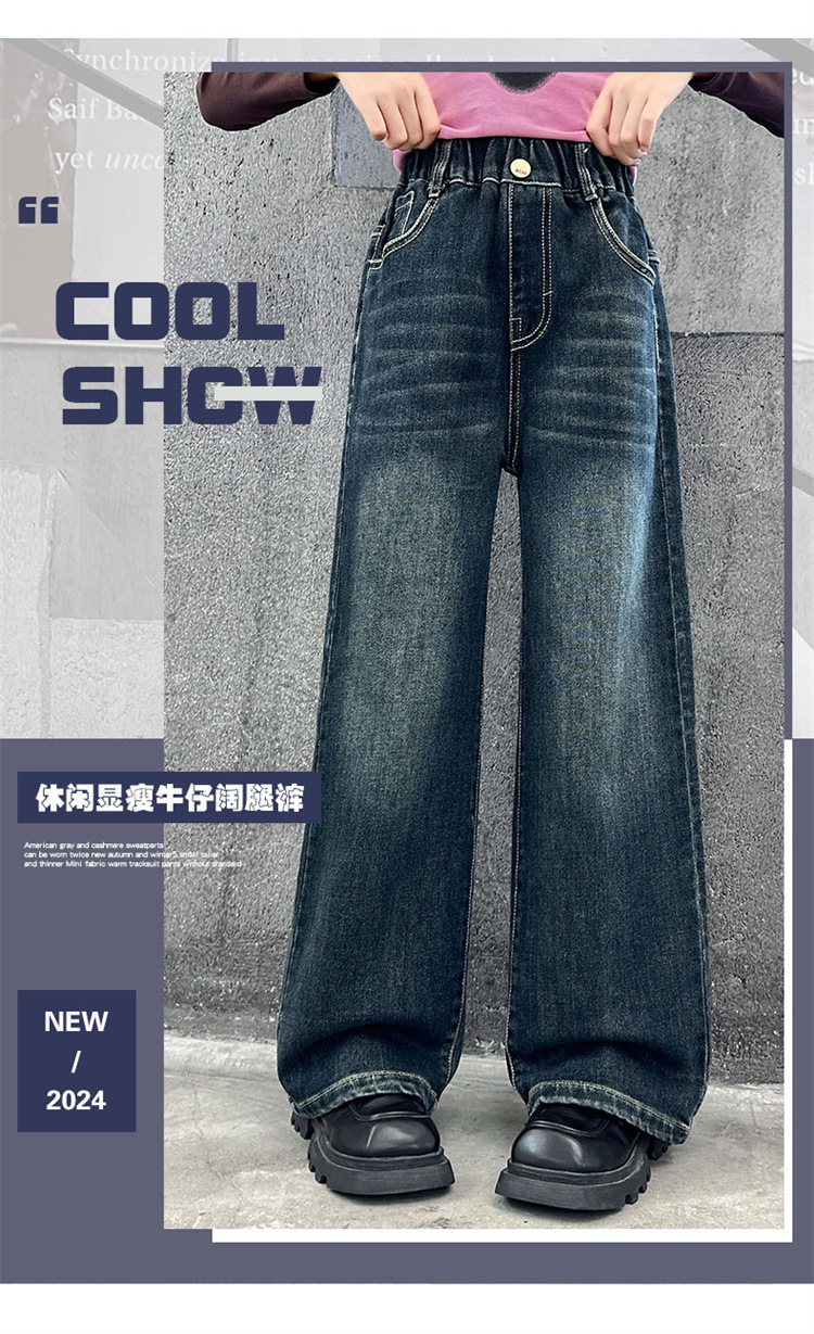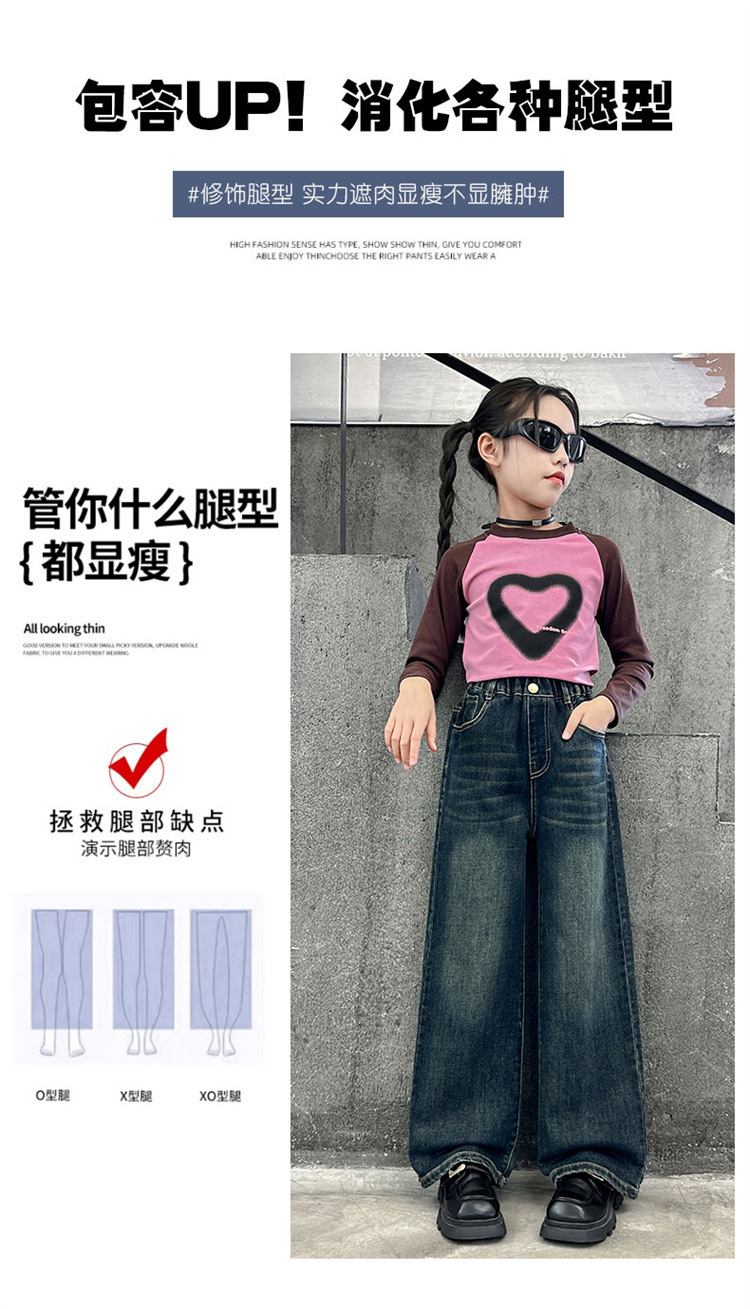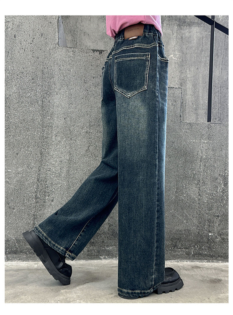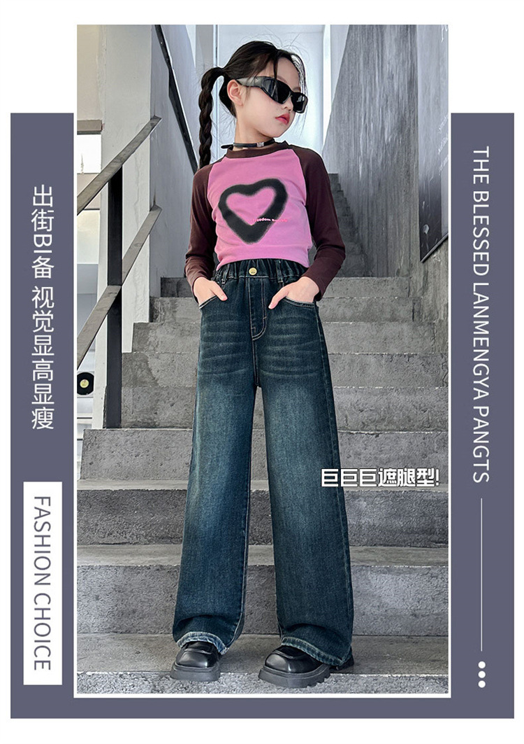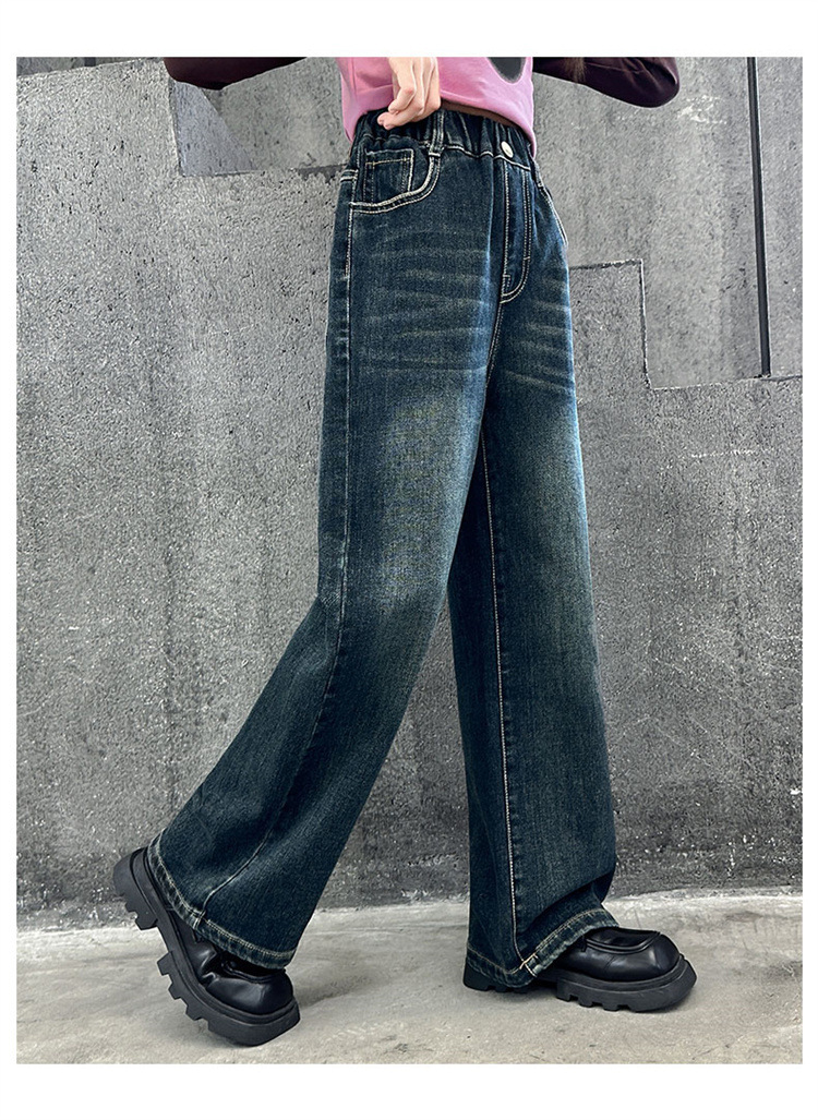 어린이와 소녀를위한 가을 바지 스트레이트-다리 와이드 다리 청바지 큰 어린이와 어린 소녀 새로운 봄과 가을 2025 바지스토어 가기