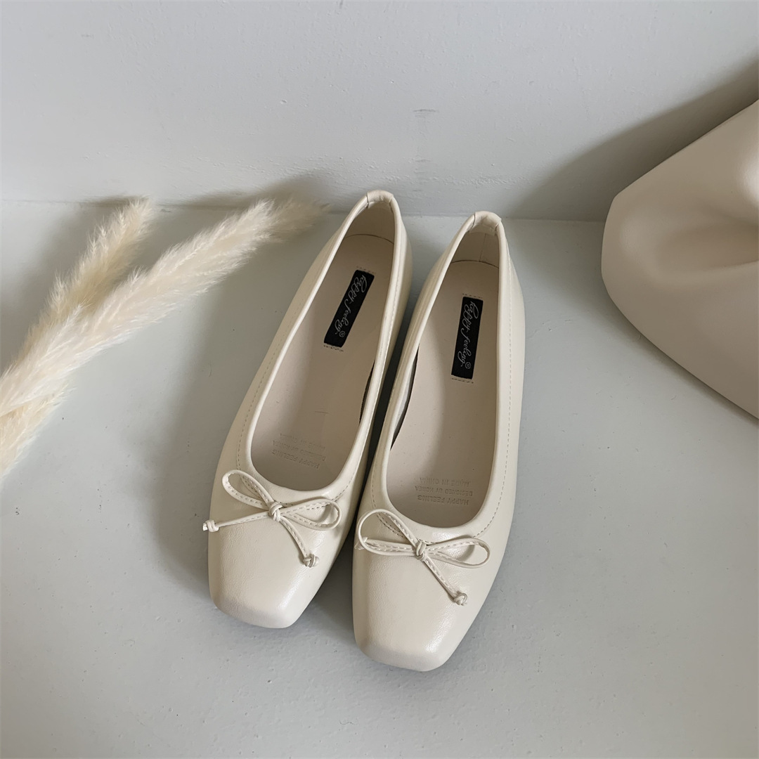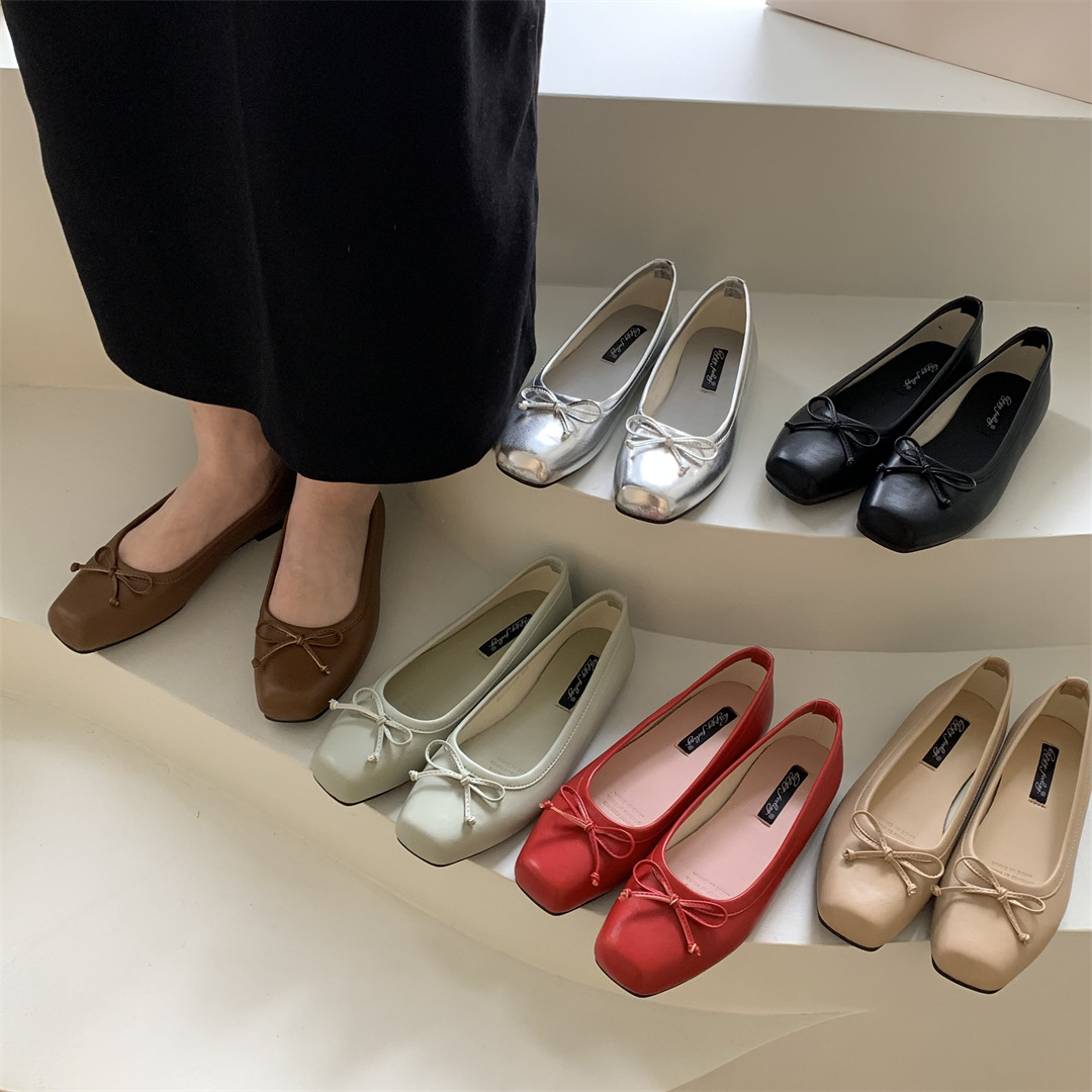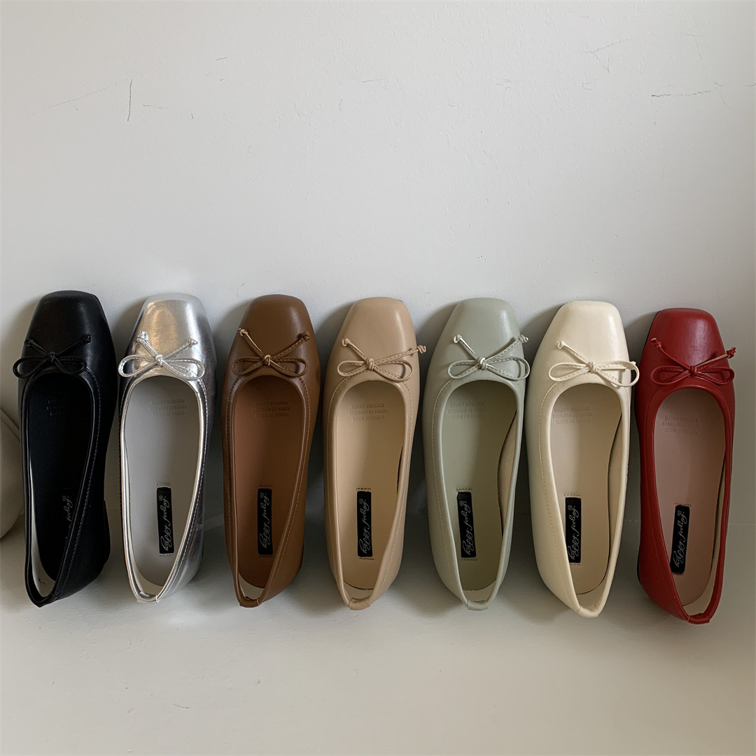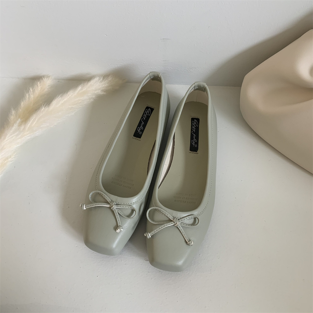 여성을위한 부드러운 요정 펌프 보우 신발 2025 새로운 봄, 가을 새로운 스퀘어 토 게으른 발레 슈즈