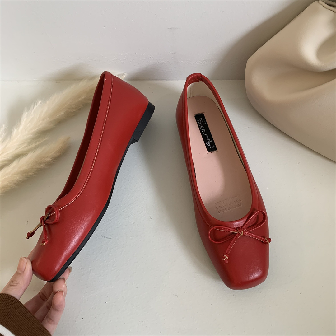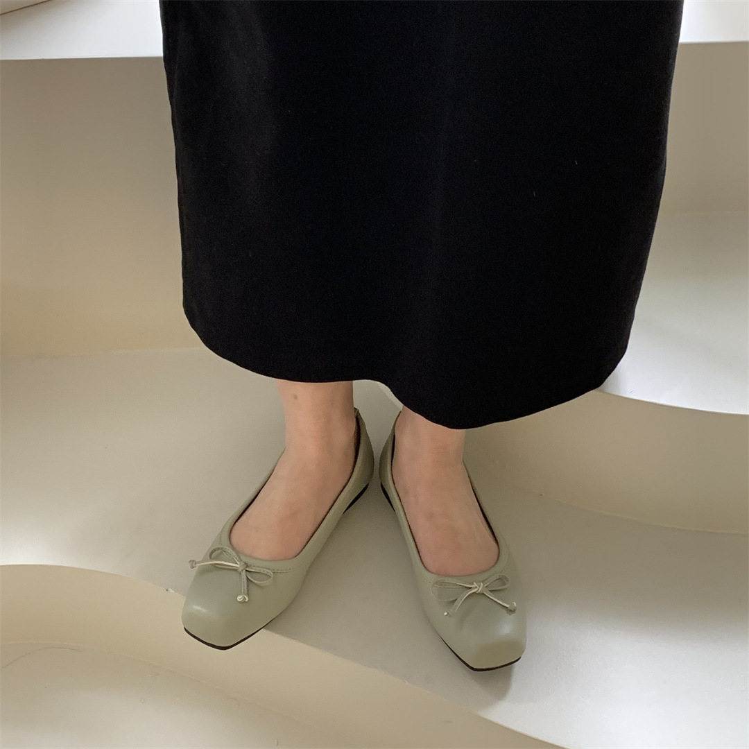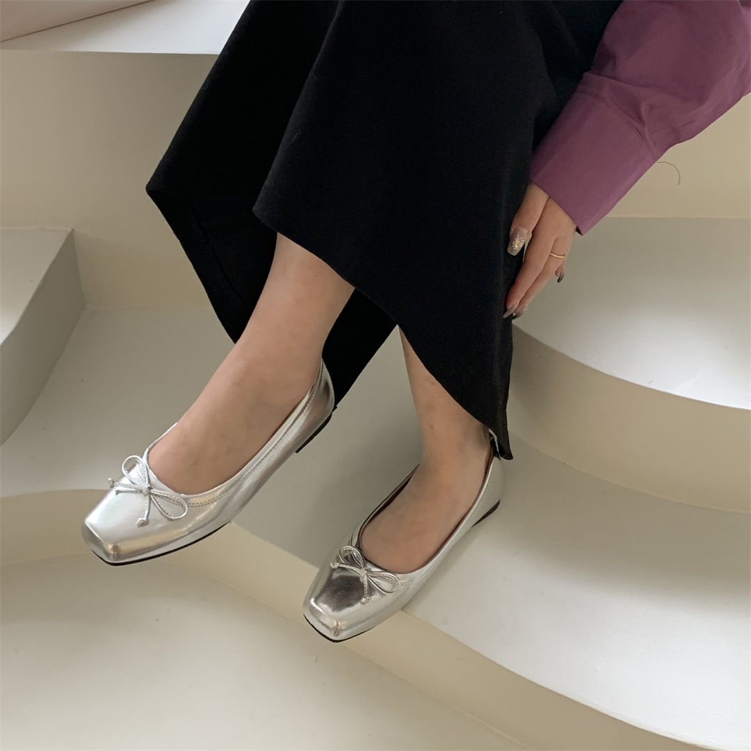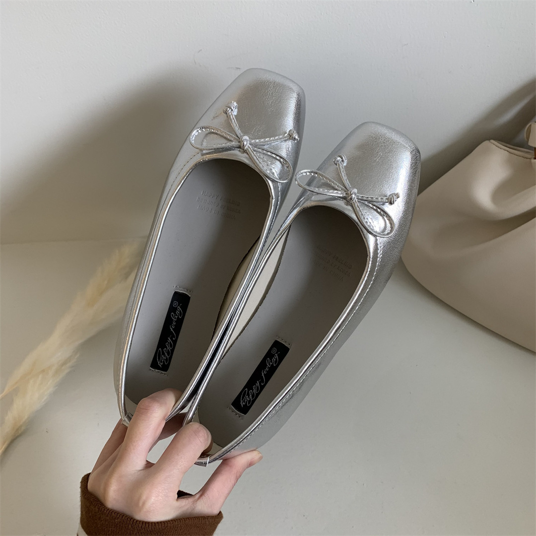 여성을위한 부드러운 요정 펌프 보우 신발 2025 새로운 봄, 가을 새로운 스퀘어 토 게으른 발레 슈즈