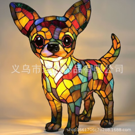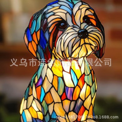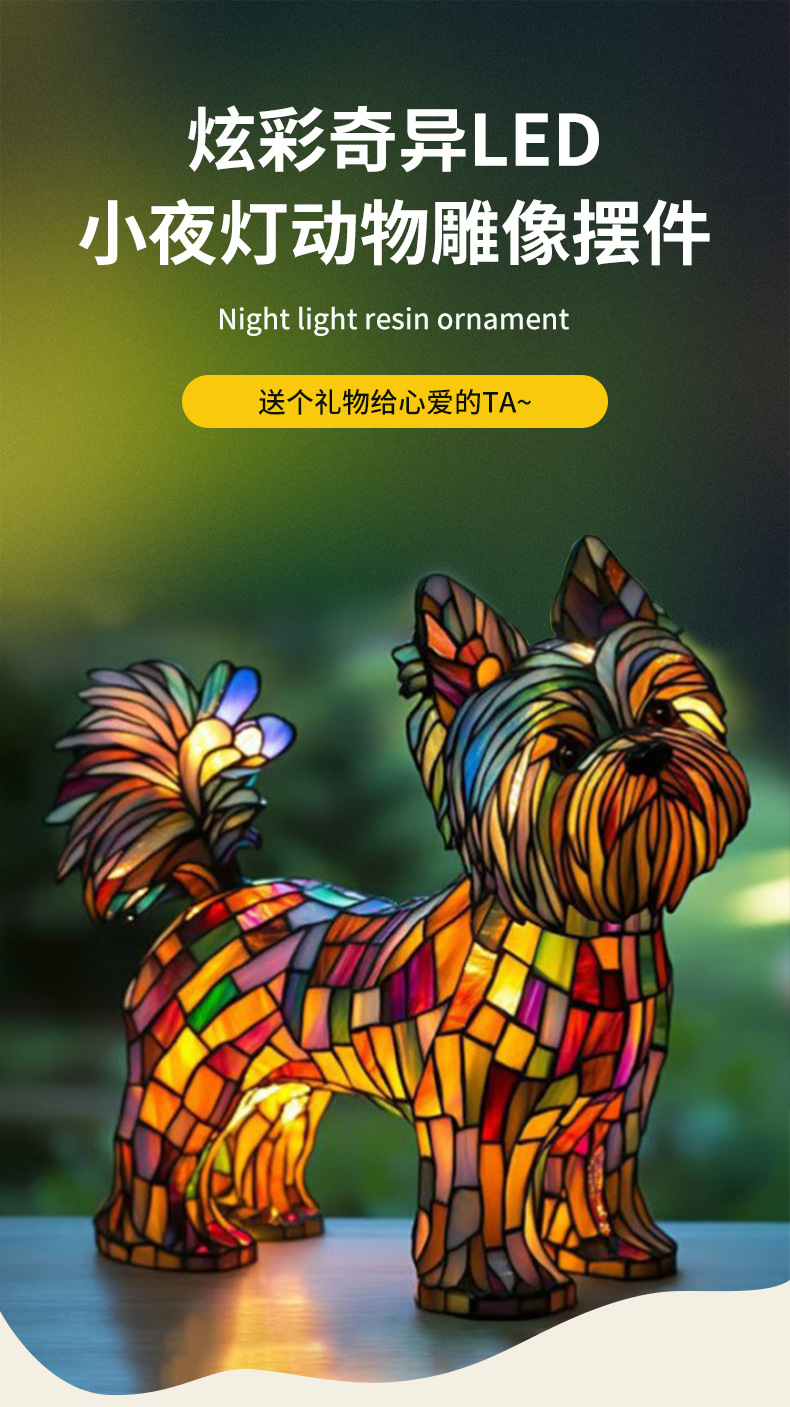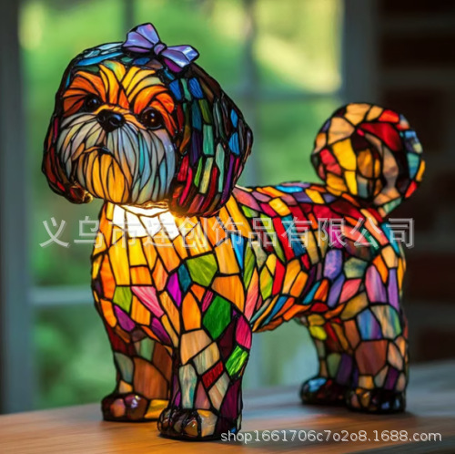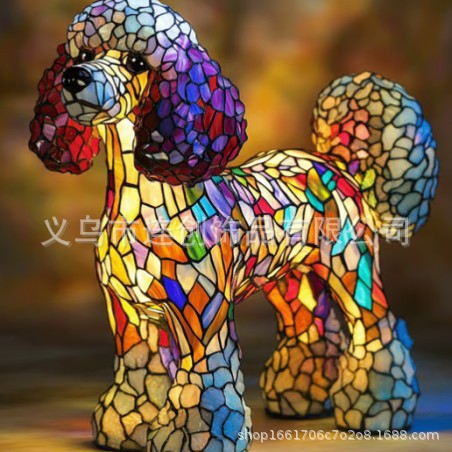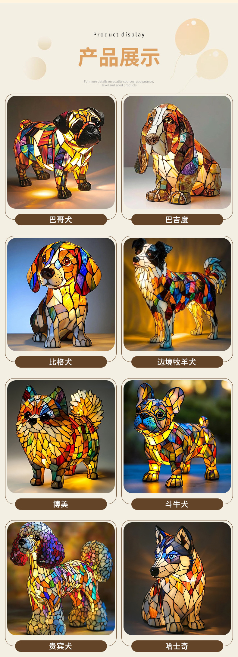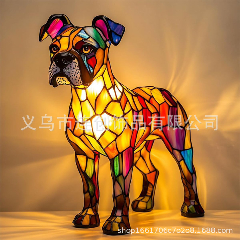 국경 다채로운 기괴한 개 램프 수지 장식 LED 밤 빛 동물 동상 홈 데스크탑 장식 장식품스토어 가기