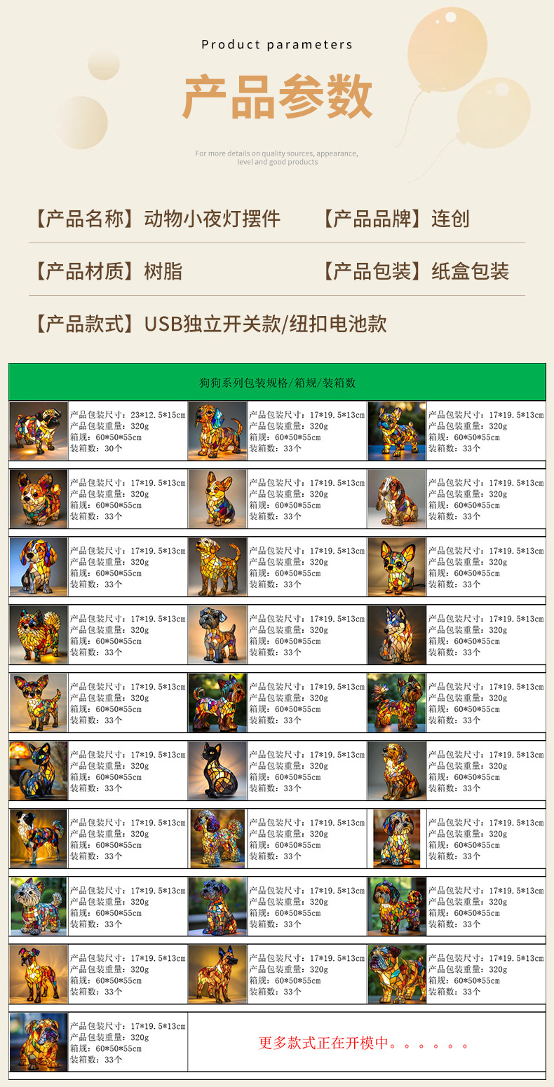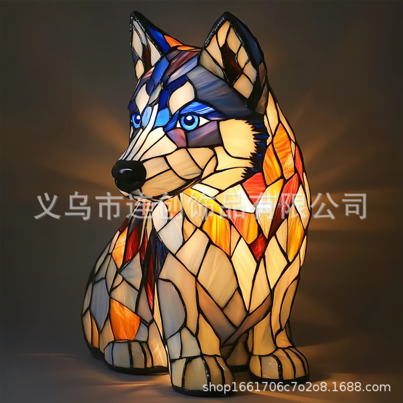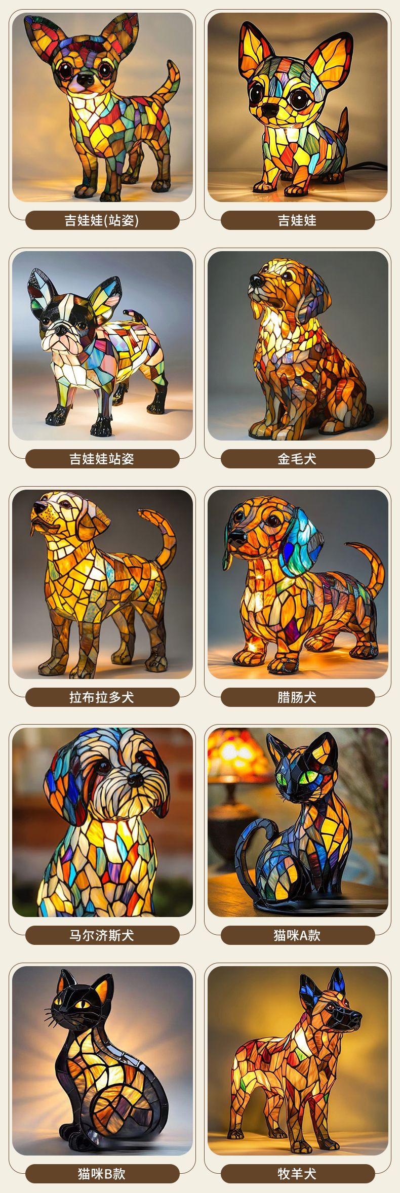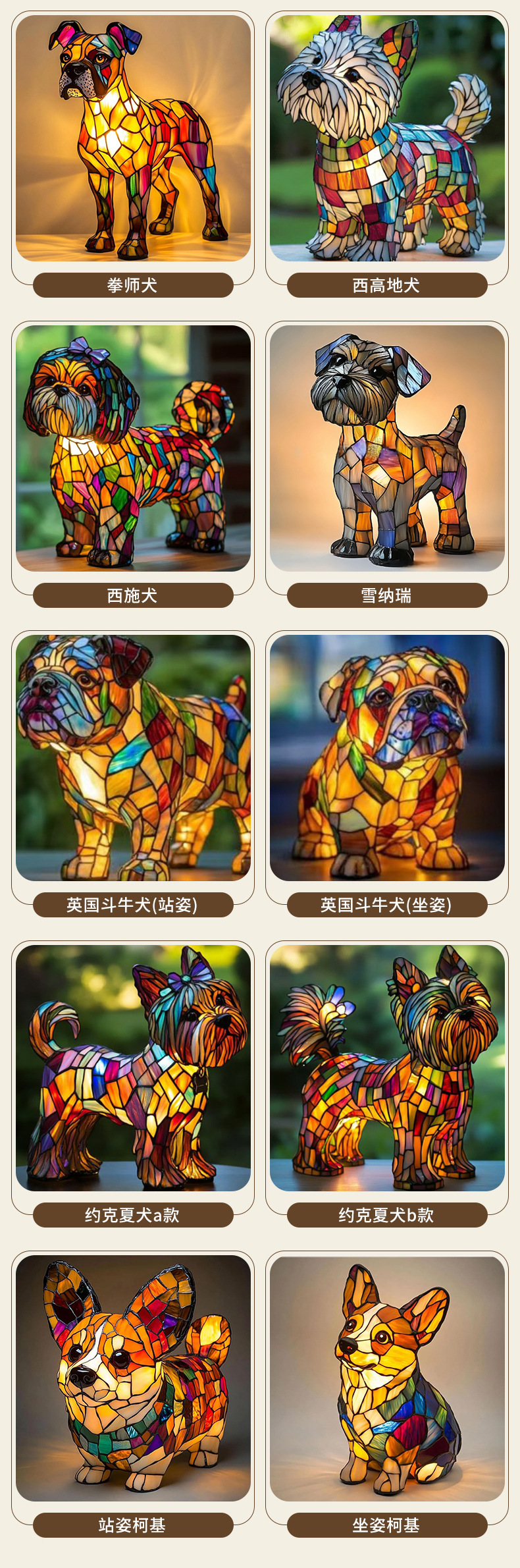 국경 다채로운 기괴한 개 램프 수지 장식 LED 밤 빛 동물 동상 홈 데스크탑 장식 장식품스토어 가기