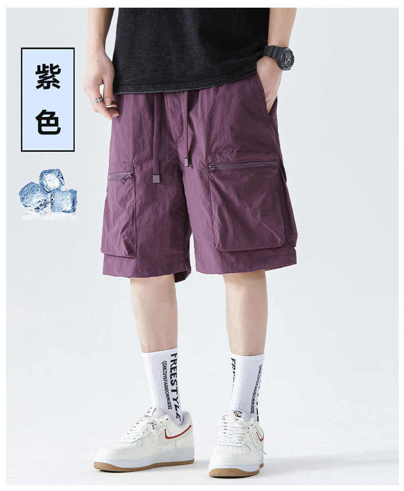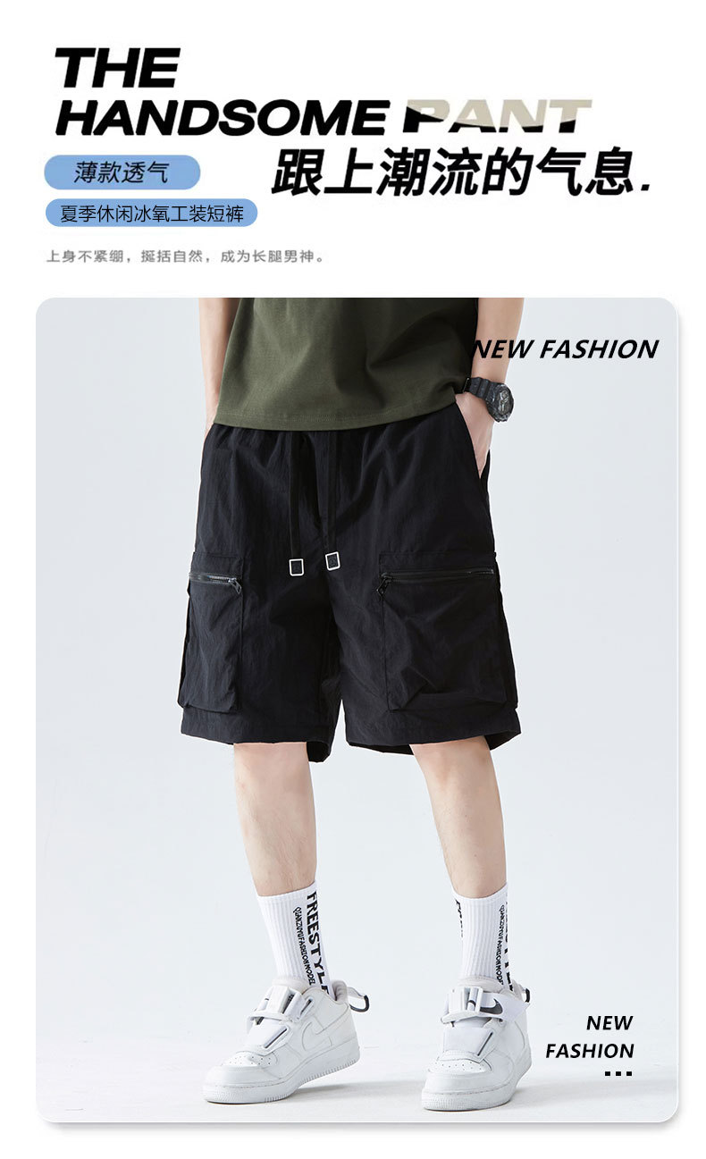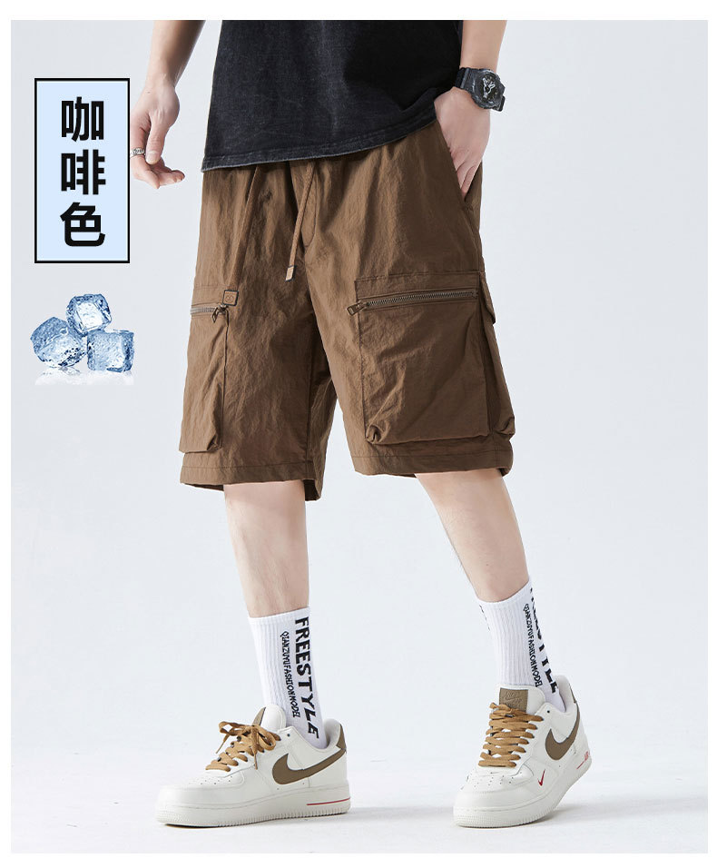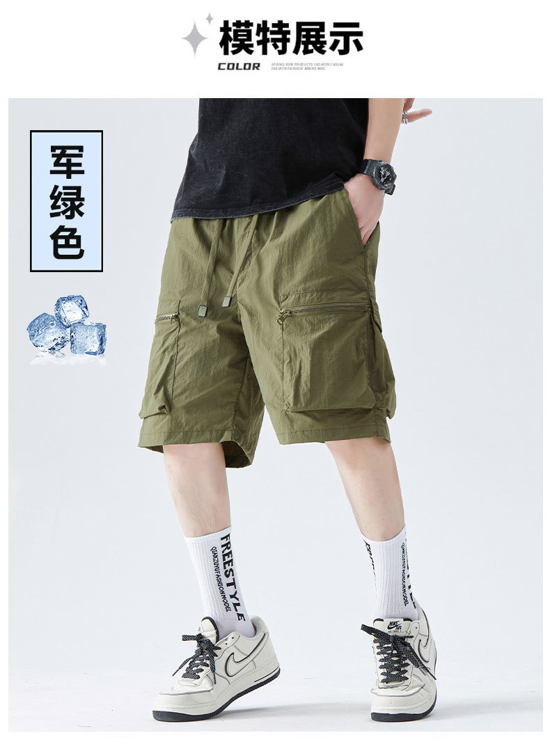 속건성 멀티 포켓 카고 팬츠, 남성용 루즈한 여름 신작 캐주얼 5부 팬츠, 아이스 실크 스포츠 반바지스토어 가기