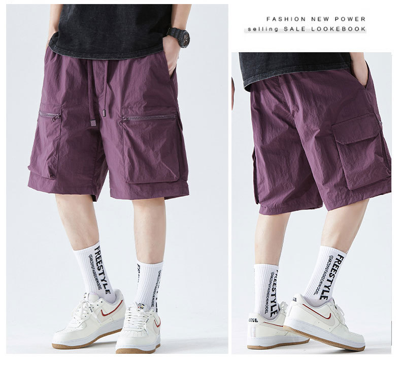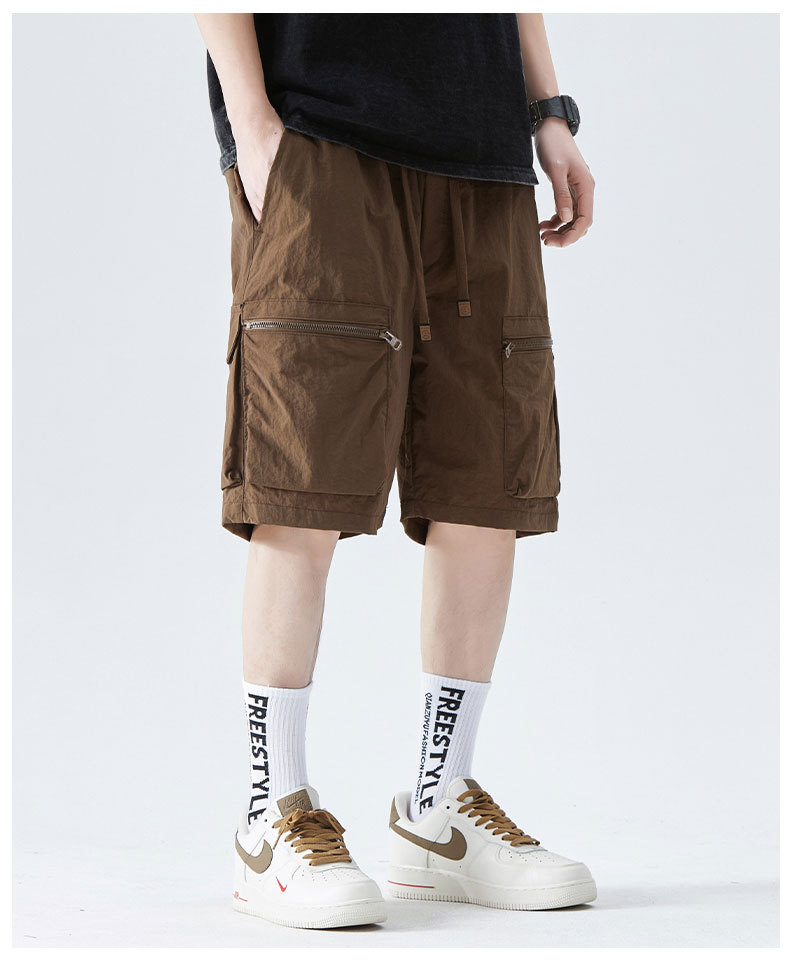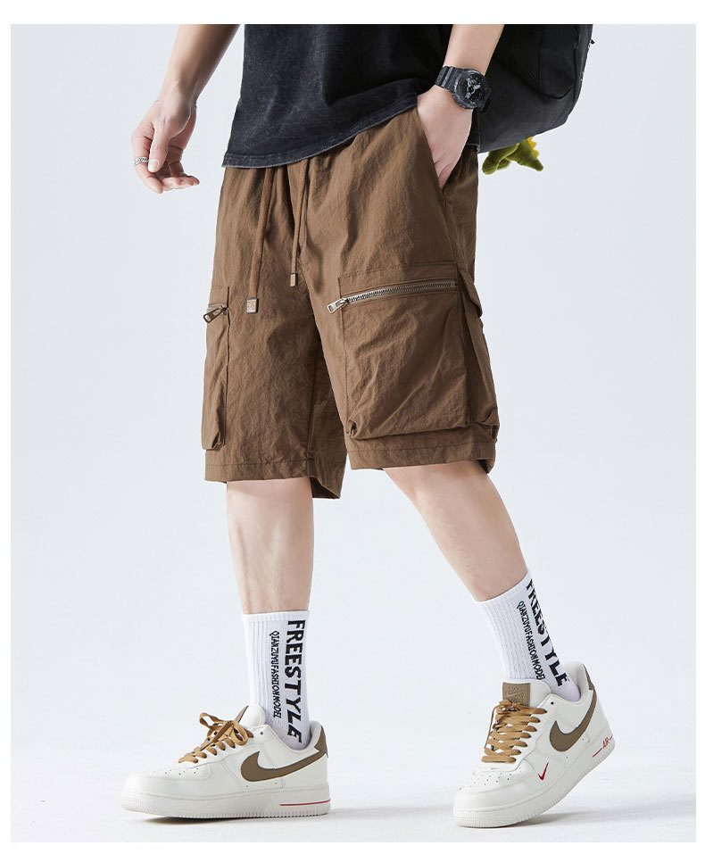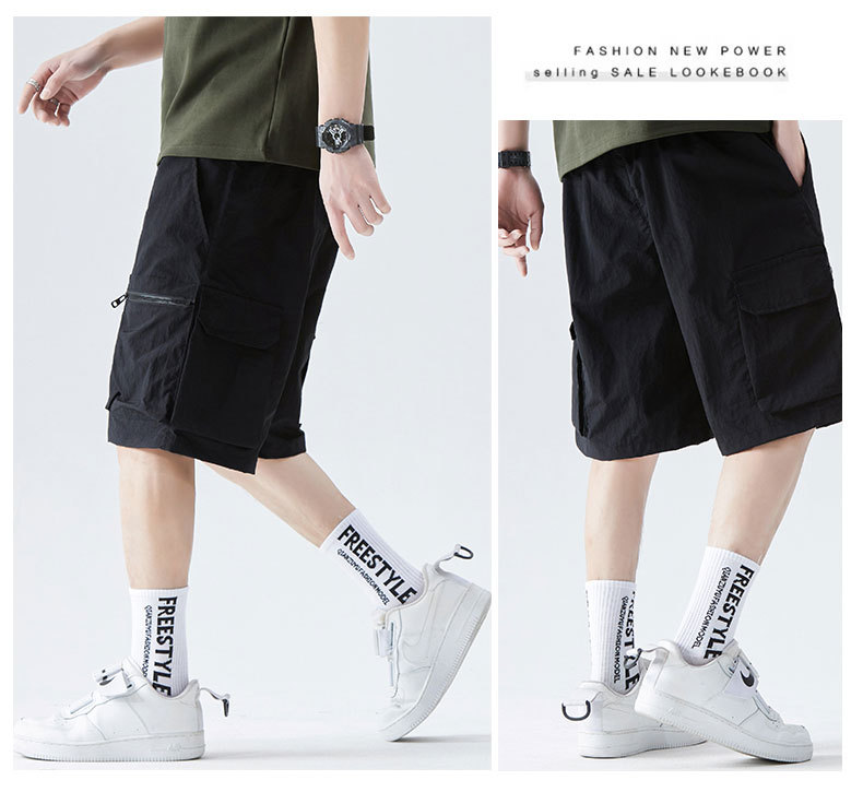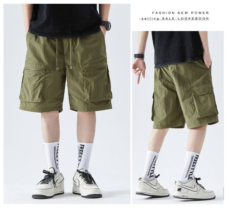 속건성 멀티 포켓 카고 팬츠, 남성용 루즈한 여름 신작 캐주얼 5부 팬츠, 아이스 실크 스포츠 반바지스토어 가기
