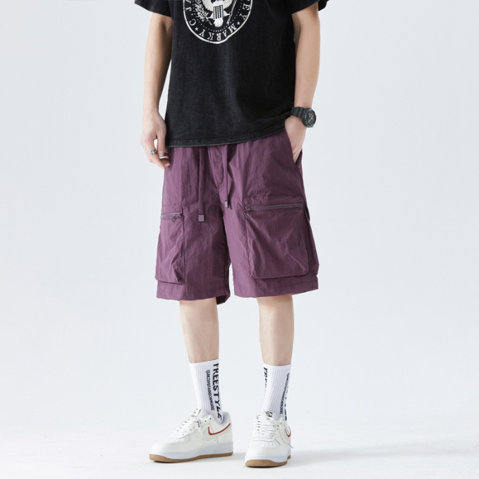 속건성 멀티 포켓 카고 팬츠, 남성용 루즈한 여름 신작 캐주얼 5부 팬츠, 아이스 실크 스포츠 반바지