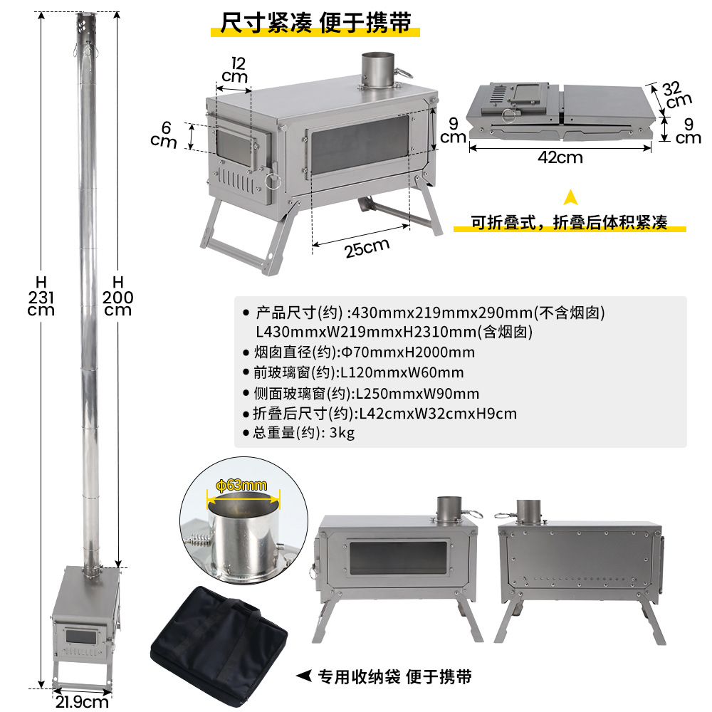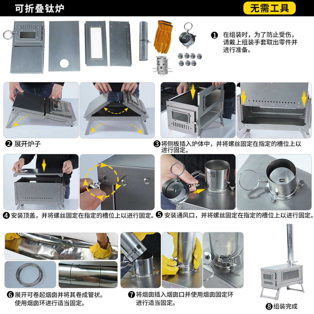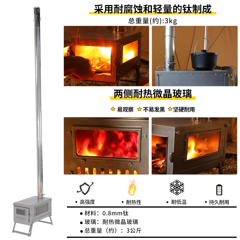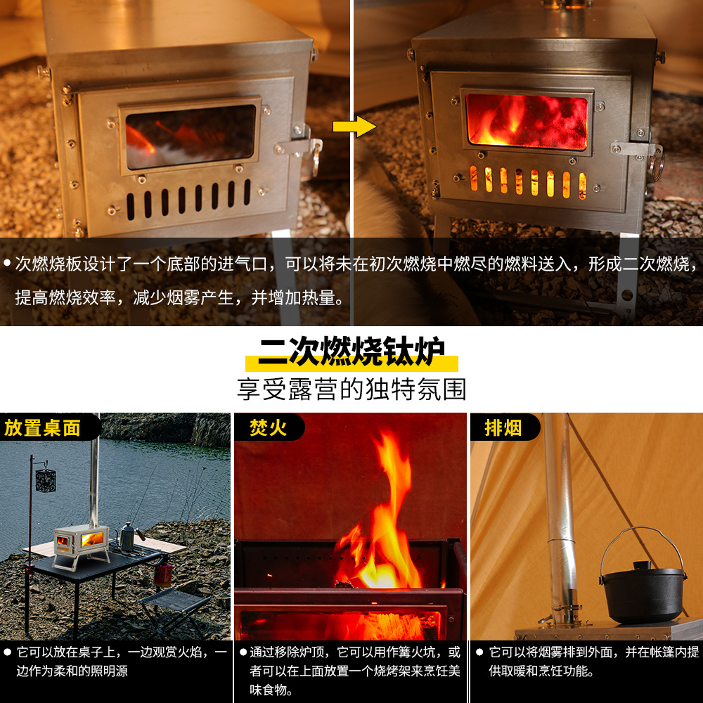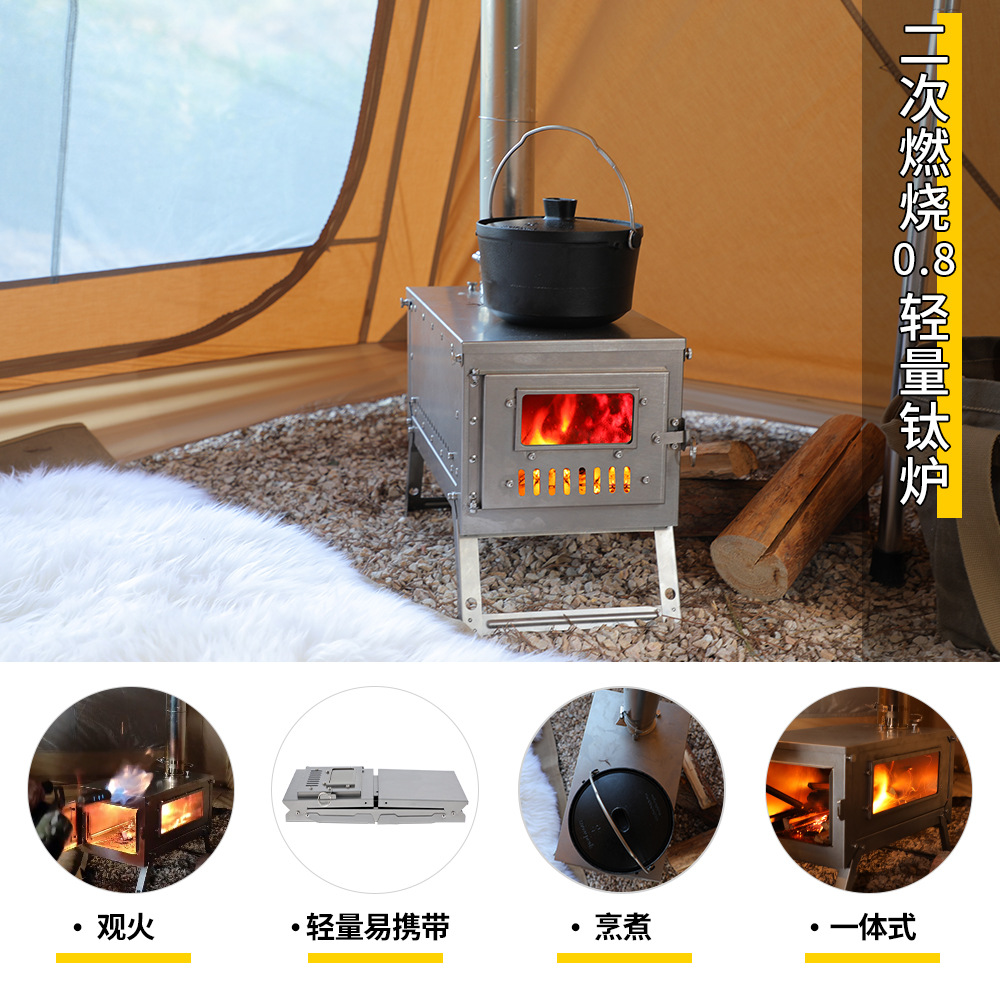 야외 순수 티타늄 텐트 스토브 캠핑 장작 스토브 야외 다기능 난방 요리 물 끓이는 편리한 접이식 티타늄 스토브스토어 가기