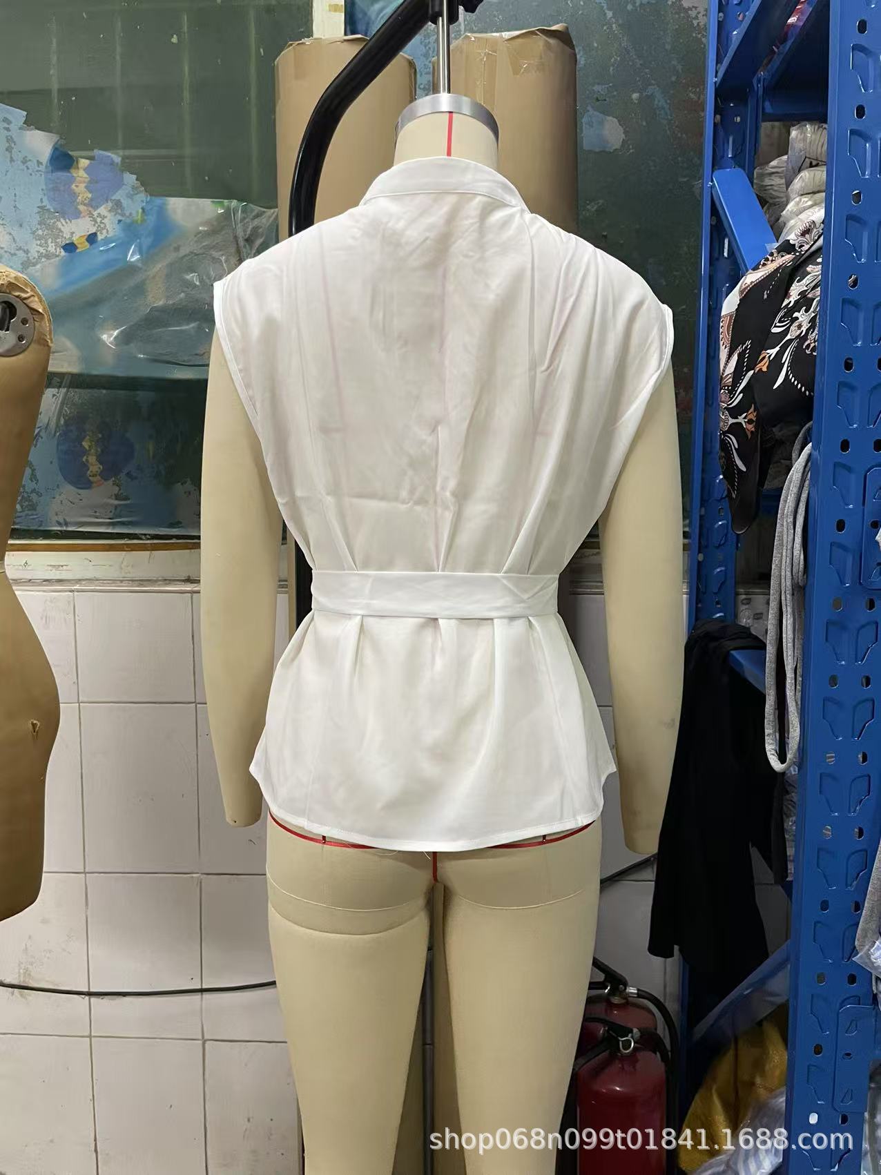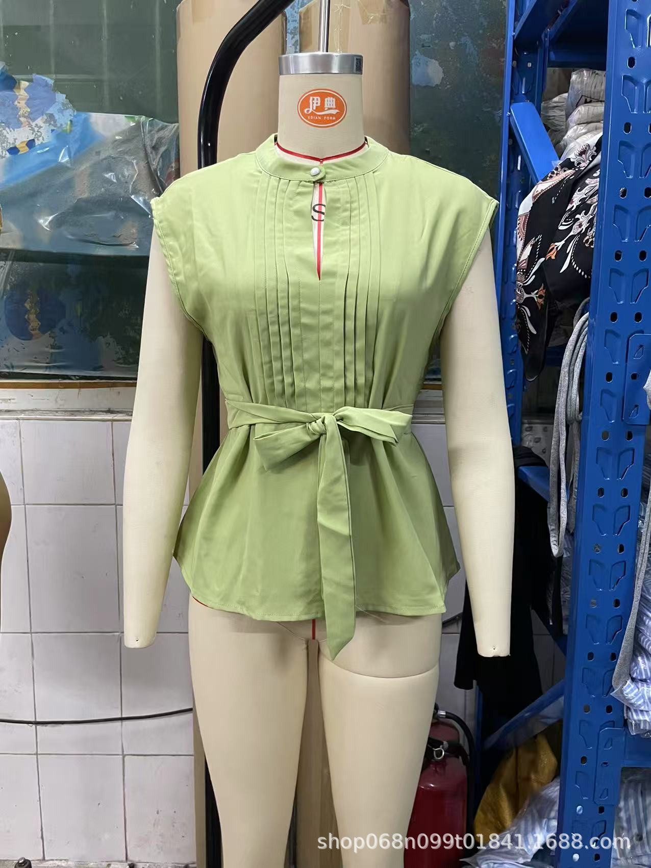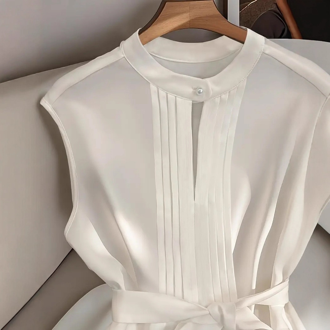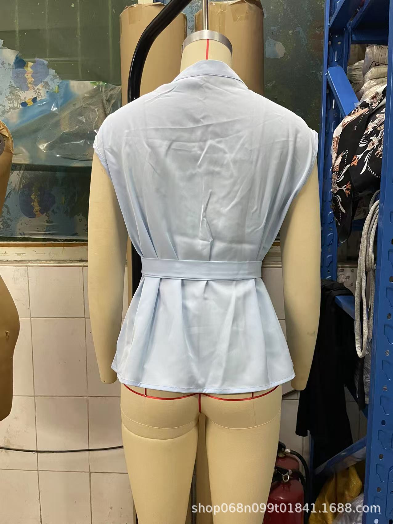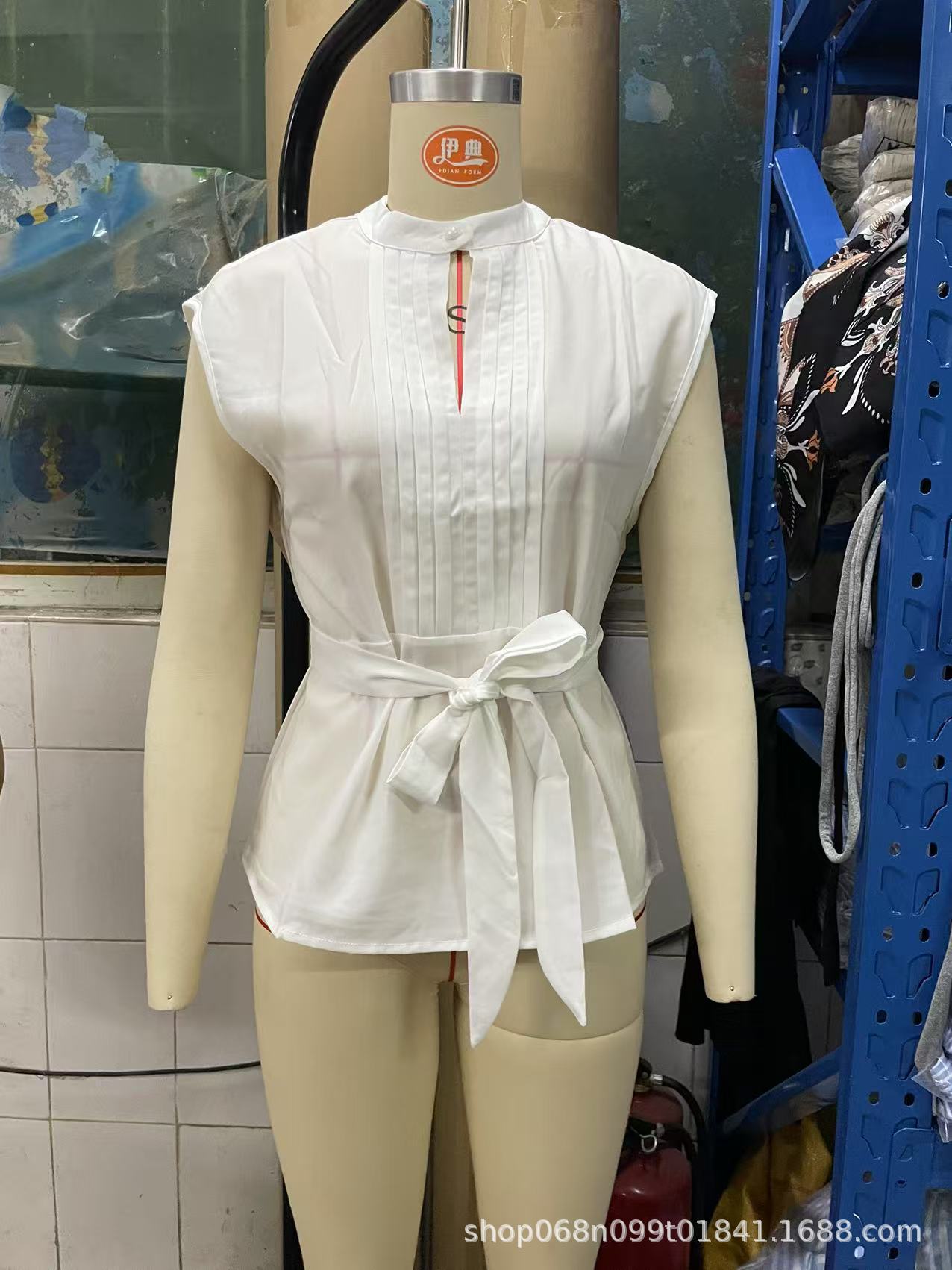 2025년 여름 유럽 및 미국 해외 여성복 독립 사이트 클래식하고 우아한 솔리드 컬러 민소매 벨트 주름 셔츠스토어 가기