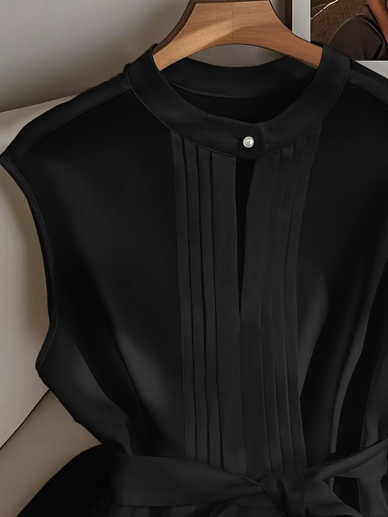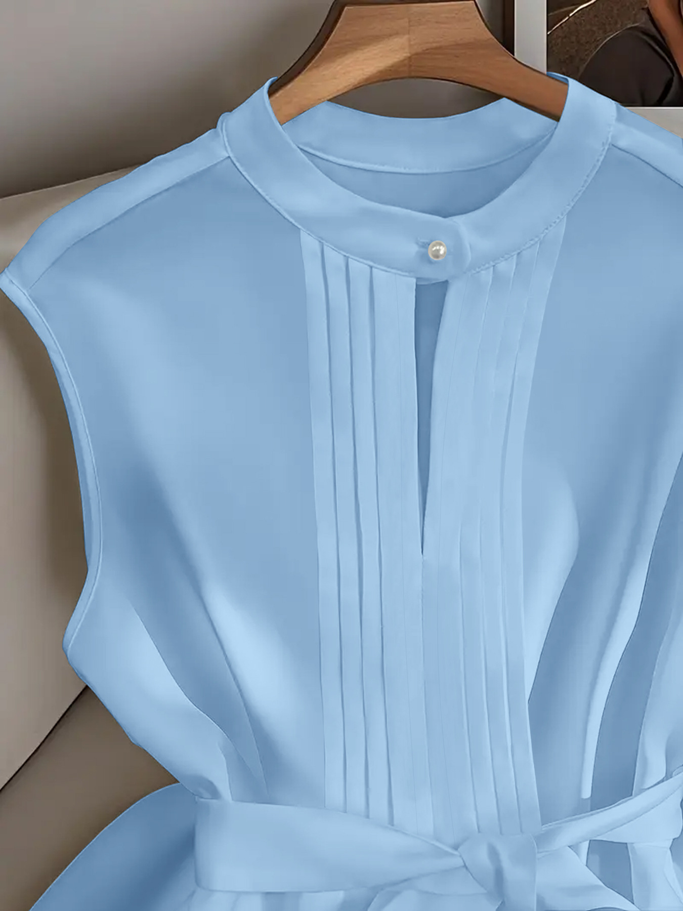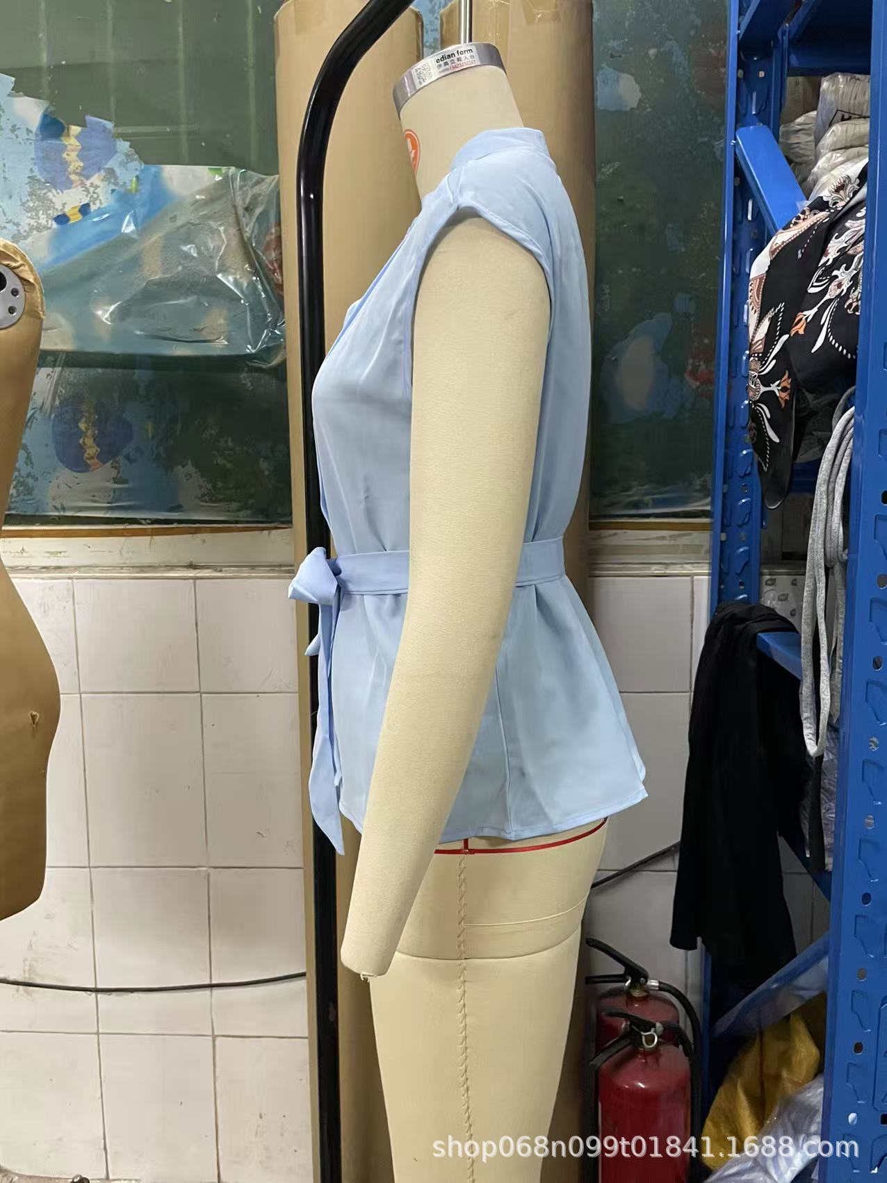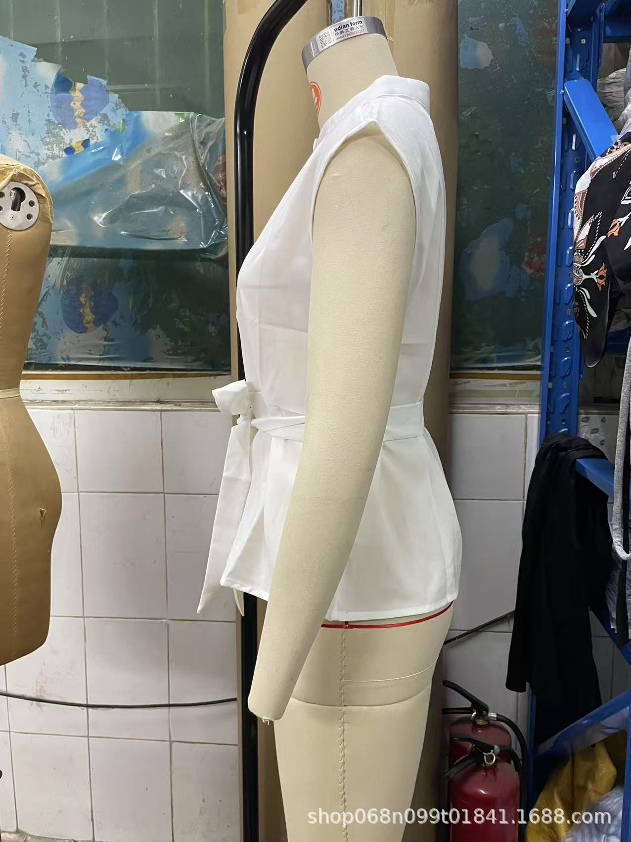 2025년 여름 유럽 및 미국 해외 여성복 독립 사이트 클래식하고 우아한 솔리드 컬러 민소매 벨트 주름 셔츠스토어 가기