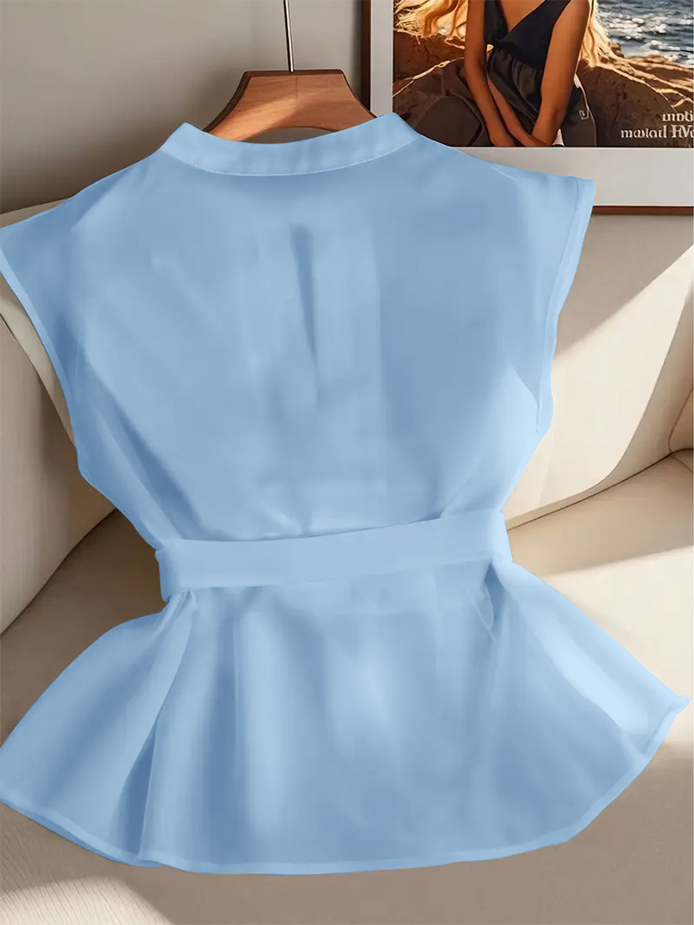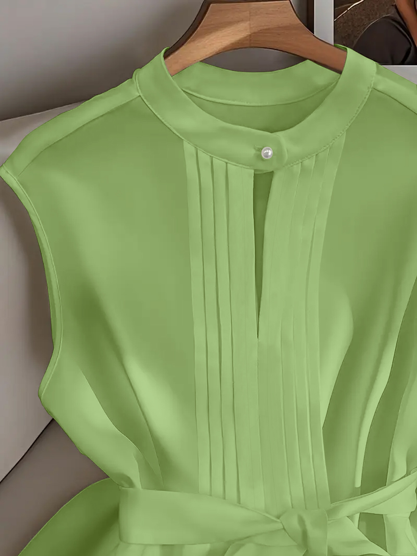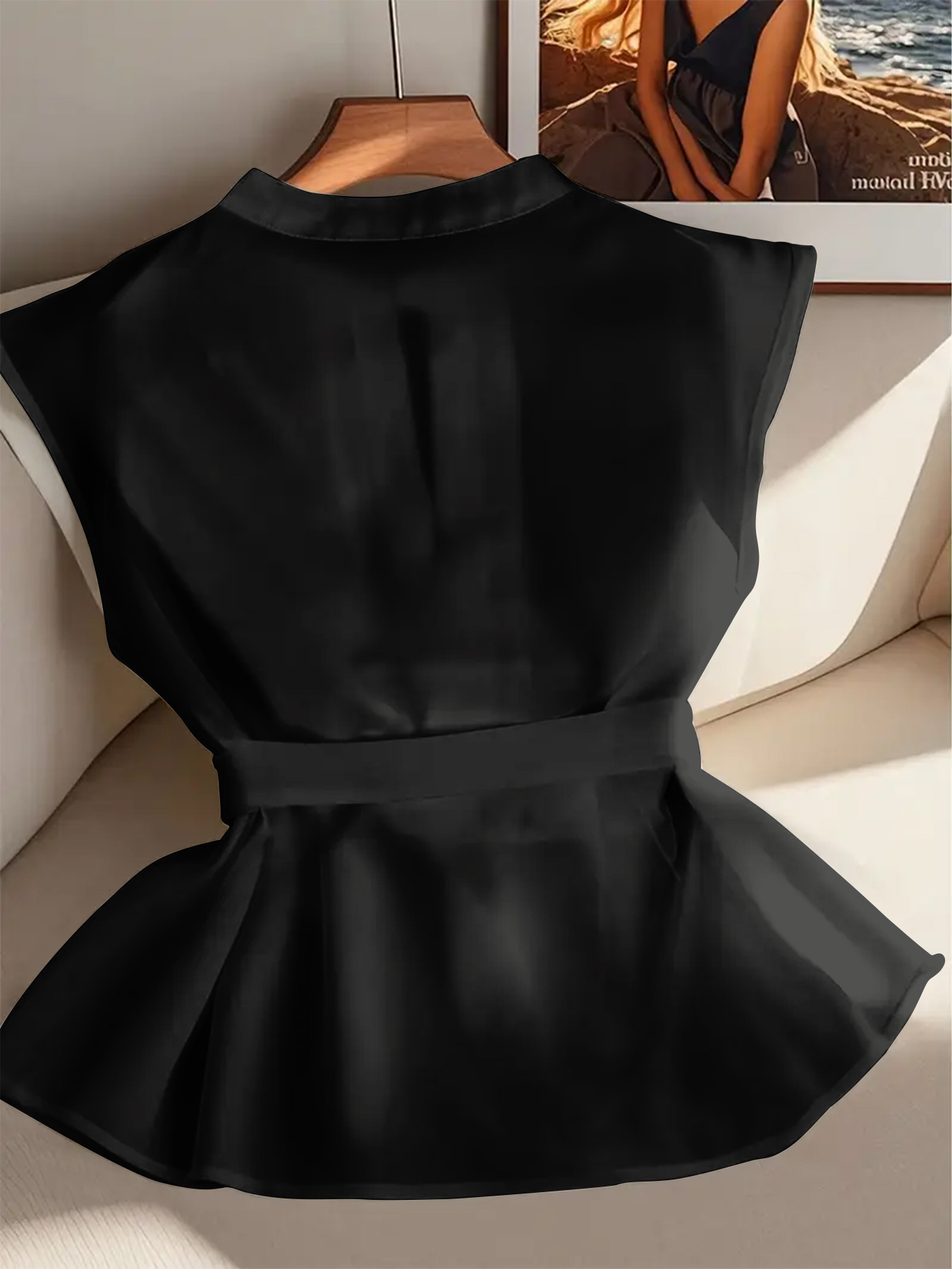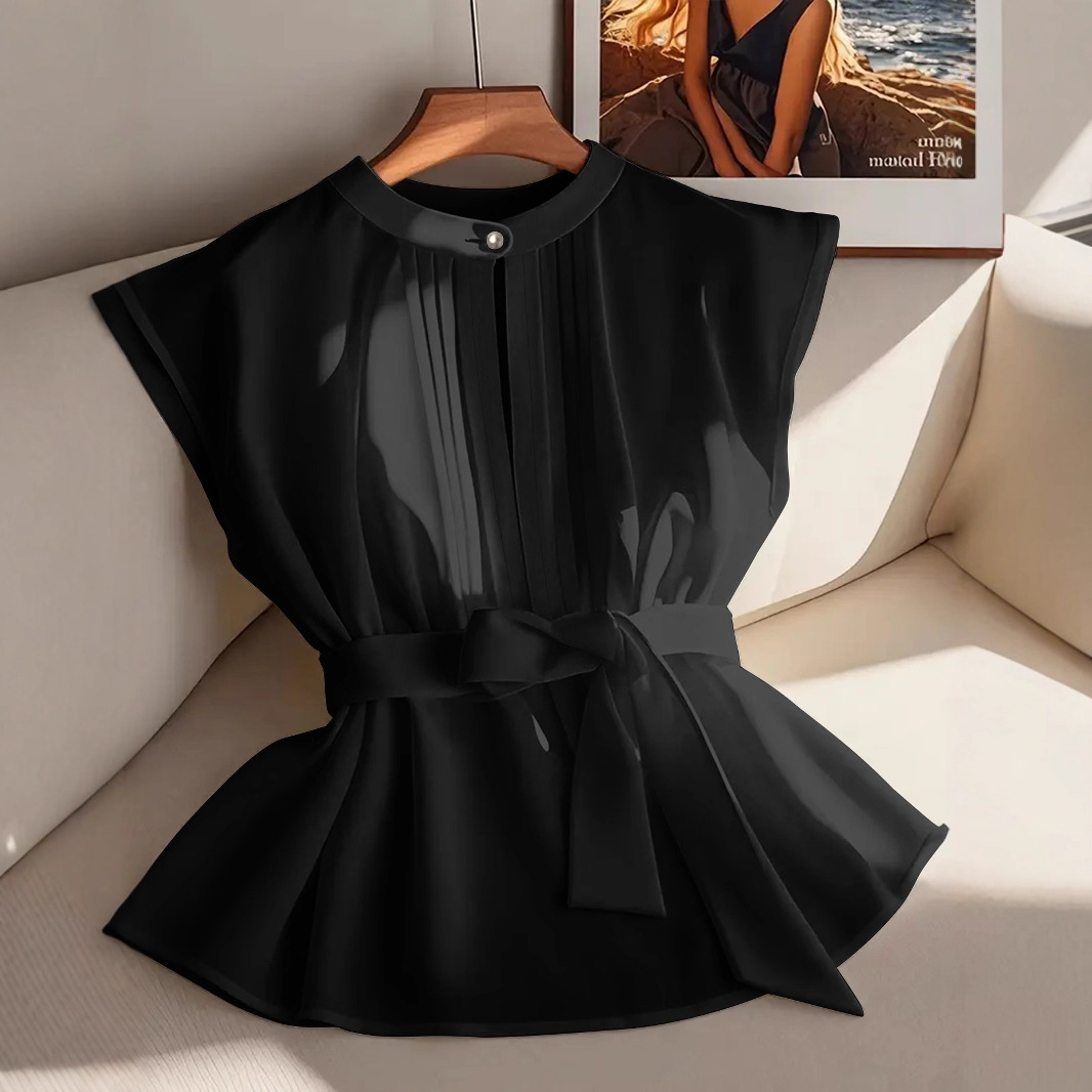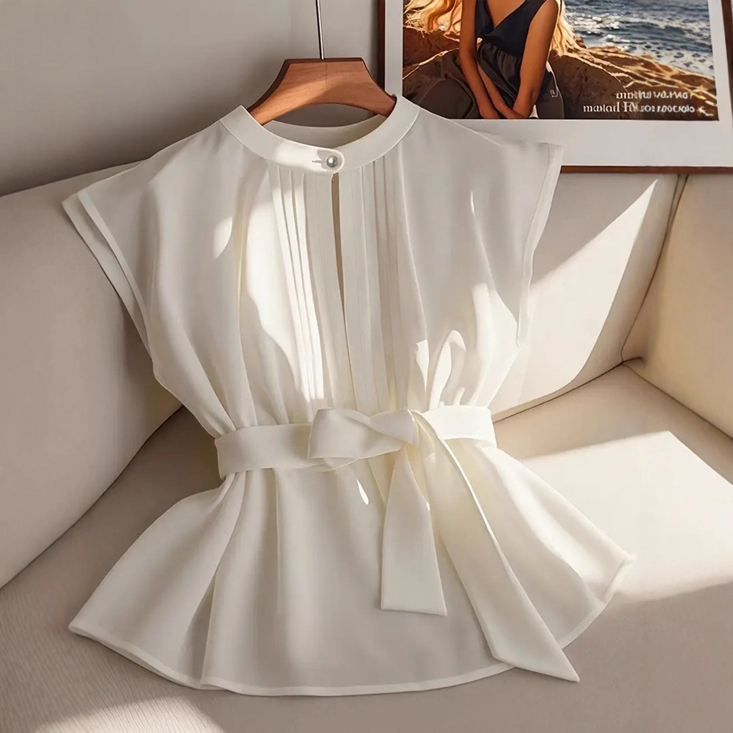 2025년 여름 유럽 및 미국 해외 여성복 독립 사이트 클래식하고 우아한 솔리드 컬러 민소매 벨트 주름 셔츠스토어 가기