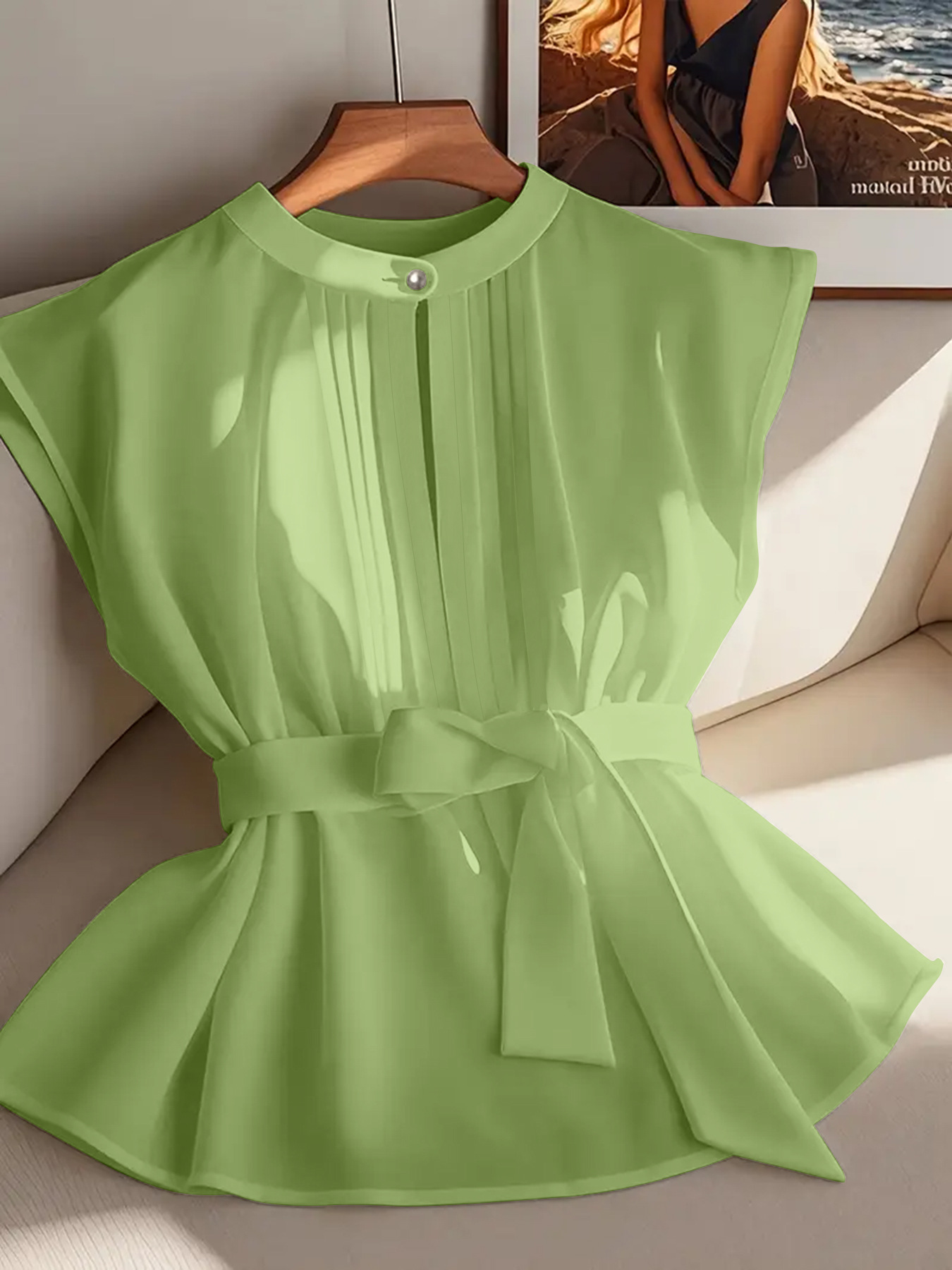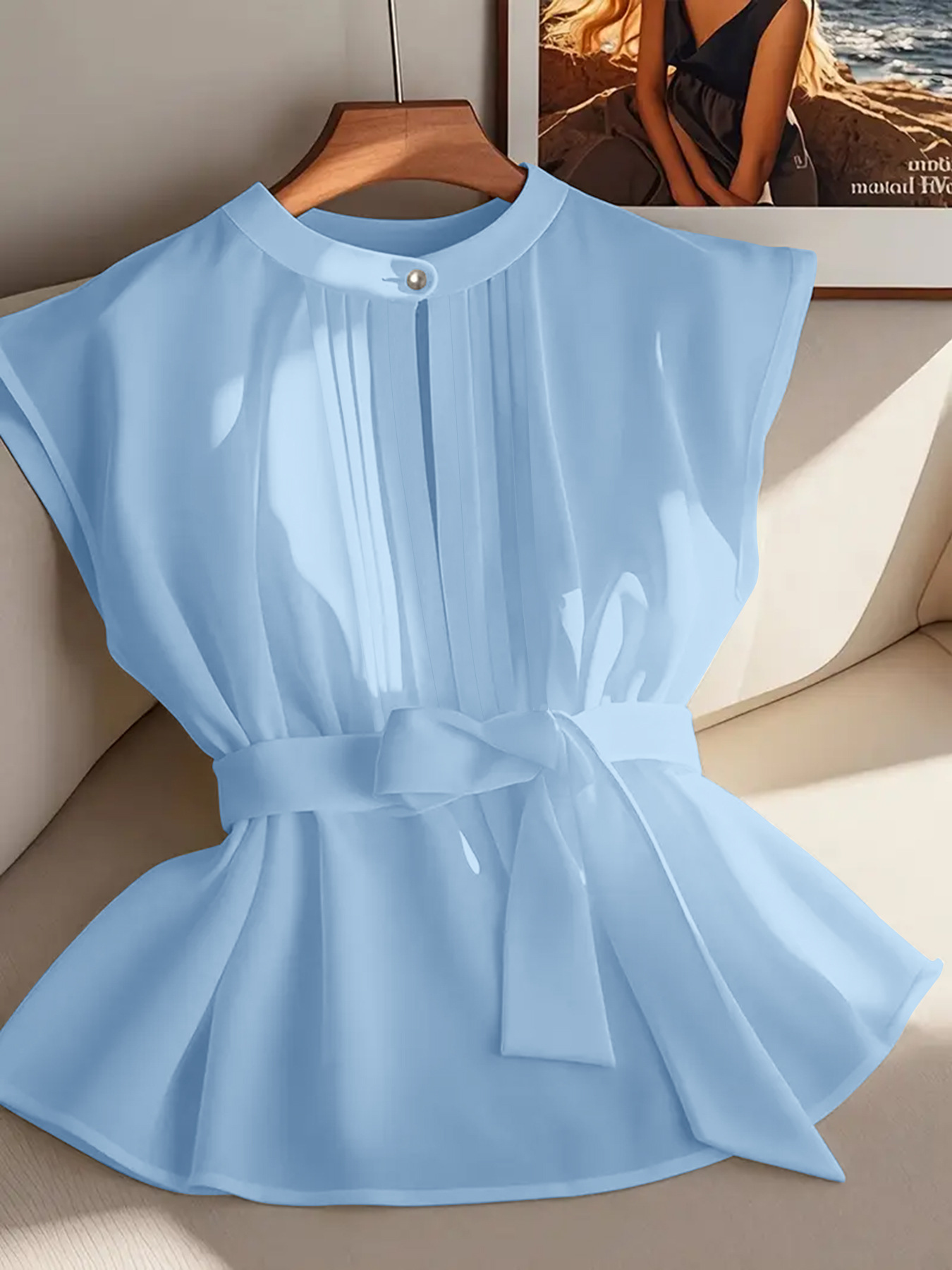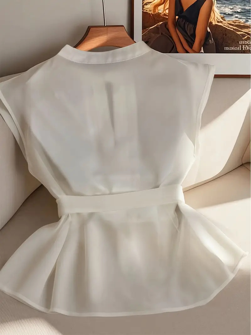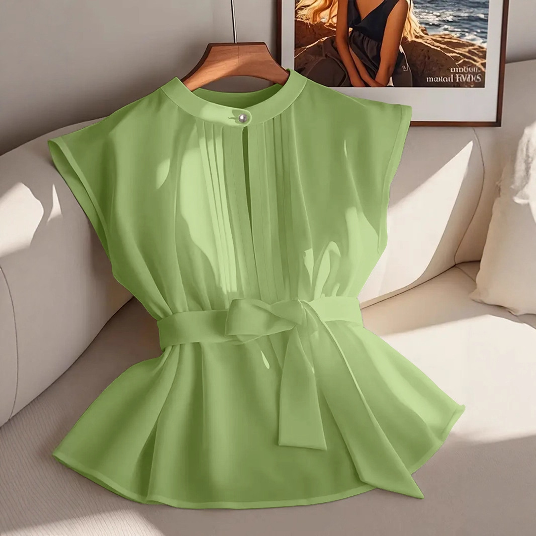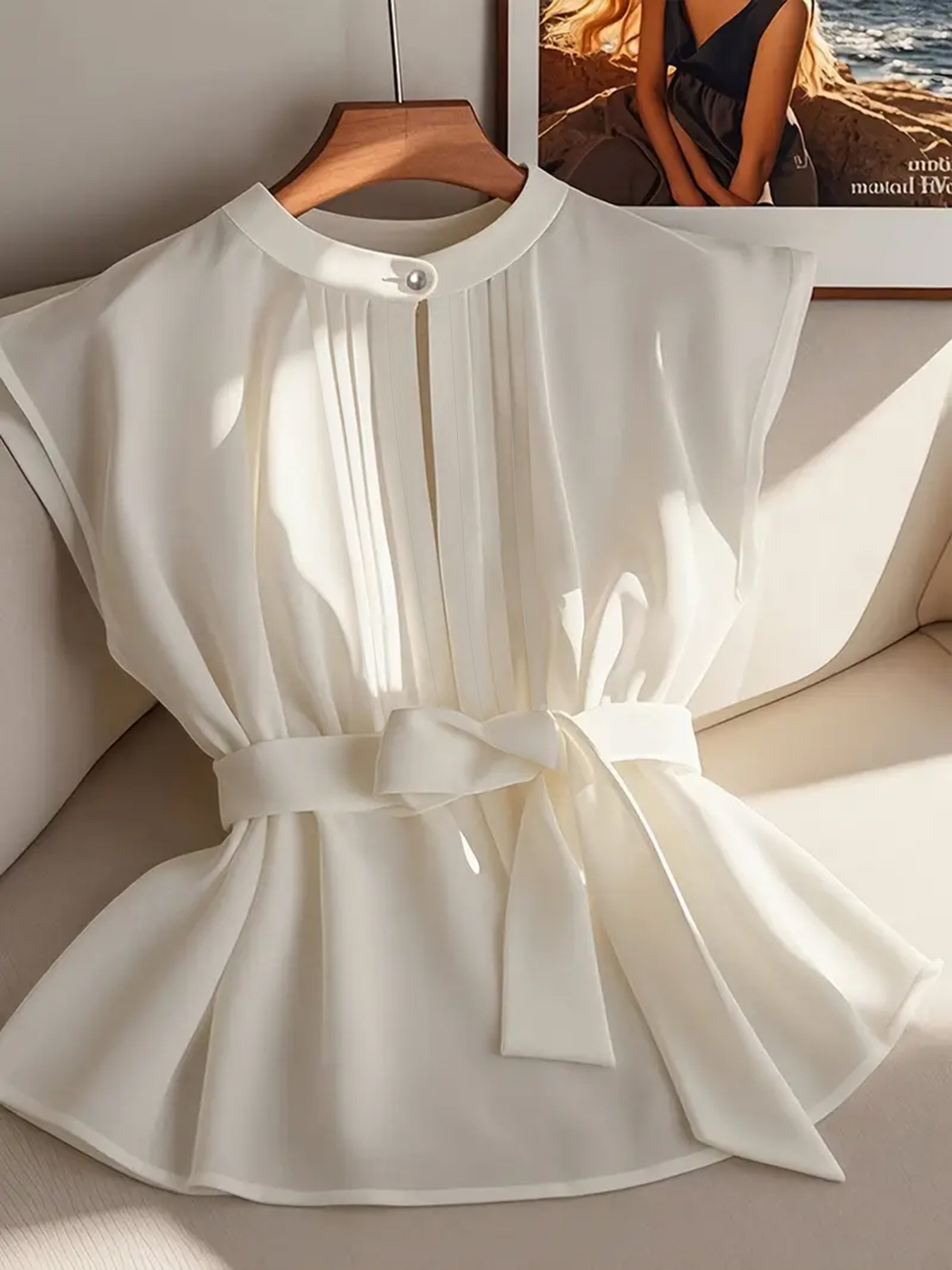 2025년 여름 유럽 및 미국 해외 여성복 독립 사이트 클래식하고 우아한 솔리드 컬러 민소매 벨트 주름 셔츠스토어 가기