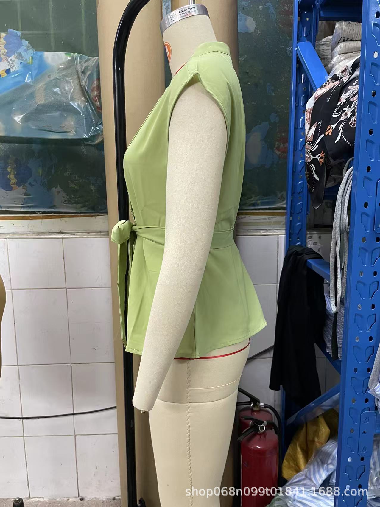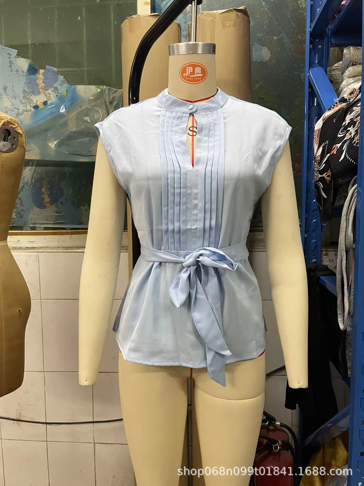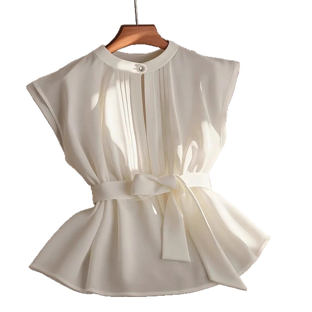 2025년 여름 유럽 및 미국 해외 여성복 독립 사이트 클래식하고 우아한 솔리드 컬러 민소매 벨트 주름 셔츠