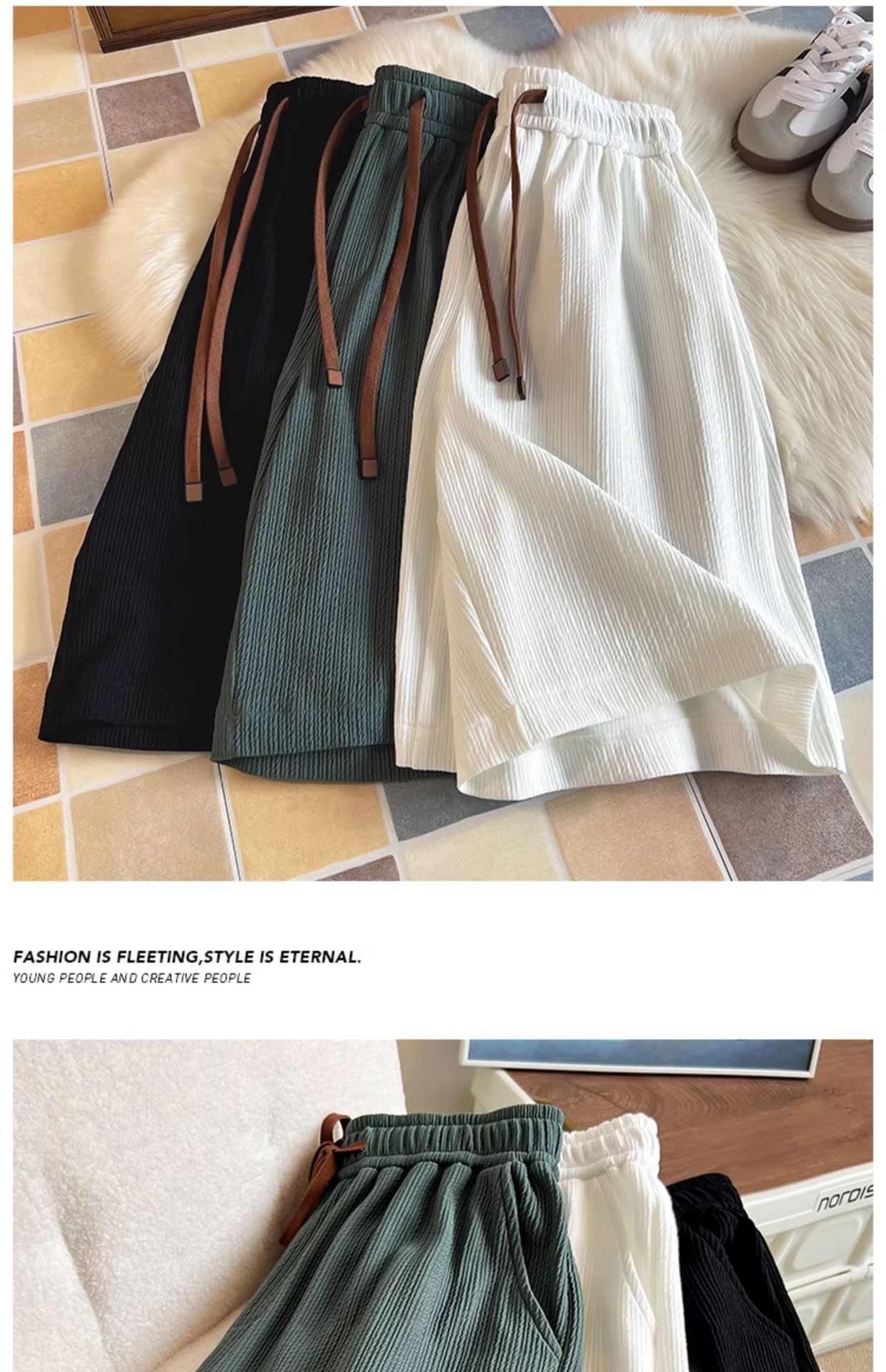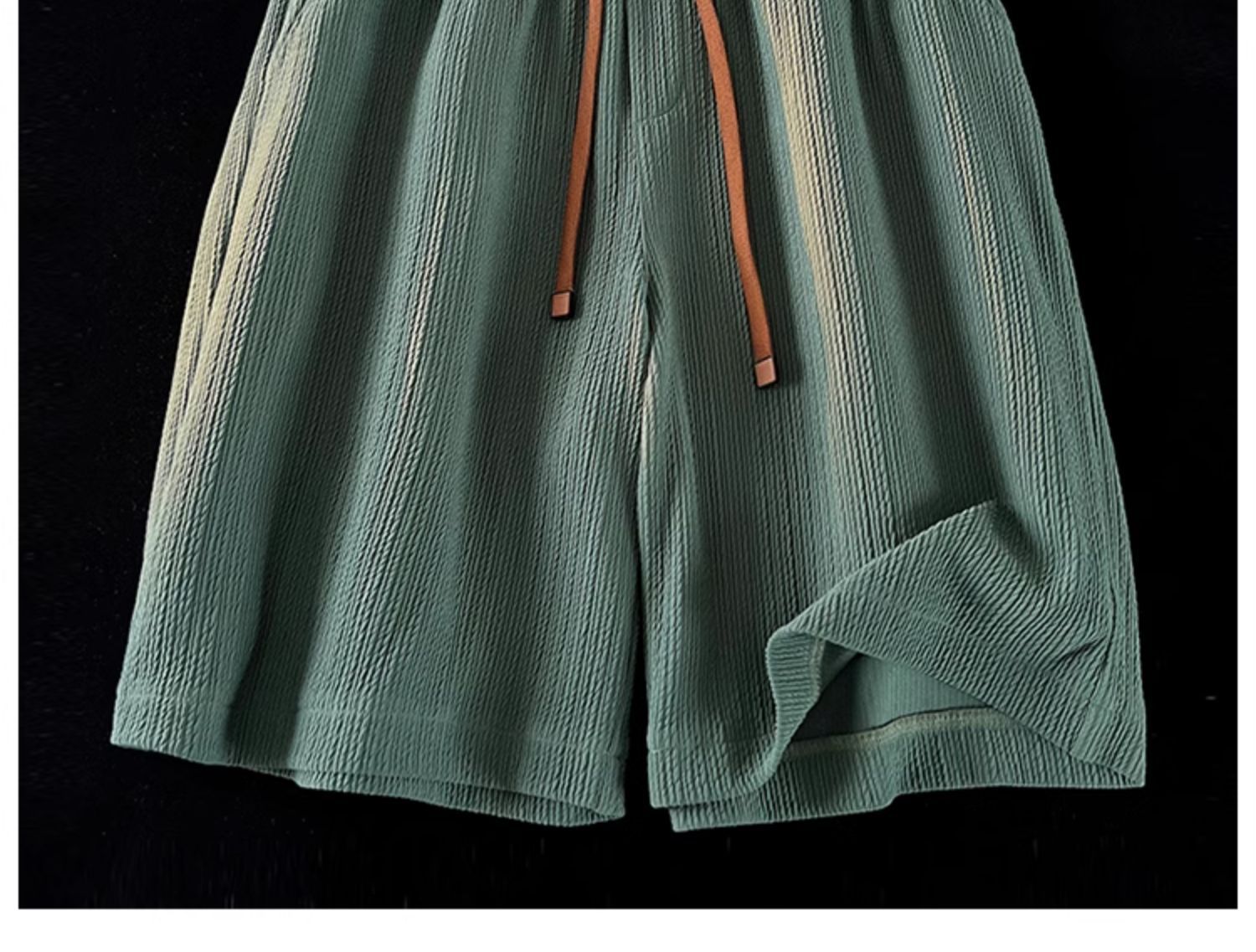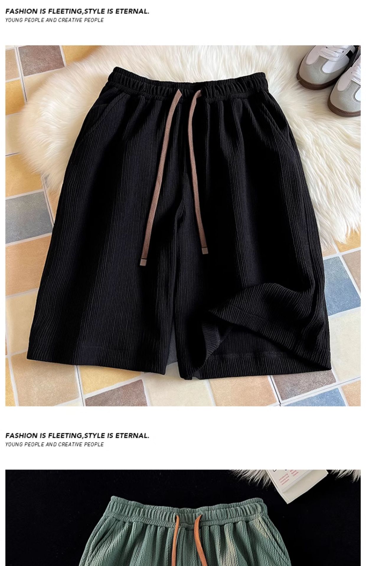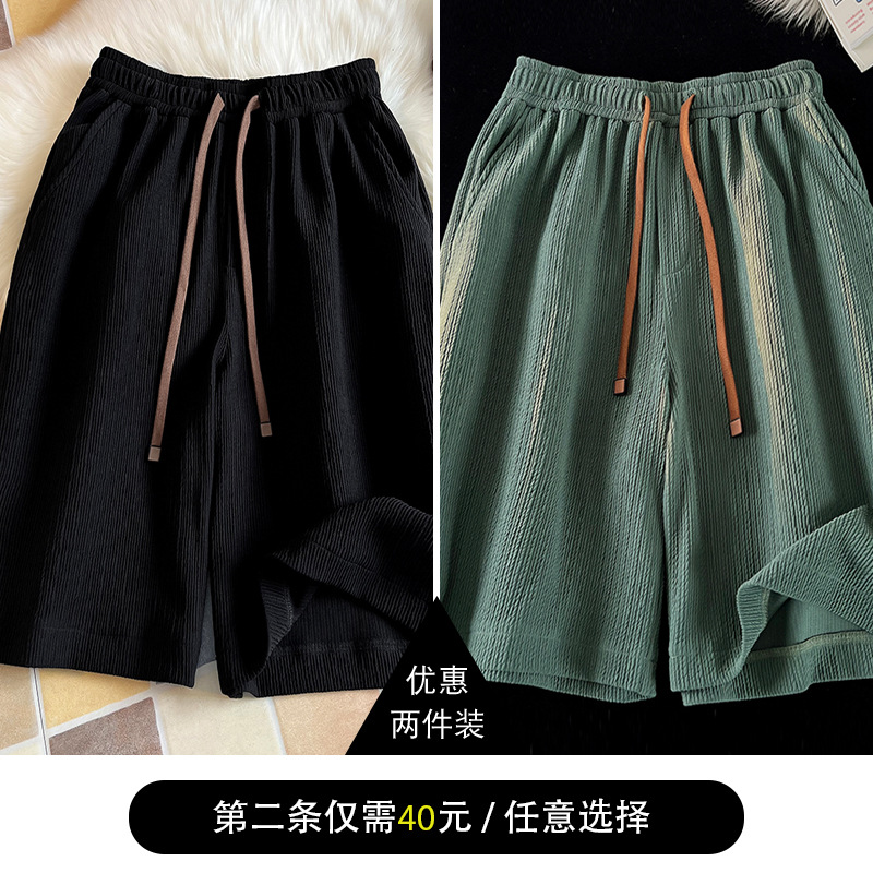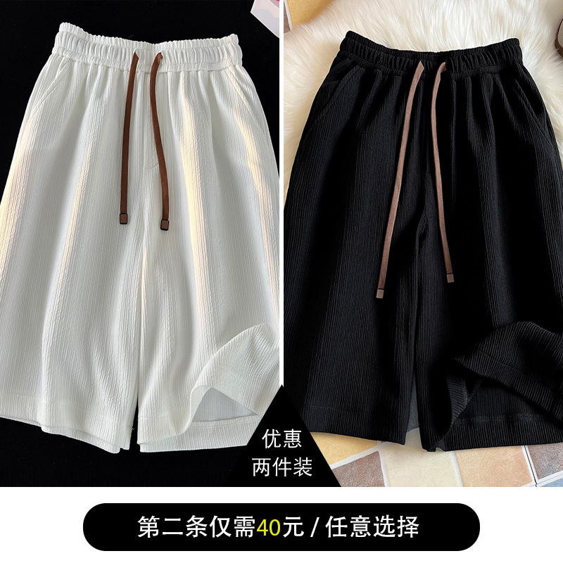 플러스 사이즈 주름 아이스 실크 반바지 남자 여름 얇은 빠른 건조 비치 바지 느슨한 바지 스포츠 캐주얼 5 점 바지