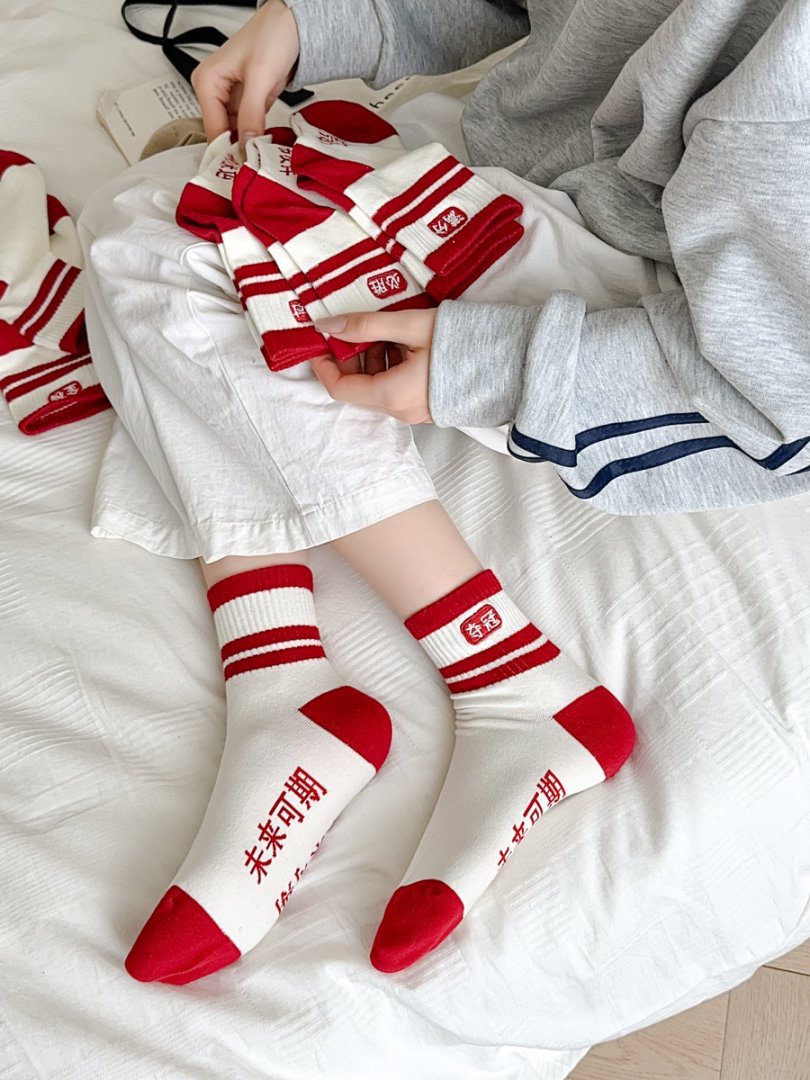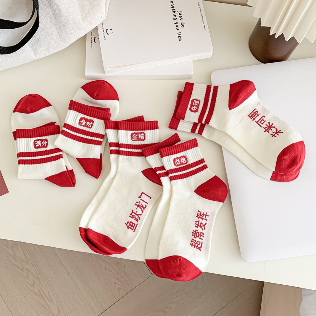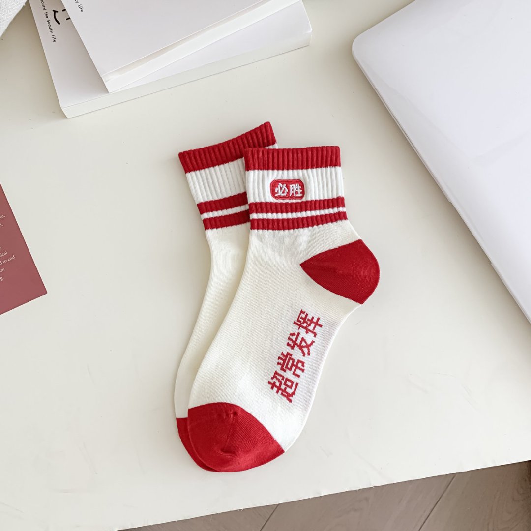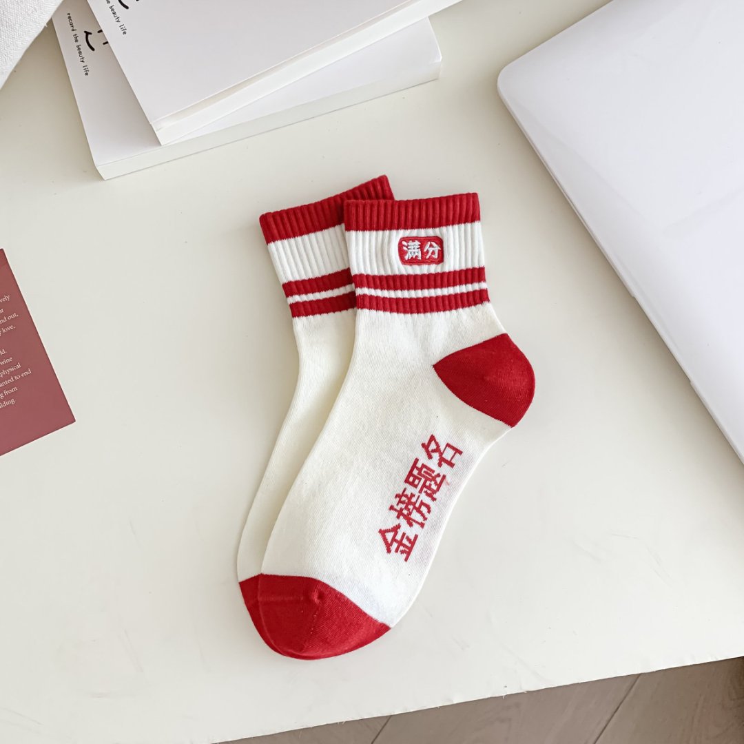 25 고등학교 입시 양말 금상단 부문 소프트 통기성 양말 남녀 공용 고등학교 입시 및 대학 입시 필수 레드 히트스토어 가기