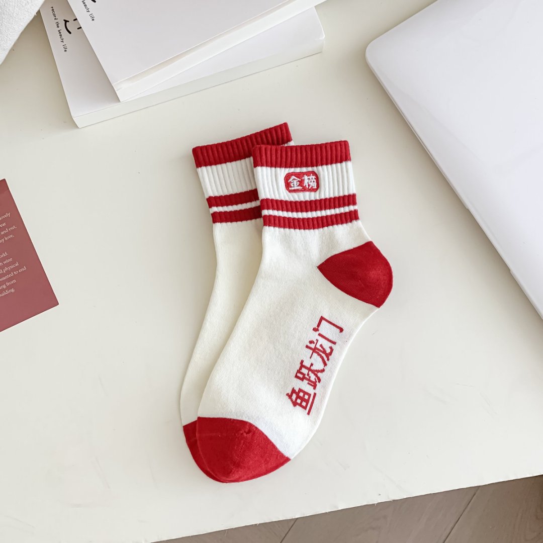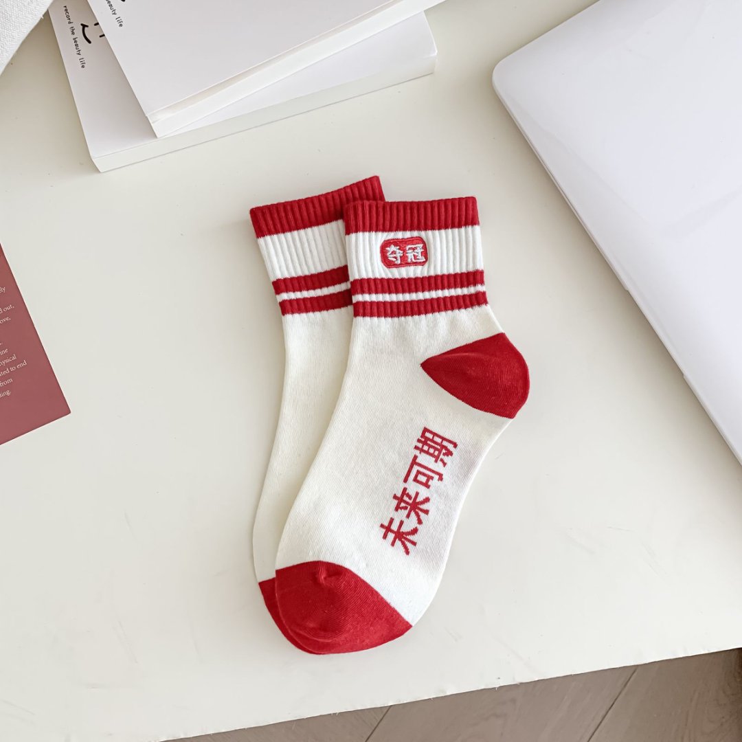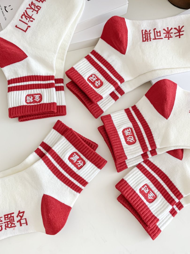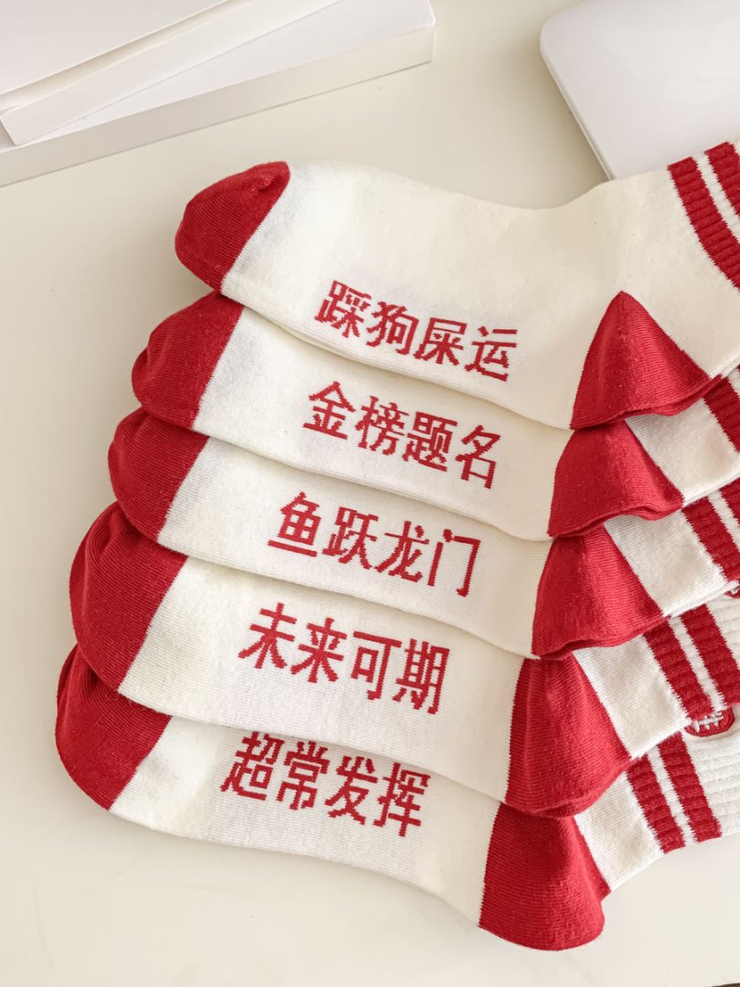 25 고등학교 입시 양말 금상단 부문 소프트 통기성 양말 남녀 공용 고등학교 입시 및 대학 입시 필수 레드 히트스토어 가기