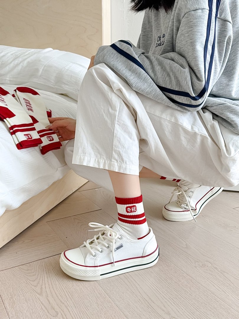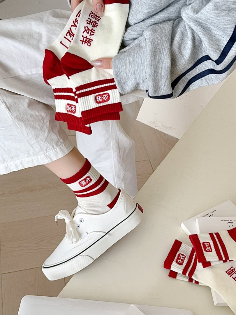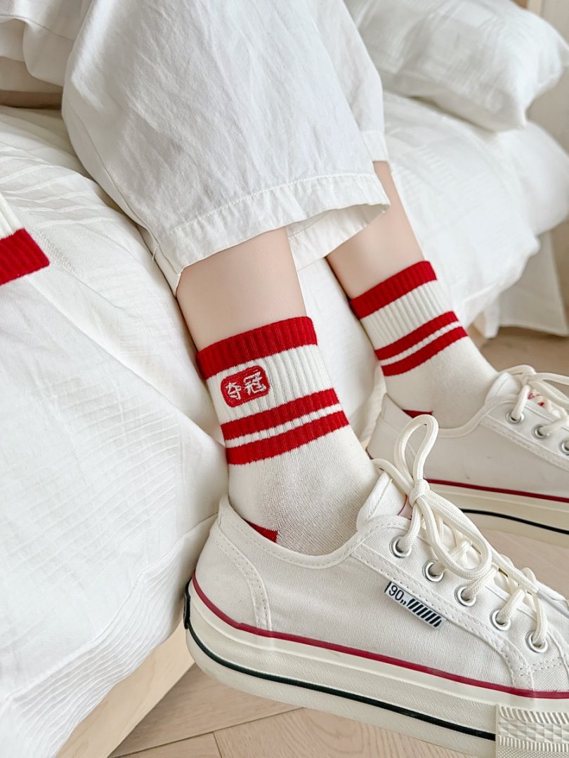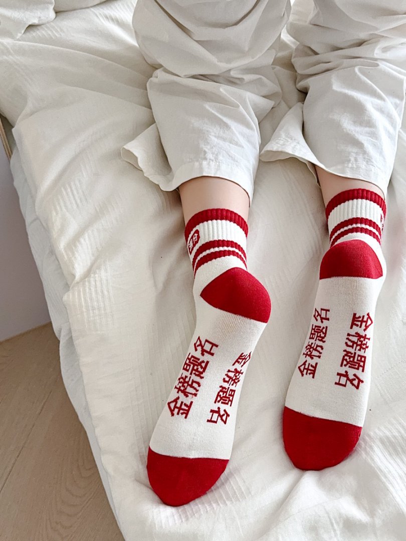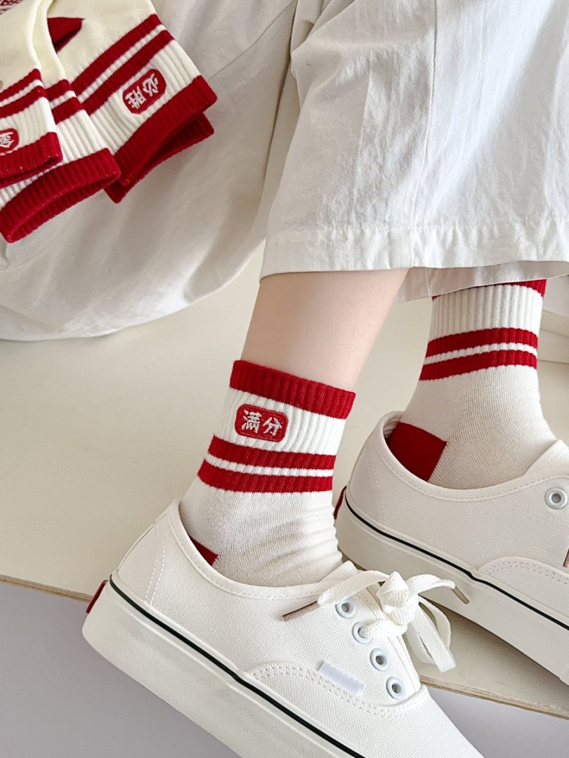 25 고등학교 입시 양말 금상단 부문 소프트 통기성 양말 남녀 공용 고등학교 입시 및 대학 입시 필수 레드 히트스토어 가기