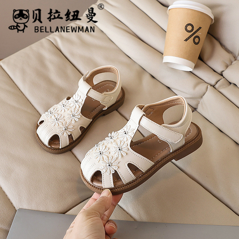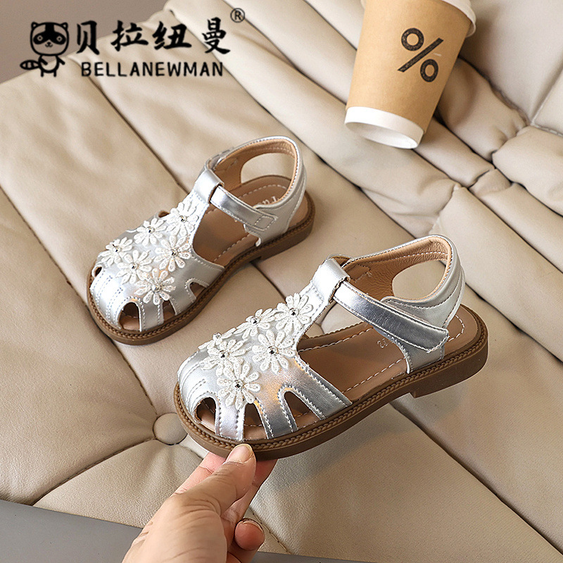 SHEIN 틈새 디자인 소녀의 작은 꽃 샌들 2025 여름 새로운 어린이 소프트 솔 비치 신발스토어 가기