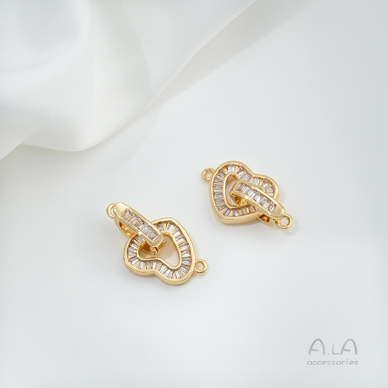 인레이드 T 사각 지르콘 14K 금으로 채워진 색상 보존 사랑 모양의 진주 버클 수제 DIY 팔찌 목걸이 쥬얼리 연결 버클