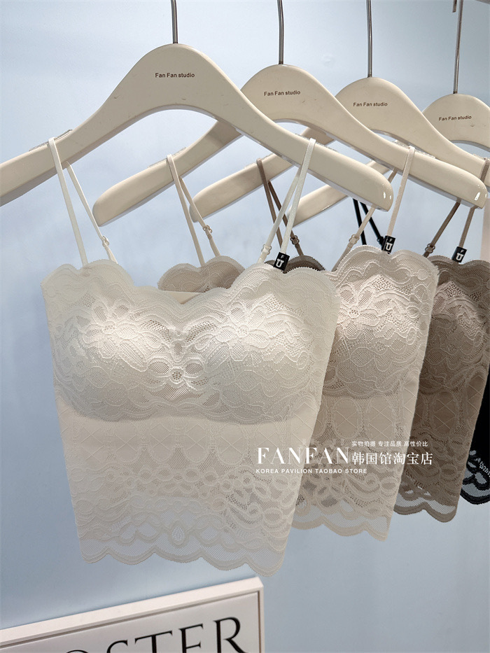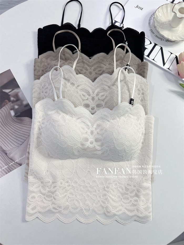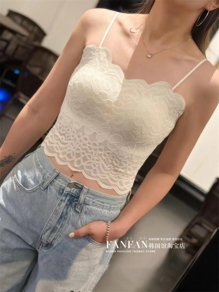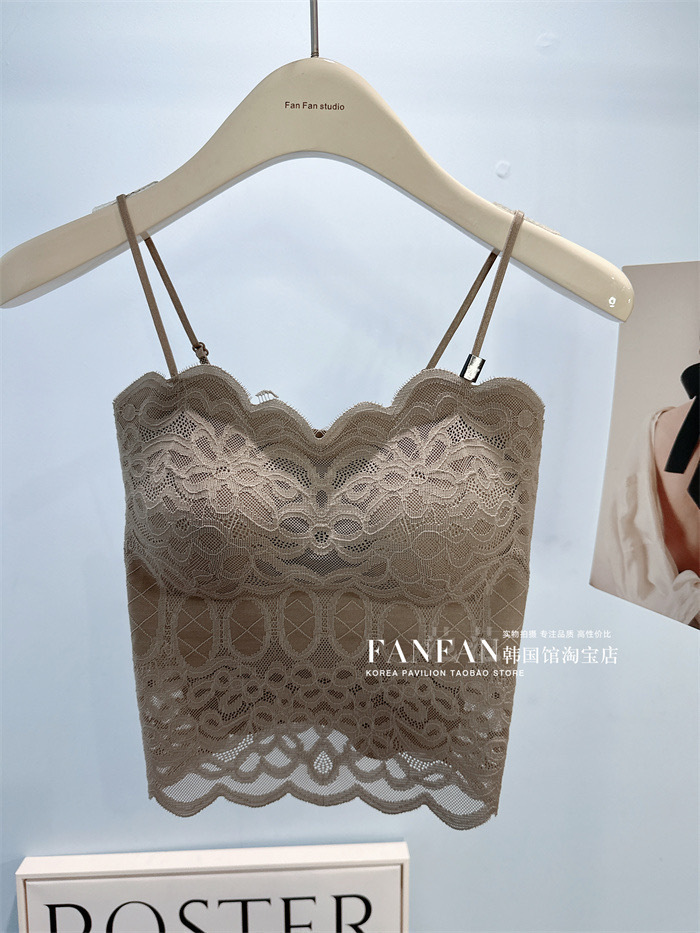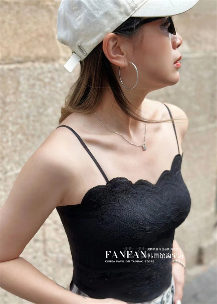 2024 프렌치 레이스 퓨어 러스티 캐미솔, 웨이브 엣지, 노출 방지, 가슴 패드, 이너웨어, 아우터웨어, 아름다운 등, 가슴 감싸기 여성스토어 가기