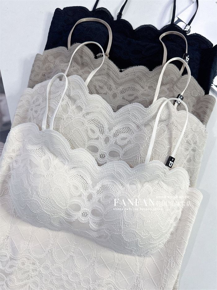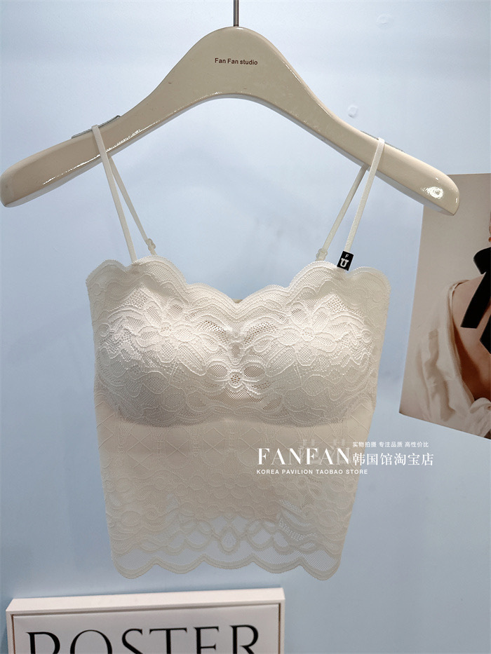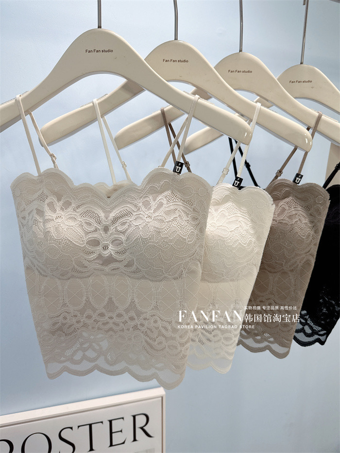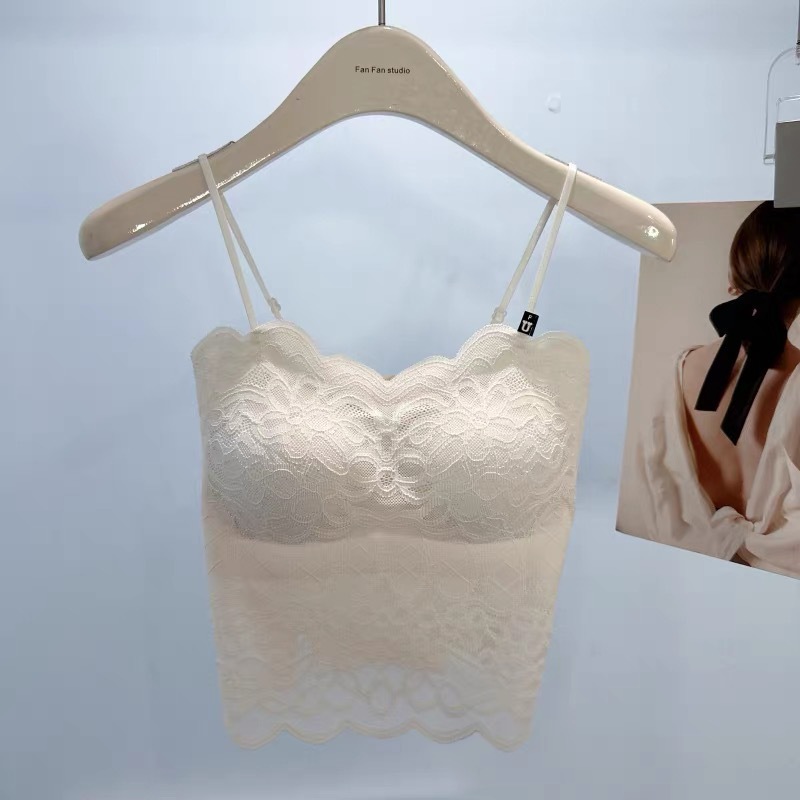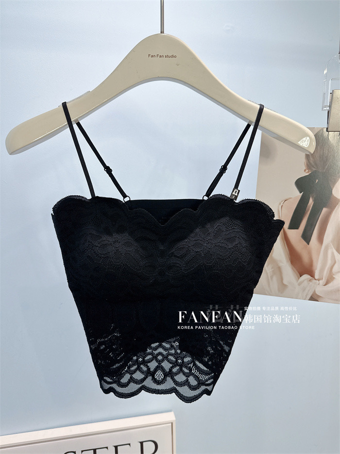 2024 프렌치 레이스 퓨어 러스티 캐미솔, 웨이브 엣지, 노출 방지, 가슴 패드, 이너웨어, 아우터웨어, 아름다운 등, 가슴 감싸기 여성스토어 가기