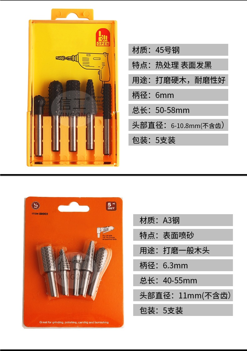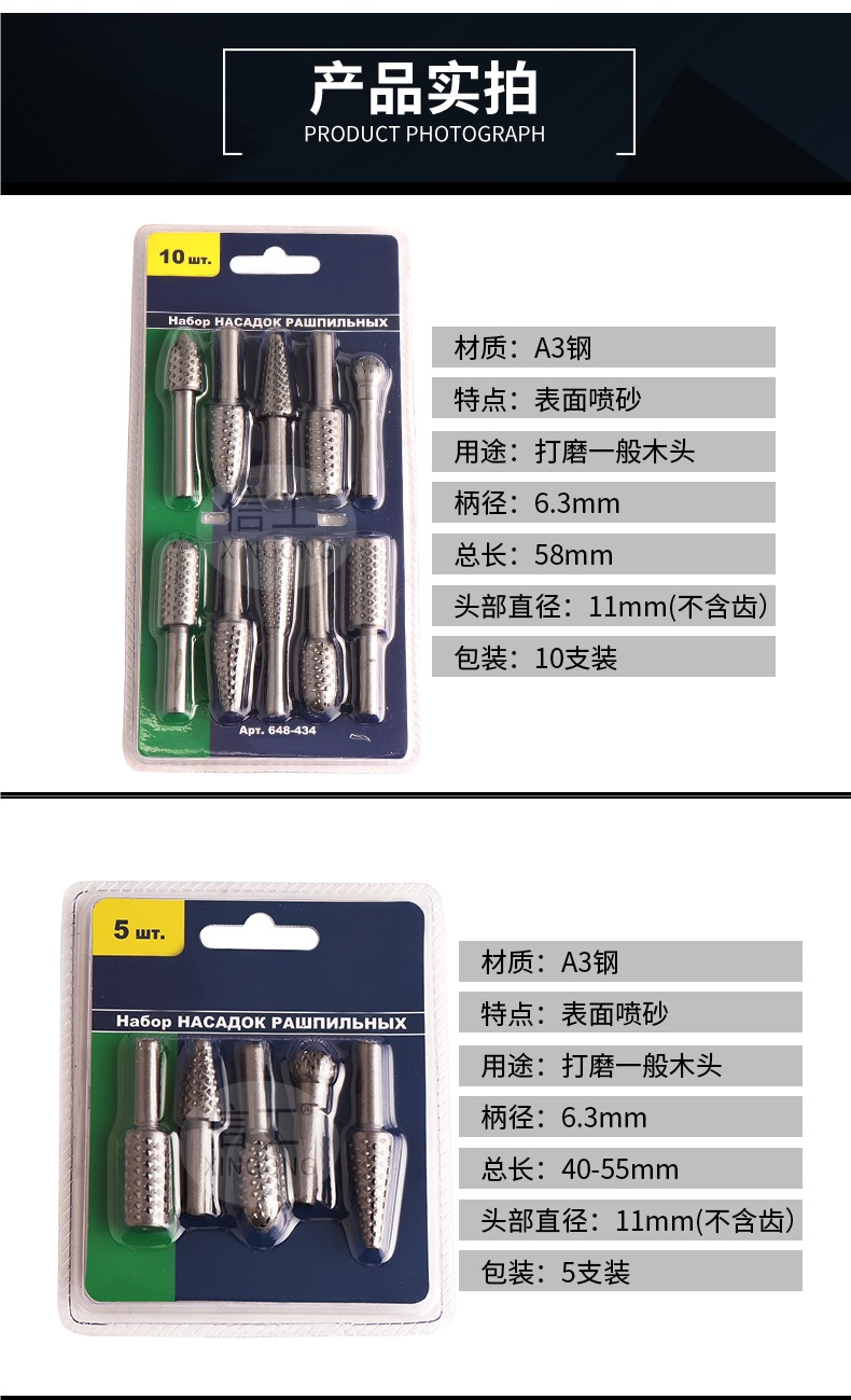 • 6mm 핸들 고속 강철 로터리 파일 세트