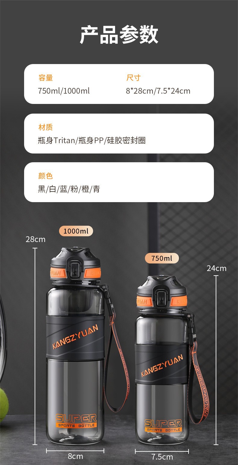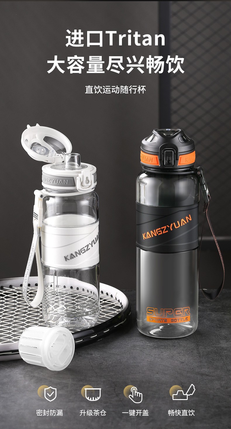 강지 위안 스포츠 워터 컵 남자와 여자의 대용량 피트니스 물병 가을 저항하는 여름 휴대용 물병 야외 컵 학생