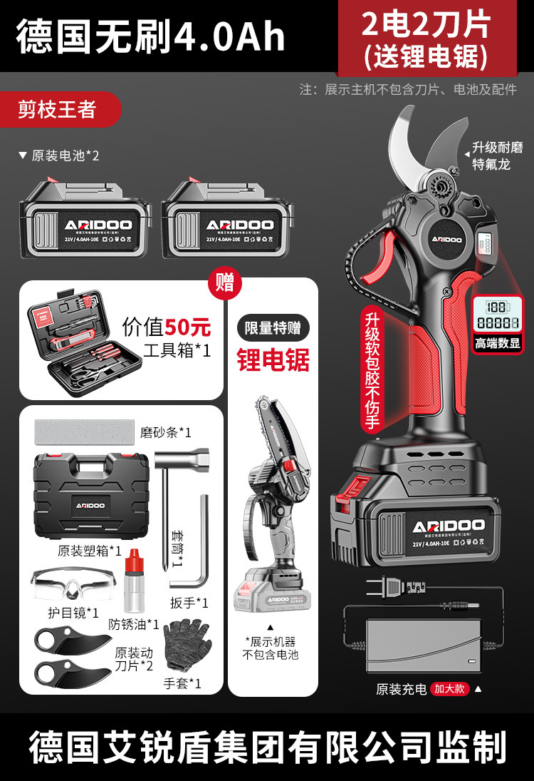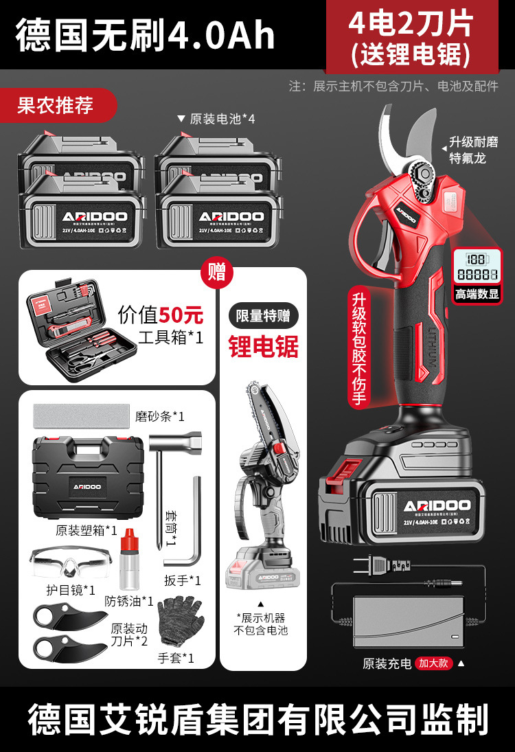 • 독일 브러시리스 4.0Ah 가지치기 킹 배터리 2개 블레이드 2개