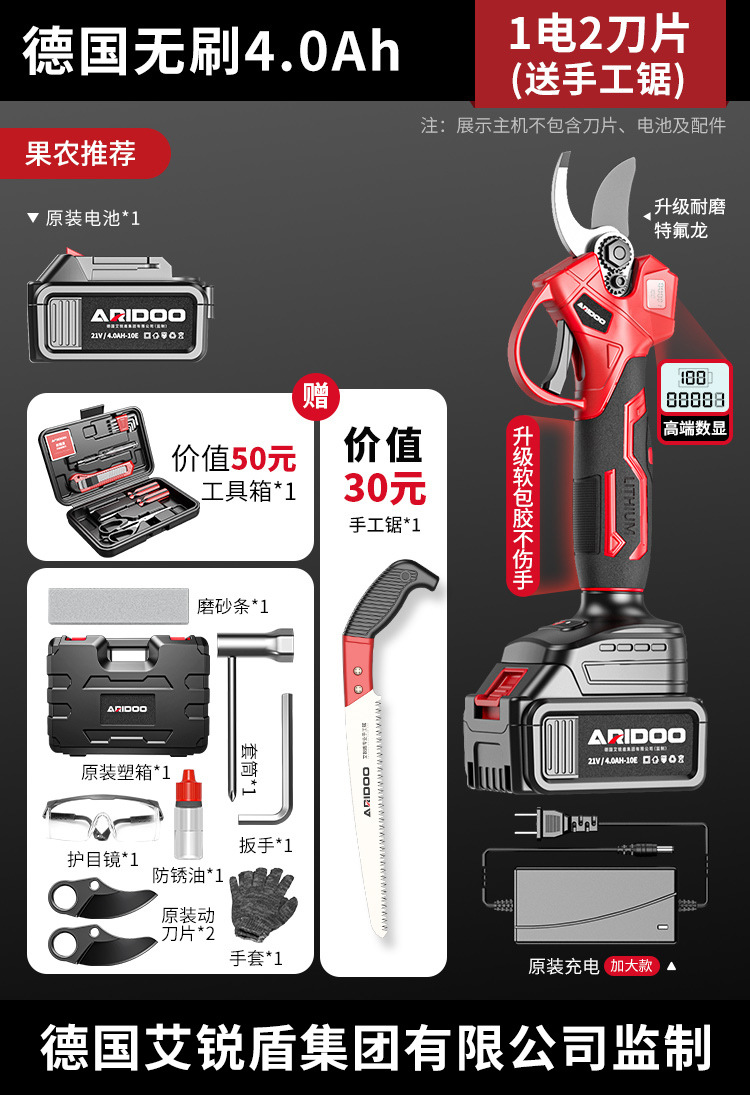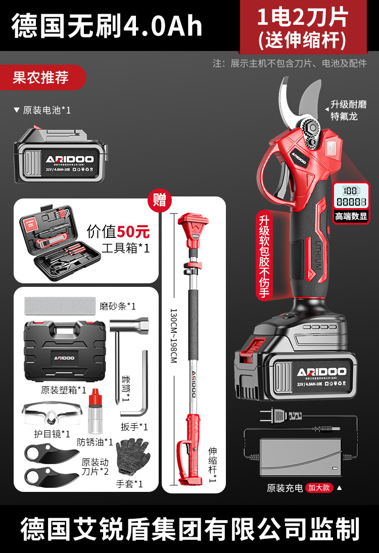 • 독일 브러시리스 4.0Ah 과일 농부는 배터리 1개와 블레이드 2개를 권장합니다.