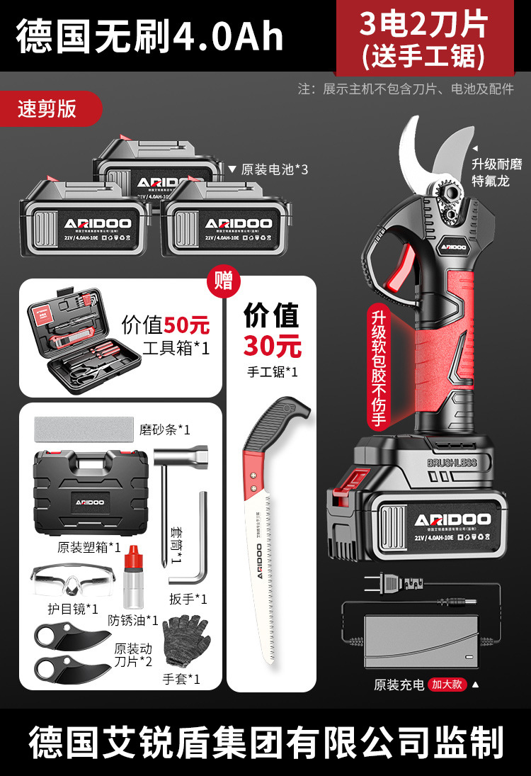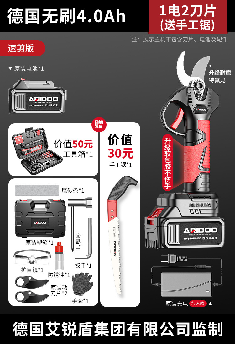 • 독일 브러시리스 4.0Ah 고속 전단 버전 3개 전기 2개 블레이드