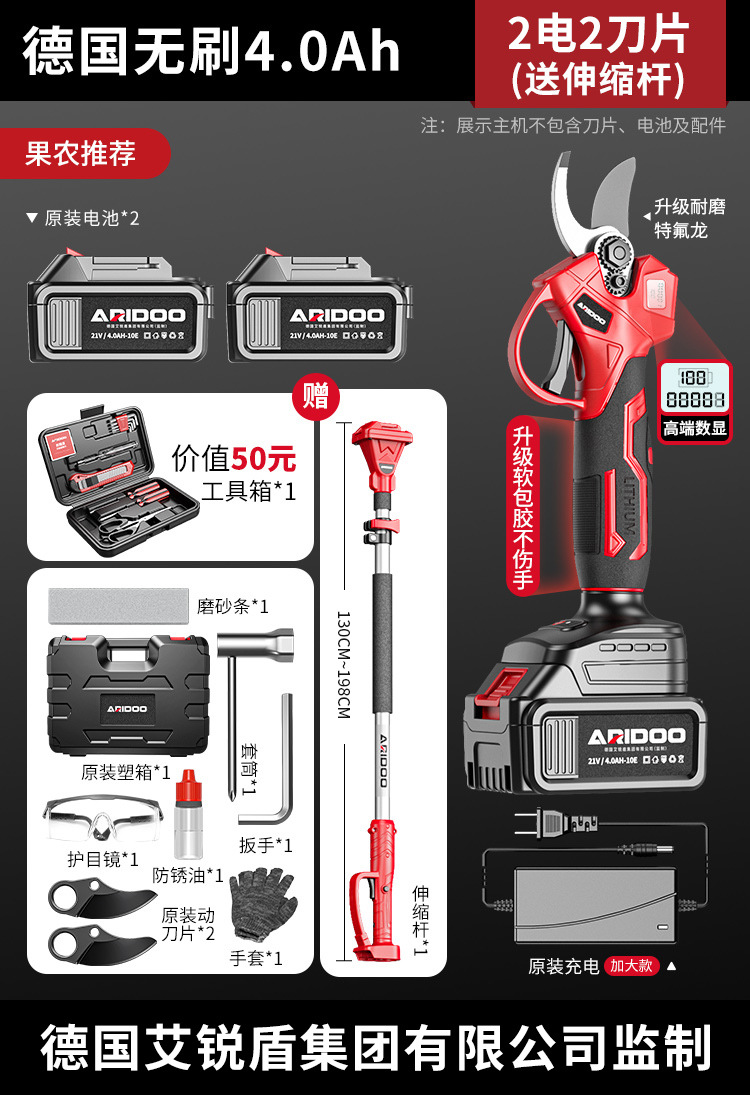 • 독일 브러시리스 4.0Ah 과일 농부는 전기 블레이드 1개와 블레이드 2개를 권장합니다(텔레스코픽 폴 포함).