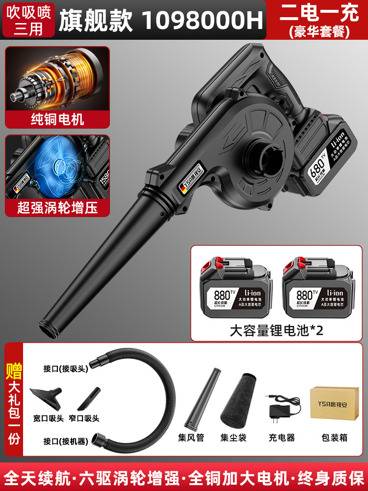 고출력 헤어 드라이어, 강력한 먼지 제거 송풍기, 리튬 배터리, 작은 산업용 진공 청소기, 충전식 전기 옥토폴