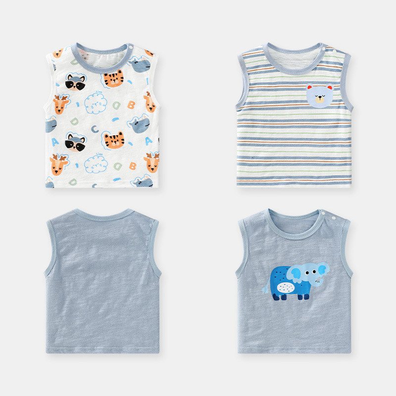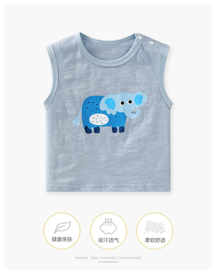 [10A 항균] 여름 새로운 어린이 민소매 티셔츠 소년 면화 인쇄 조끼 여자 아기 코트 t