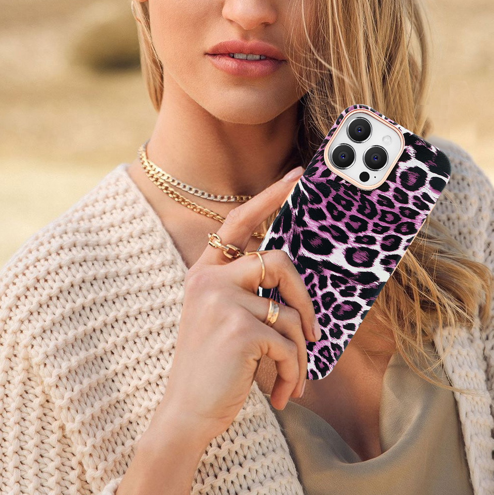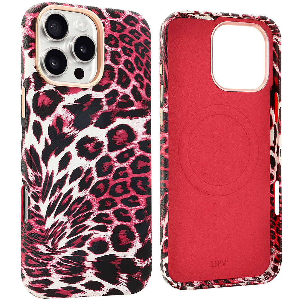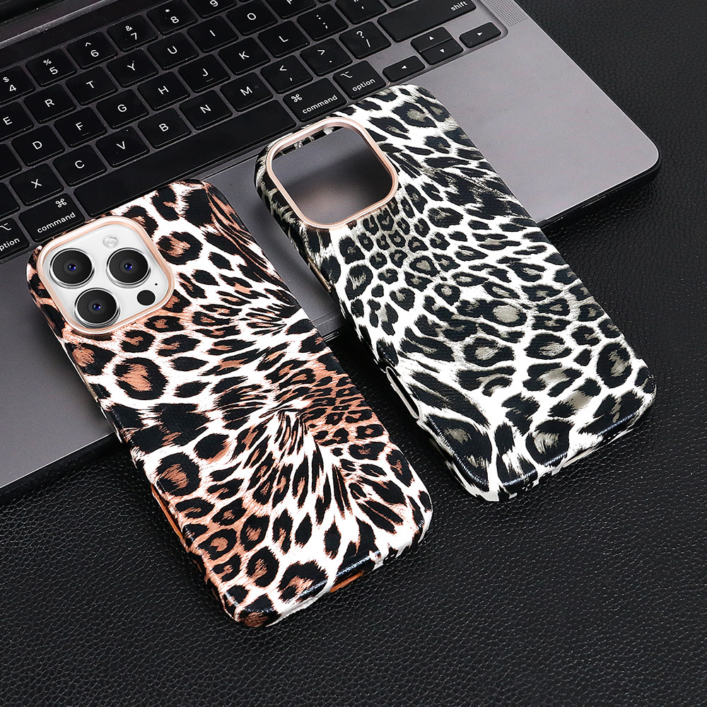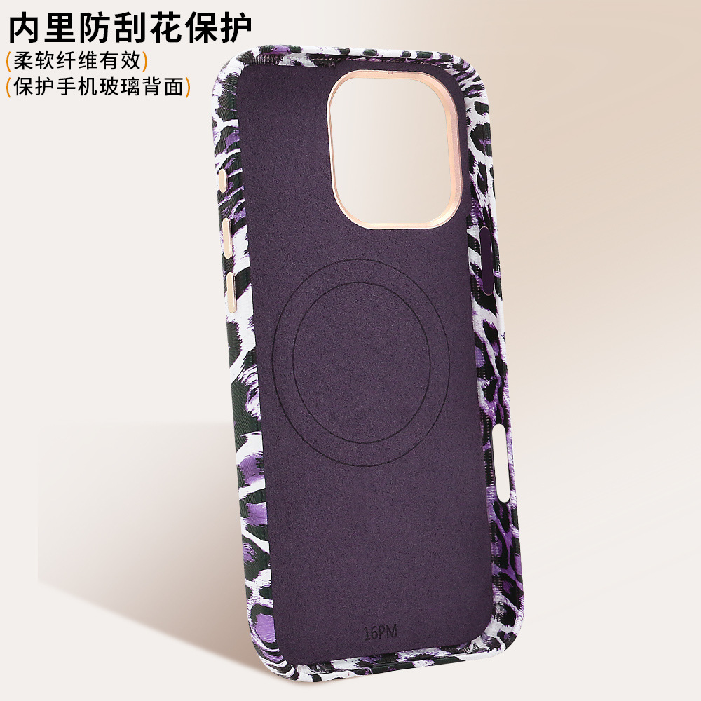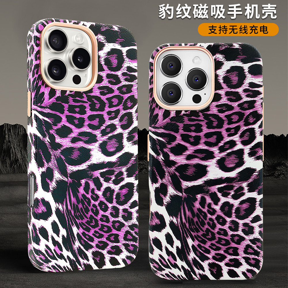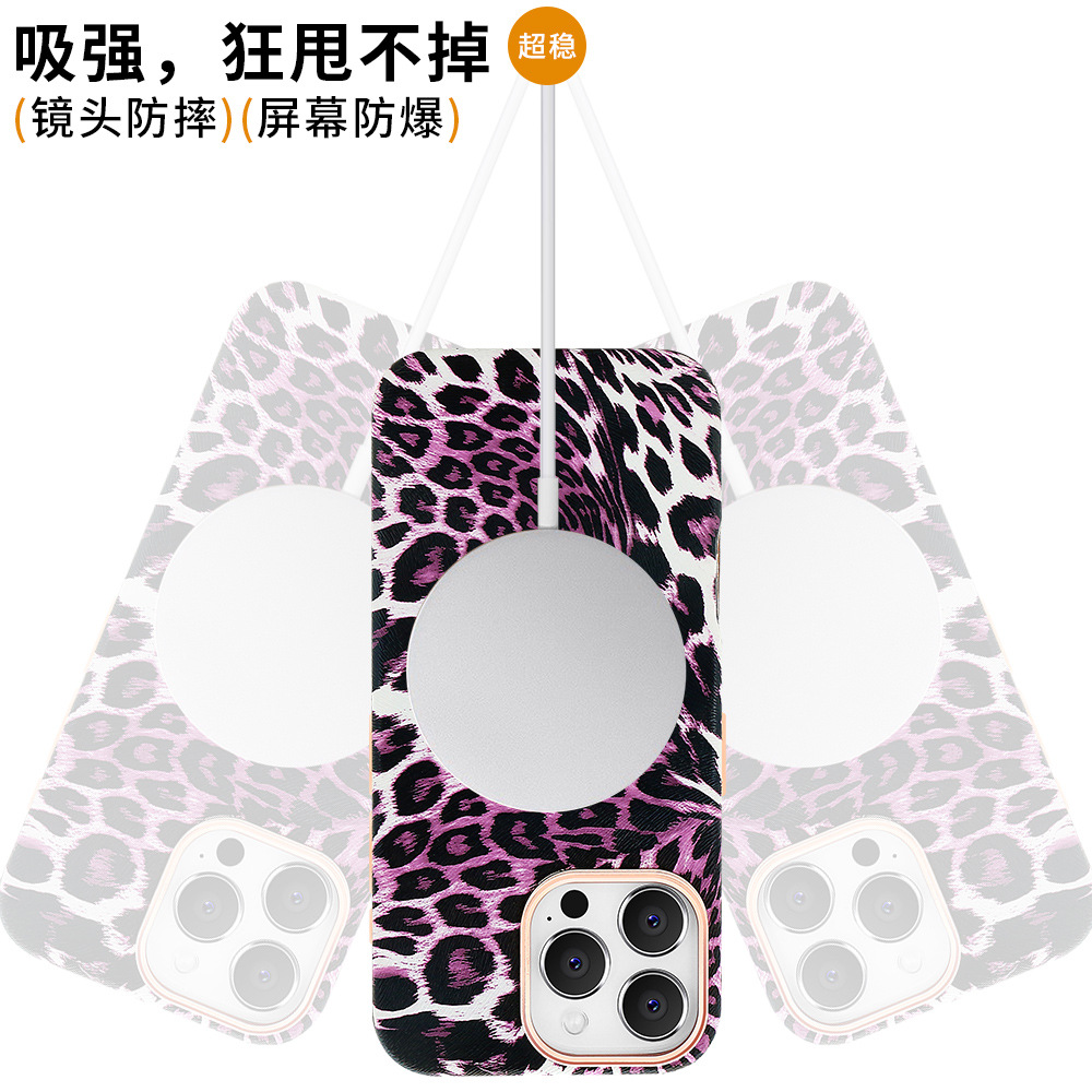 iPhone16Promax 휴대 전화 케이스에 적합 표범 무늬 강한 자기 흡입 케이스 유럽과 미국의 패션 Apple 15 13 휴대 전화 케이스