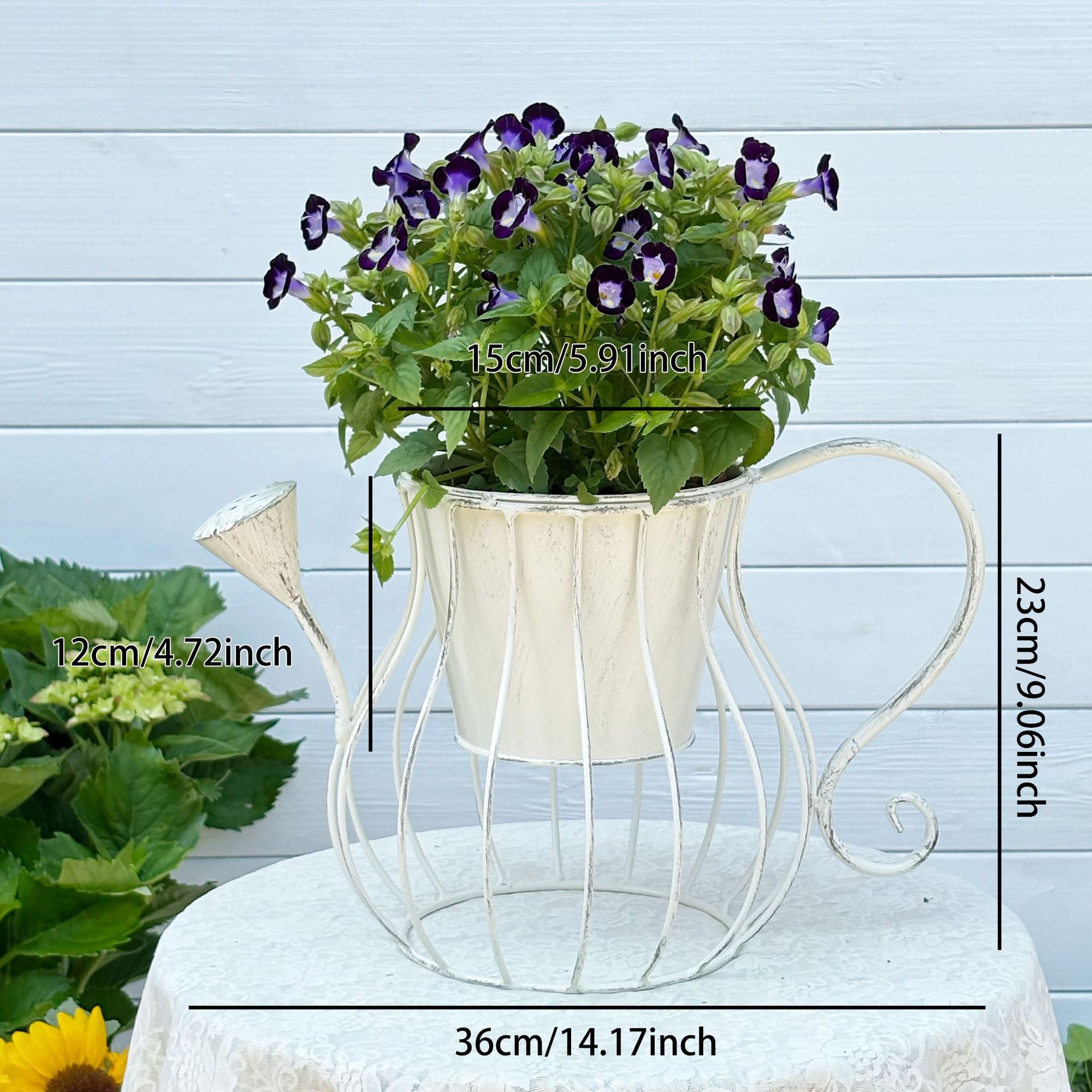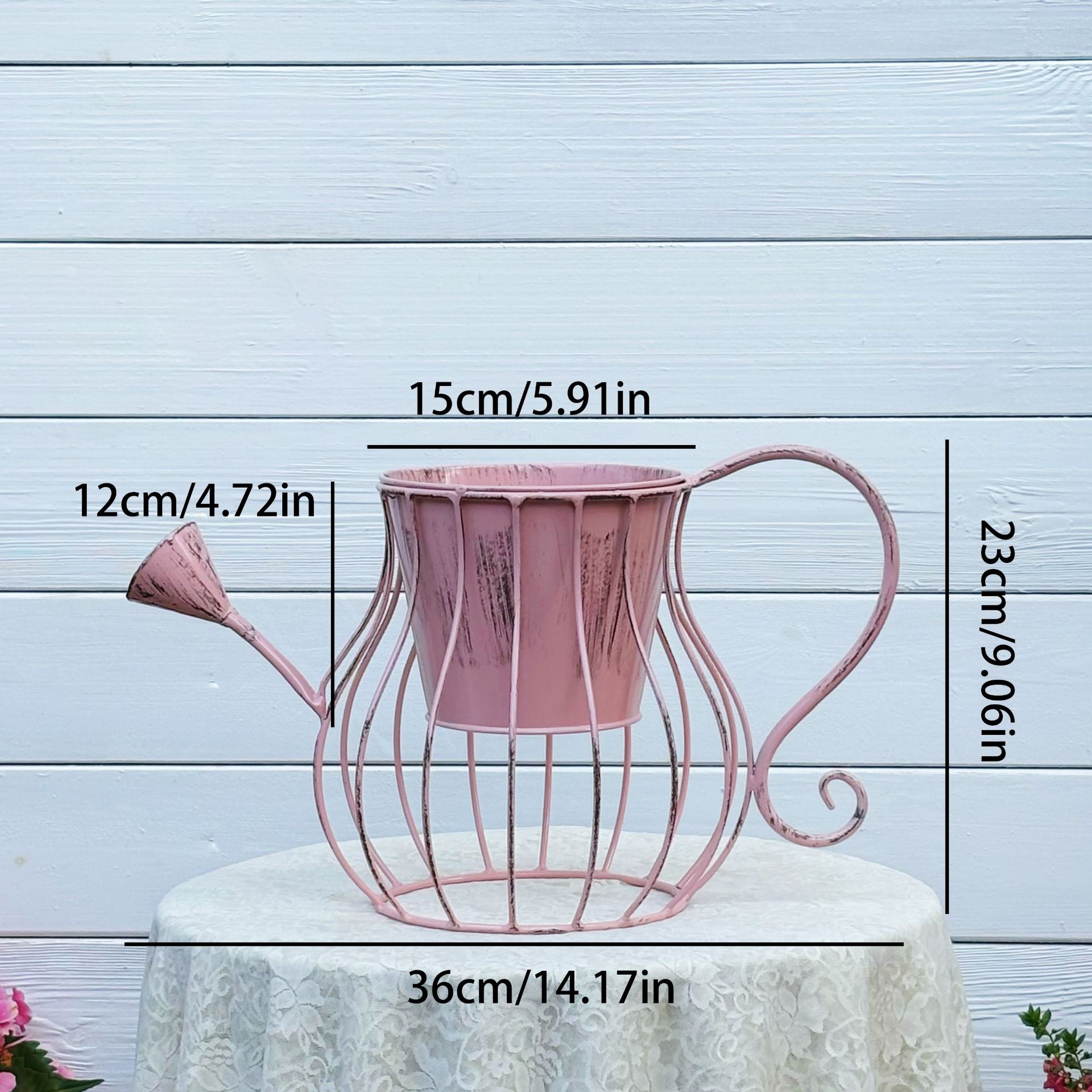 temu 국경 간 복고풍 철 막대 물뿌리개 화분 벽걸이 화분 구경 정원 발코니 장식 화분