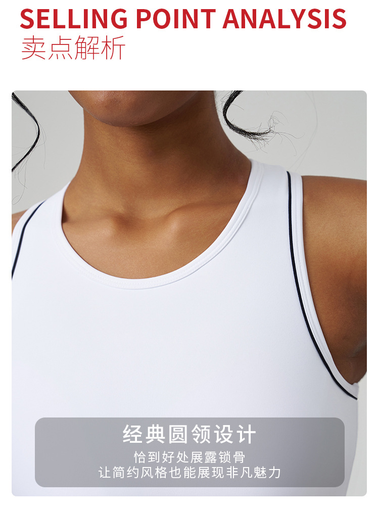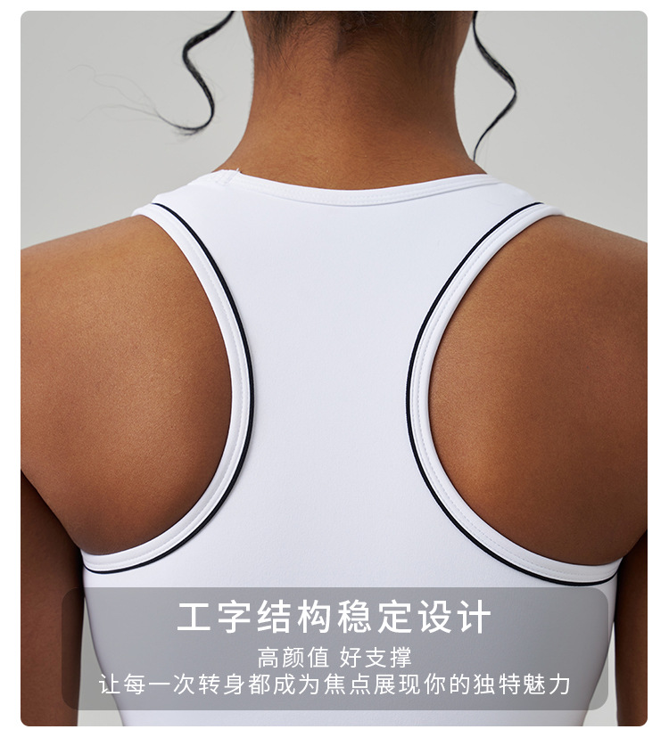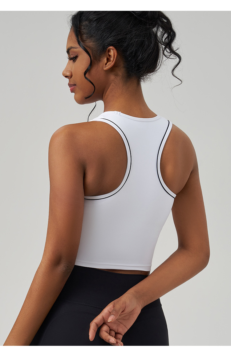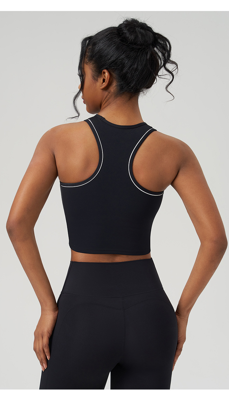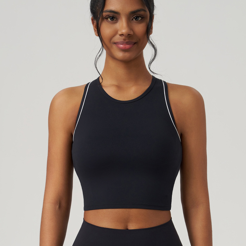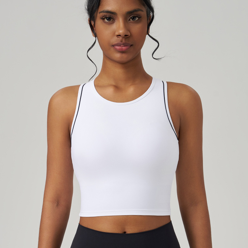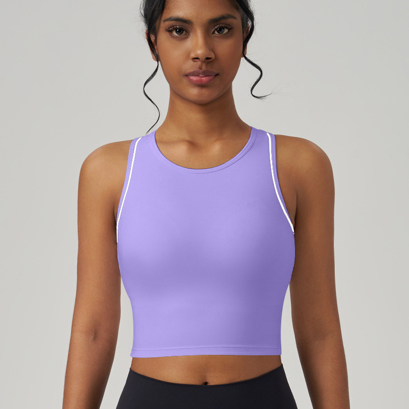 흉부 패드 충격과 통합 된 와튼 타이트 요가 조끼 I 자형 백 라운드 넥 컬러 매칭 아우터 피트니스 조끼