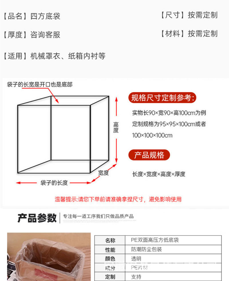 제조업체의 스팟 사각형 바닥 가방 pe 사각형 방습 라이너 가방 카톤 내부 필름 가방 비닐 봉투 기계 장비 먼지 봉투스토어 가기