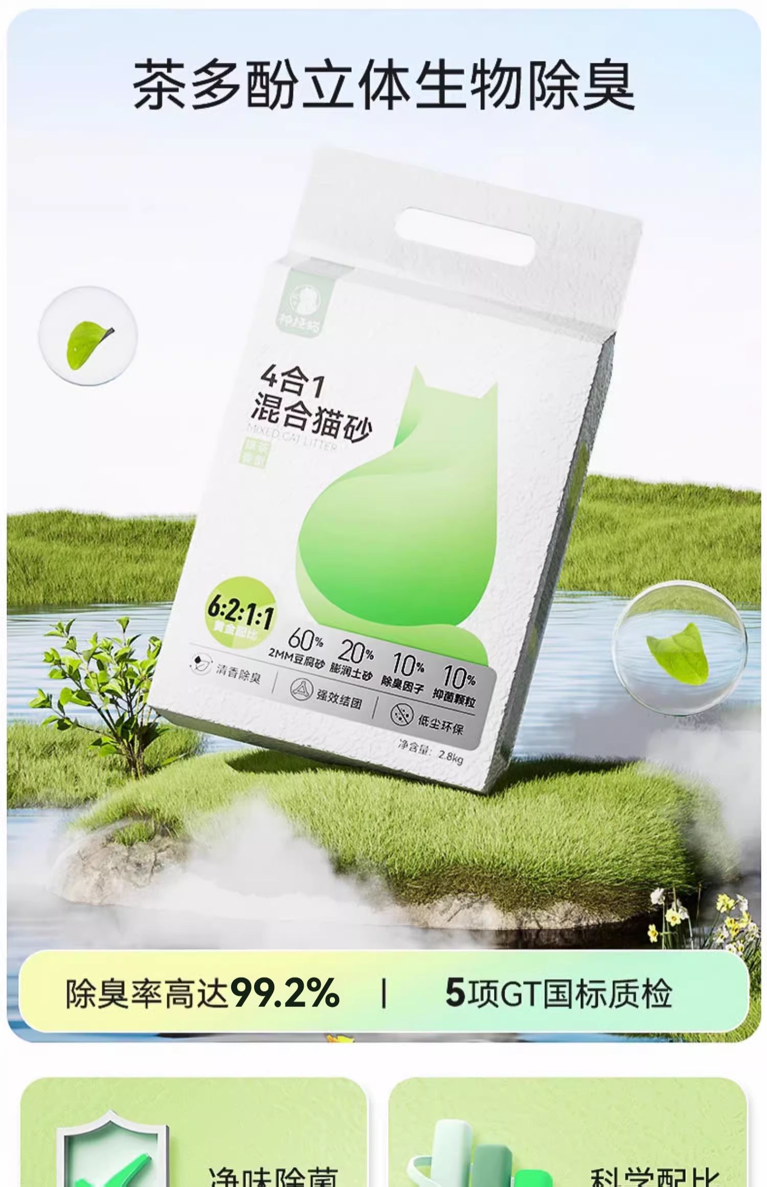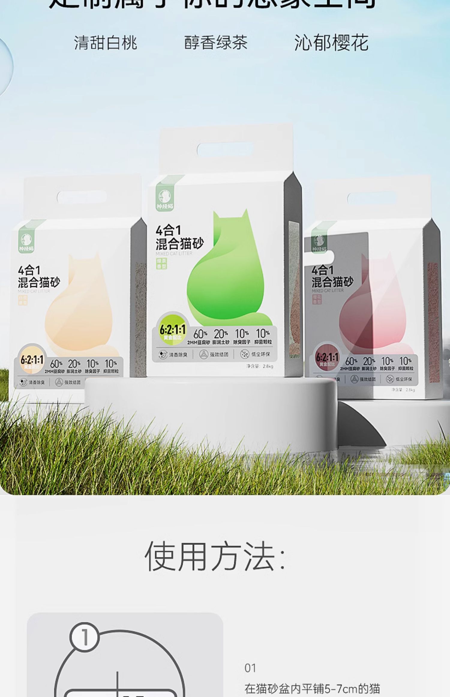 • 향기로운 녹차 혼합 고양이 모래 2.8kg