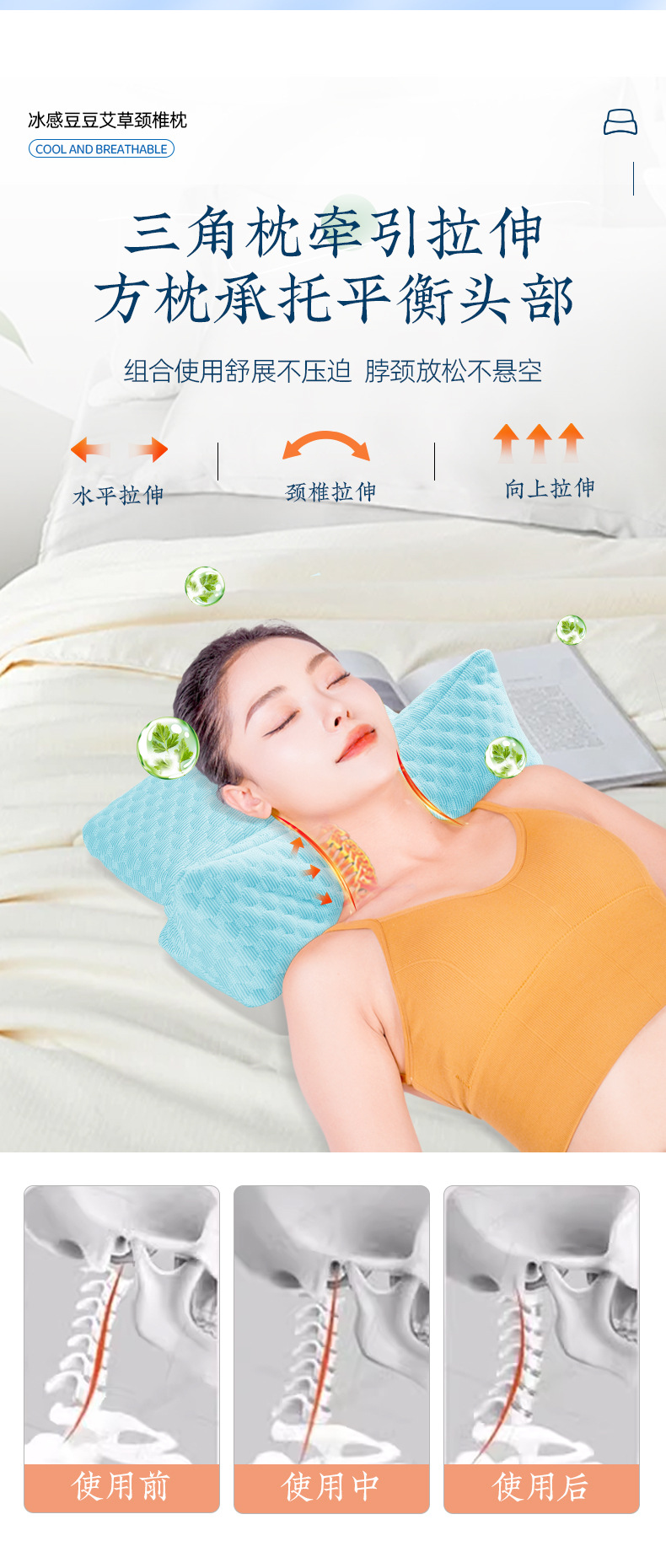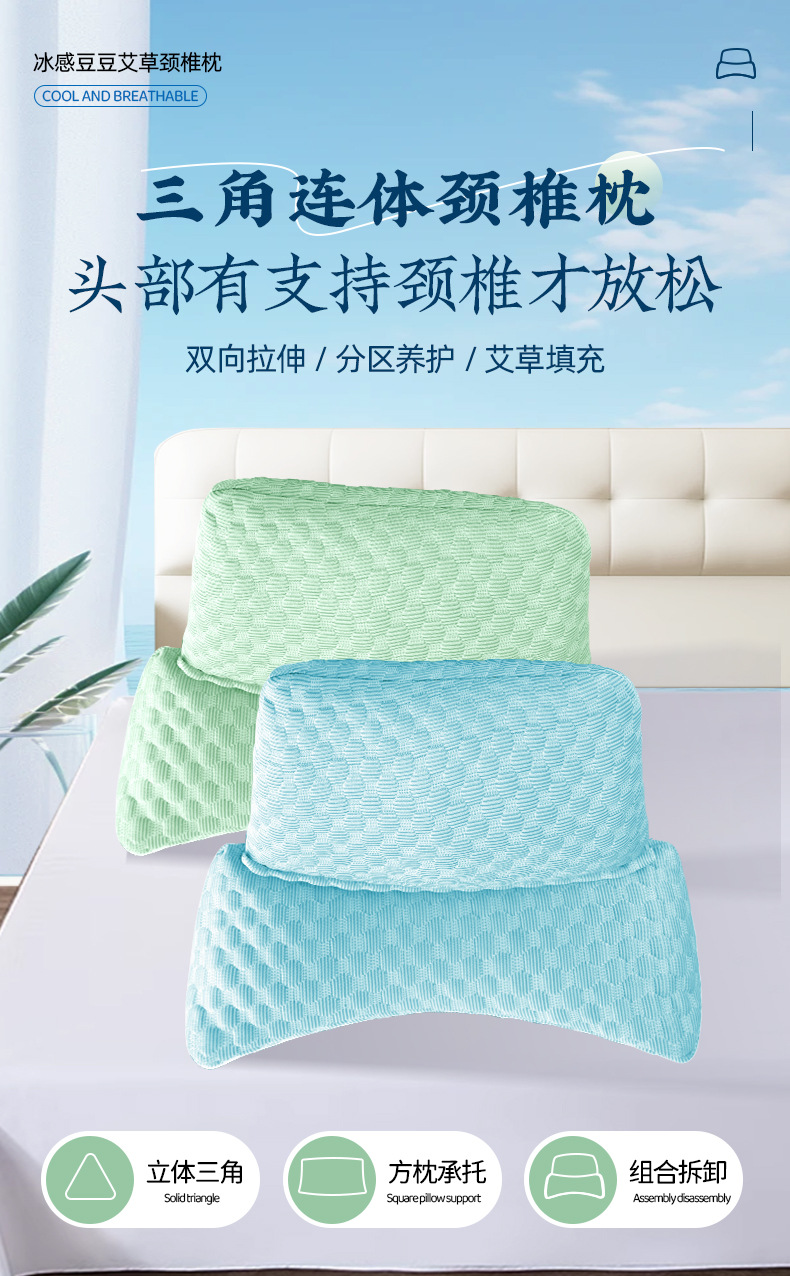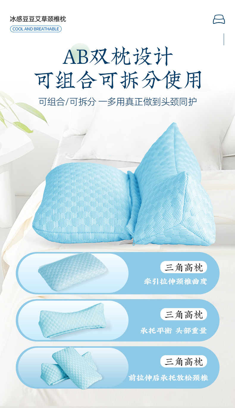 얼음 콩 쑥 베개 메밀 자궁 경부 척추 건강 베개 목 삼각형 결합 베개 여름 얼음 실크 매트 베개스토어 가기
