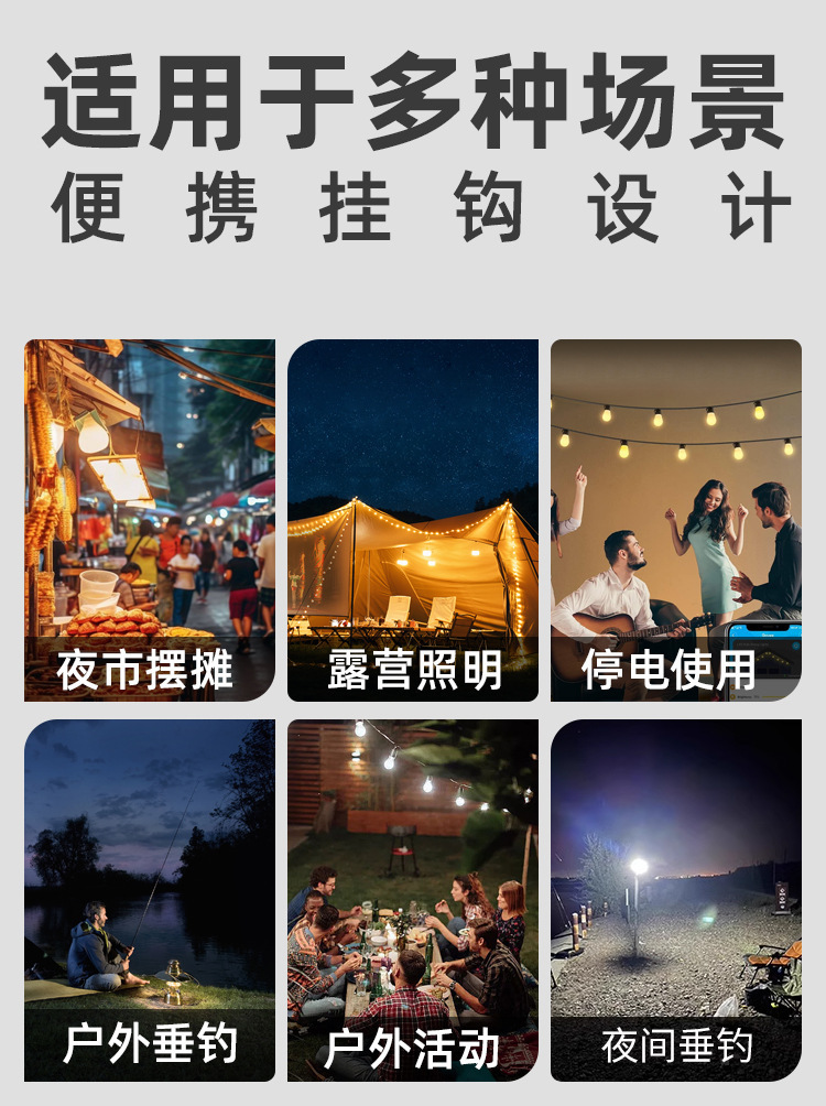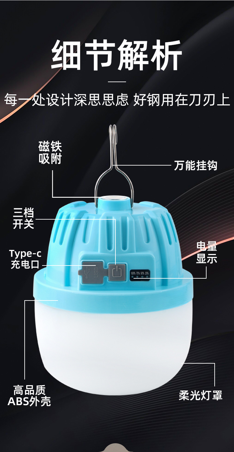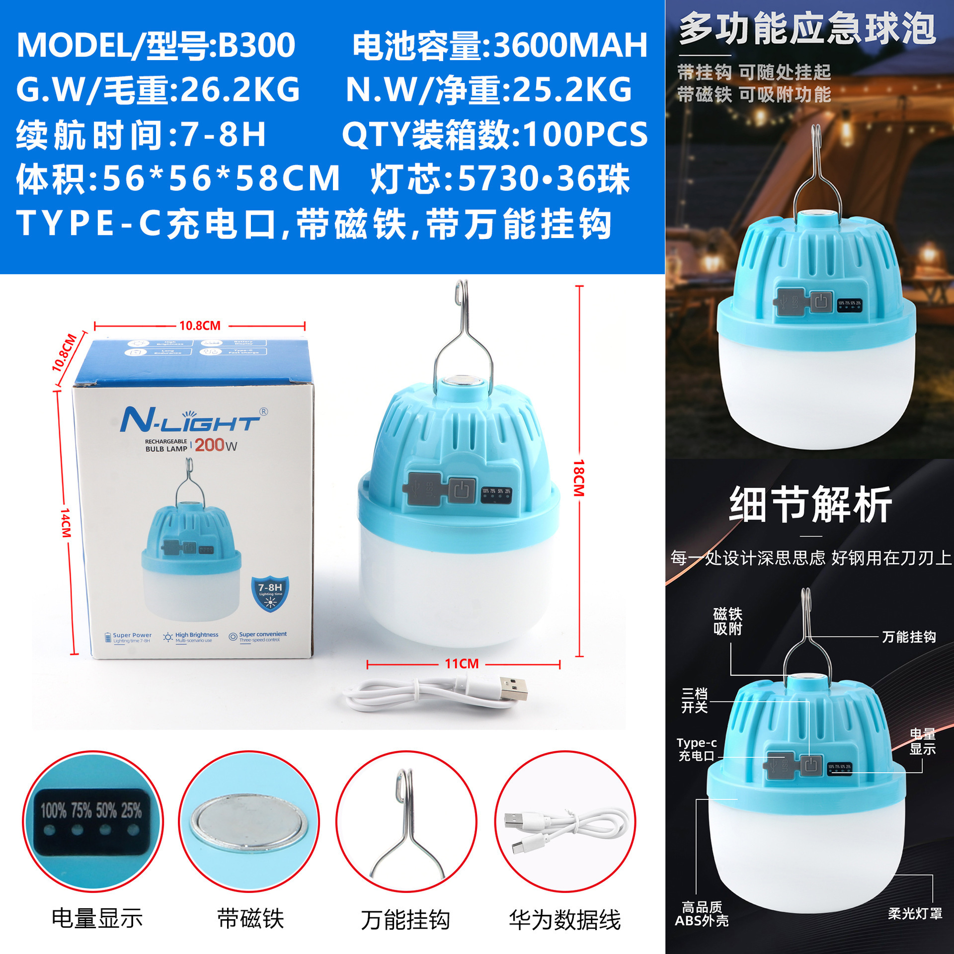 야외 충전식 전구, 야시장 전구, 자석이 있는 에너지 절약형 초고휘도 비상 조명, 스톨 캠프 스톨 램프