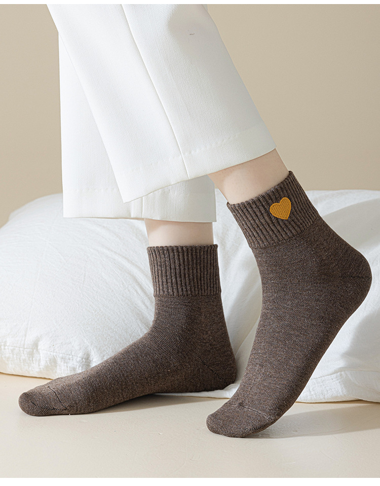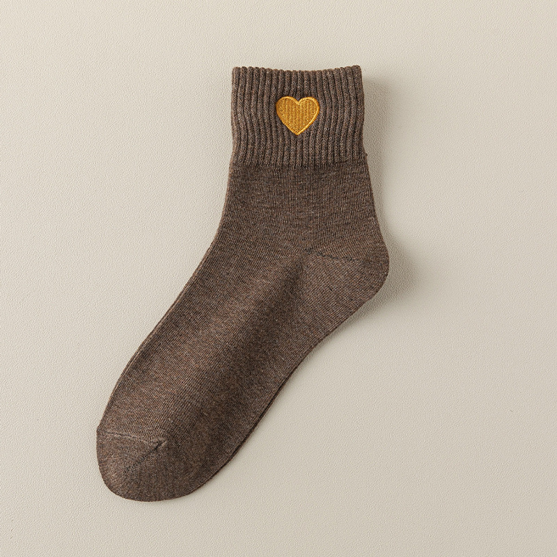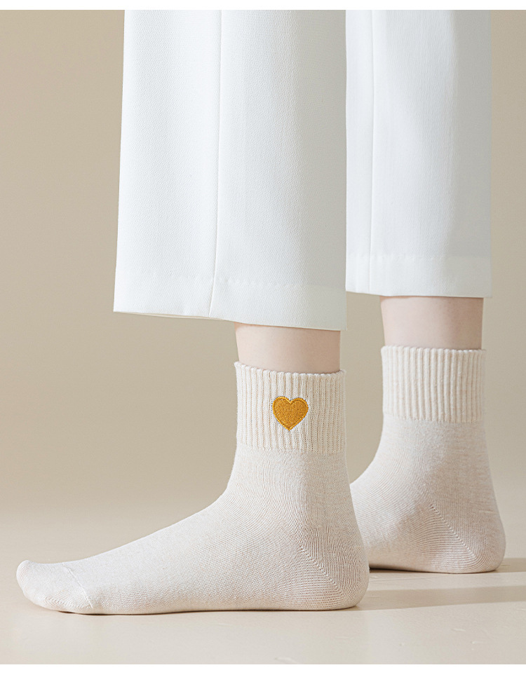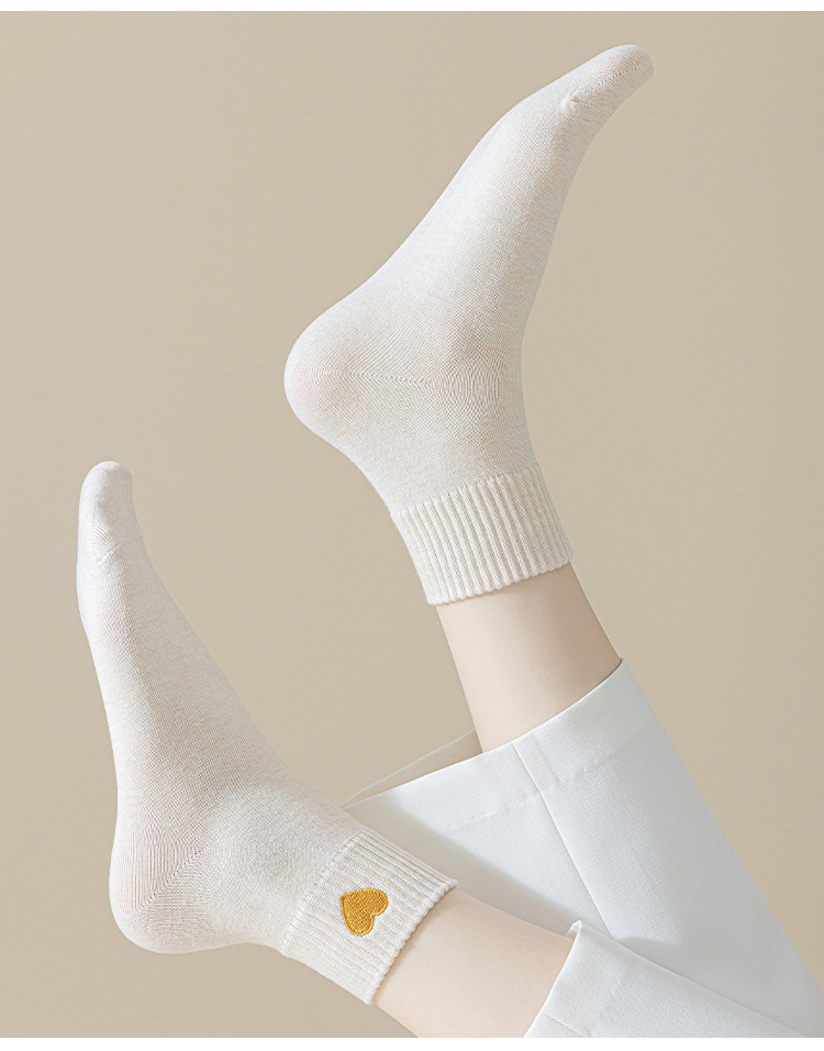 중간 튜브 양말 어린이 봄과 여름 단색면 양말 숙녀 사랑 자수 땀 흡수성 탈취제 스타킹 Zhuji 여성 양말 도매