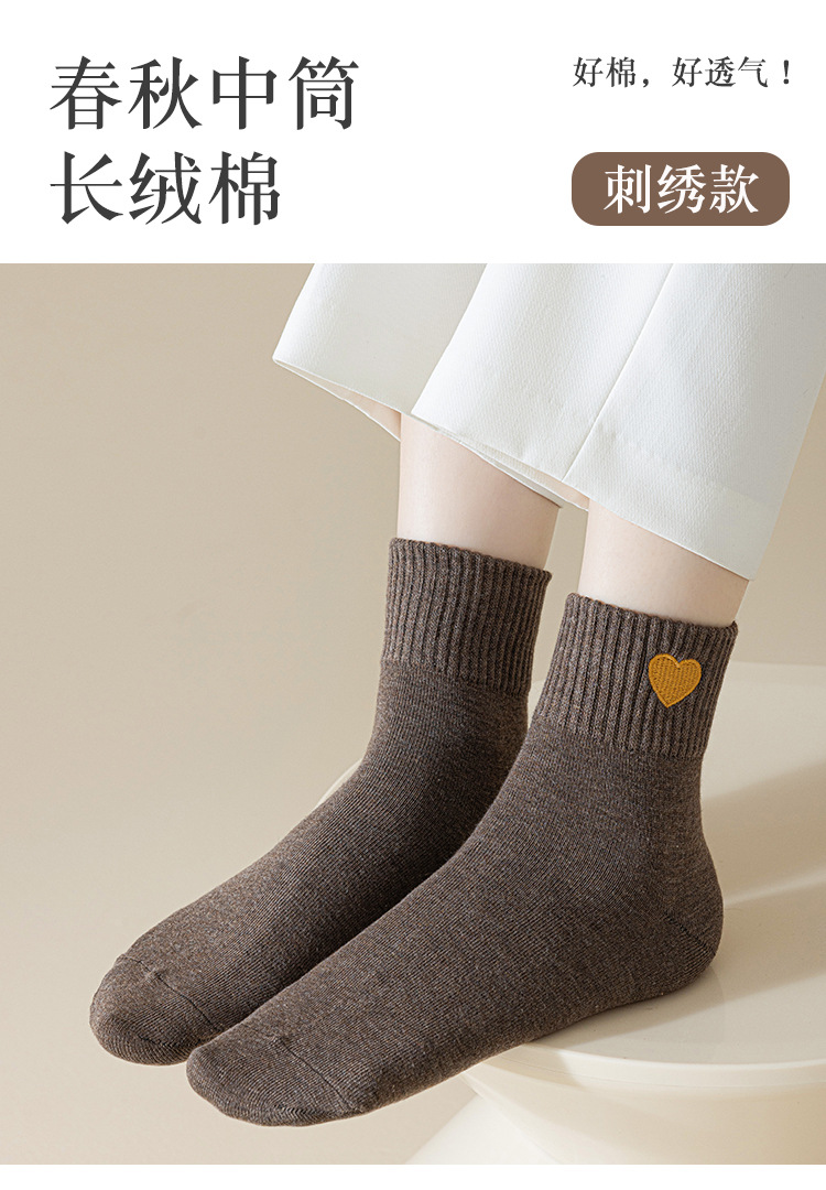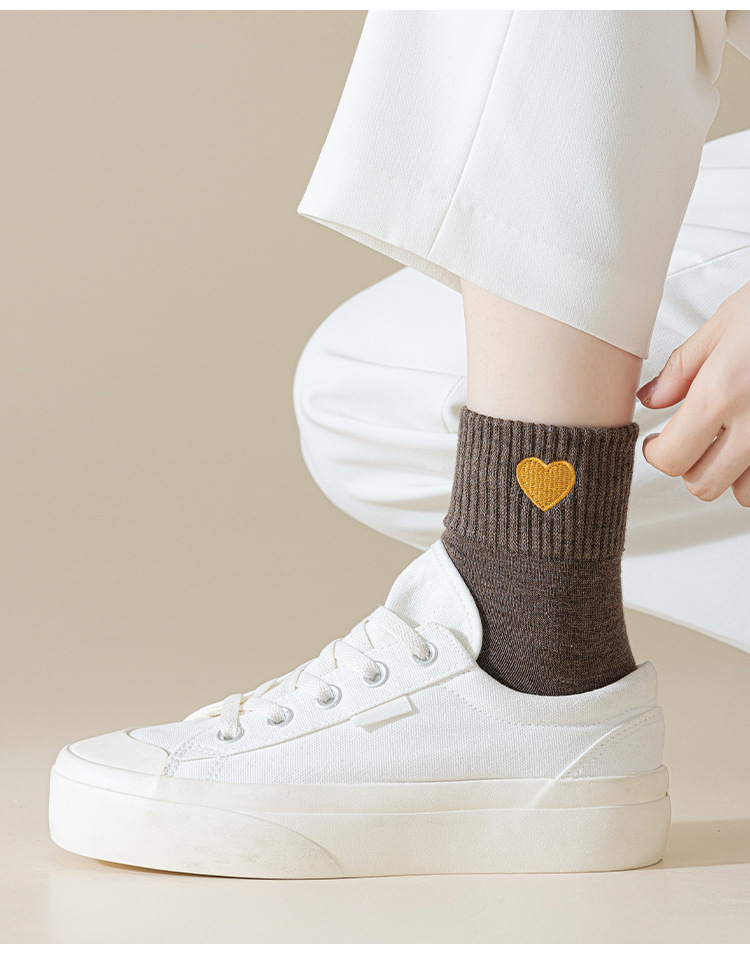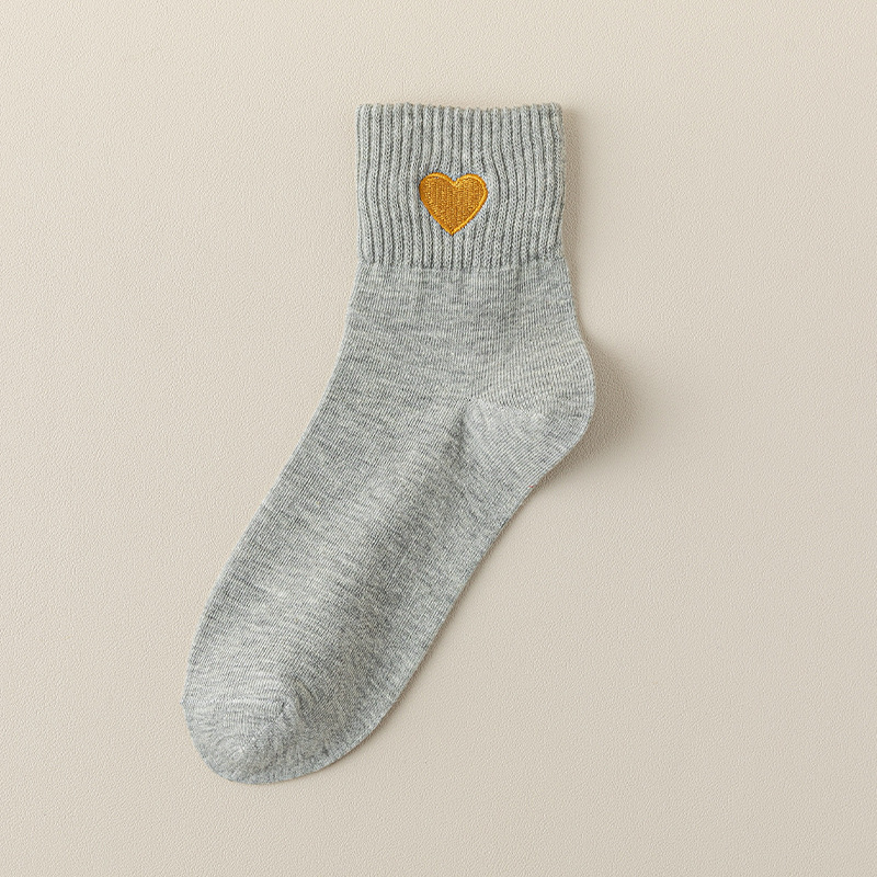 중간 튜브 양말 어린이 봄과 여름 단색면 양말 숙녀 사랑 자수 땀 흡수성 탈취제 스타킹 Zhuji 여성 양말 도매스토어 가기