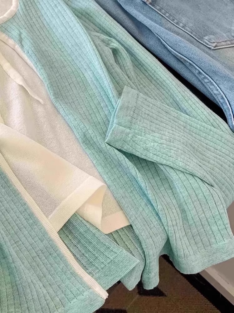 작은 신선한 녹색 봄 착용 톱 한국 스타일 디자인 센스 부드러운 레이스 업 가짜 투피스 카디건 니트웨어 여성용 의류스토어 가기