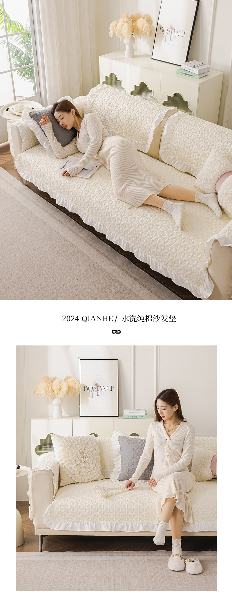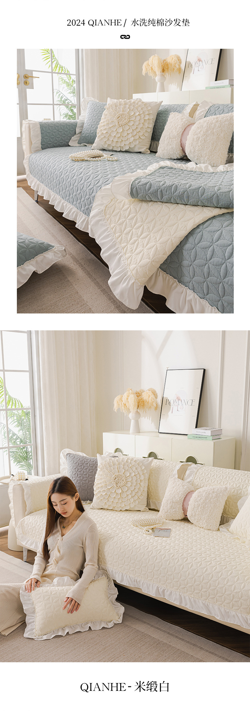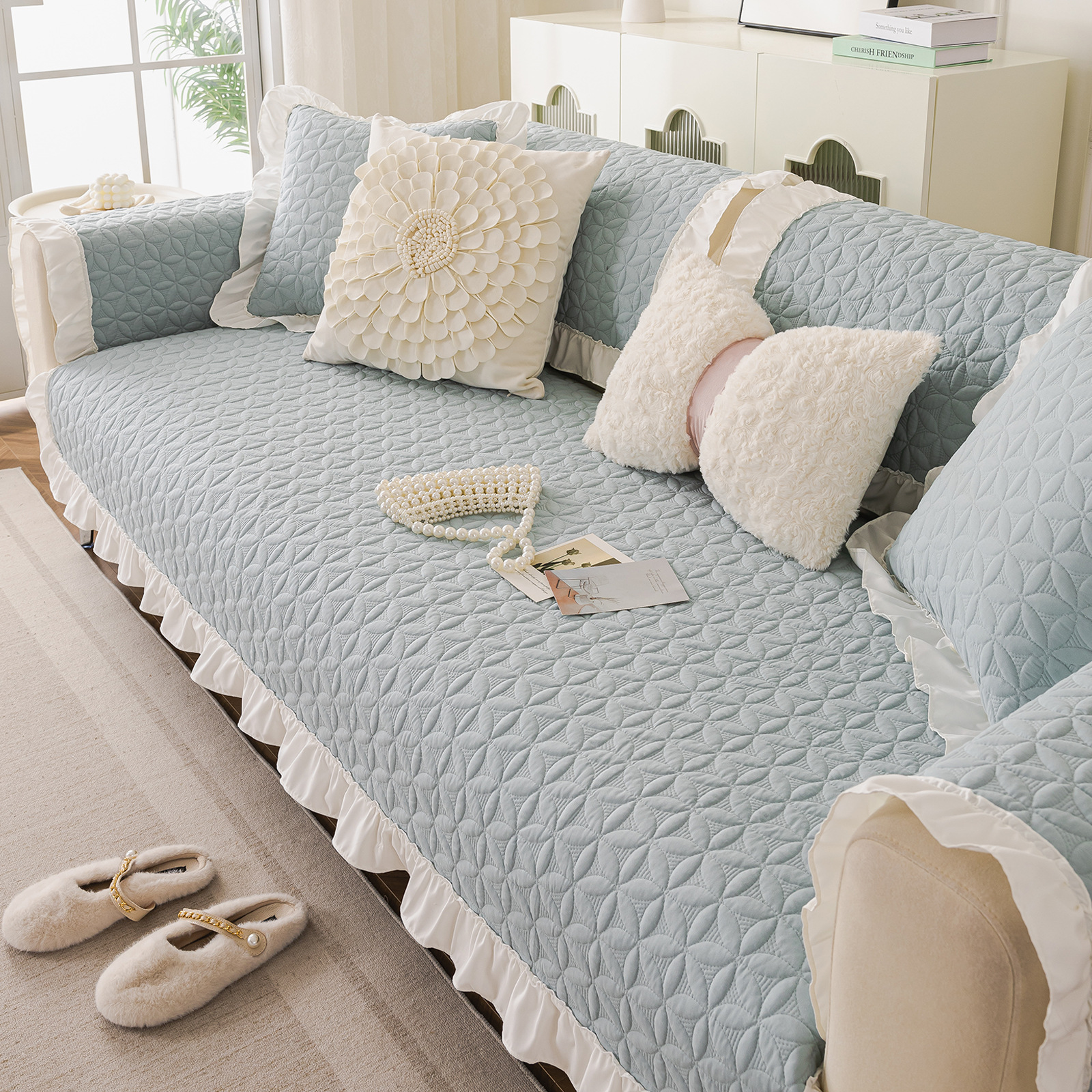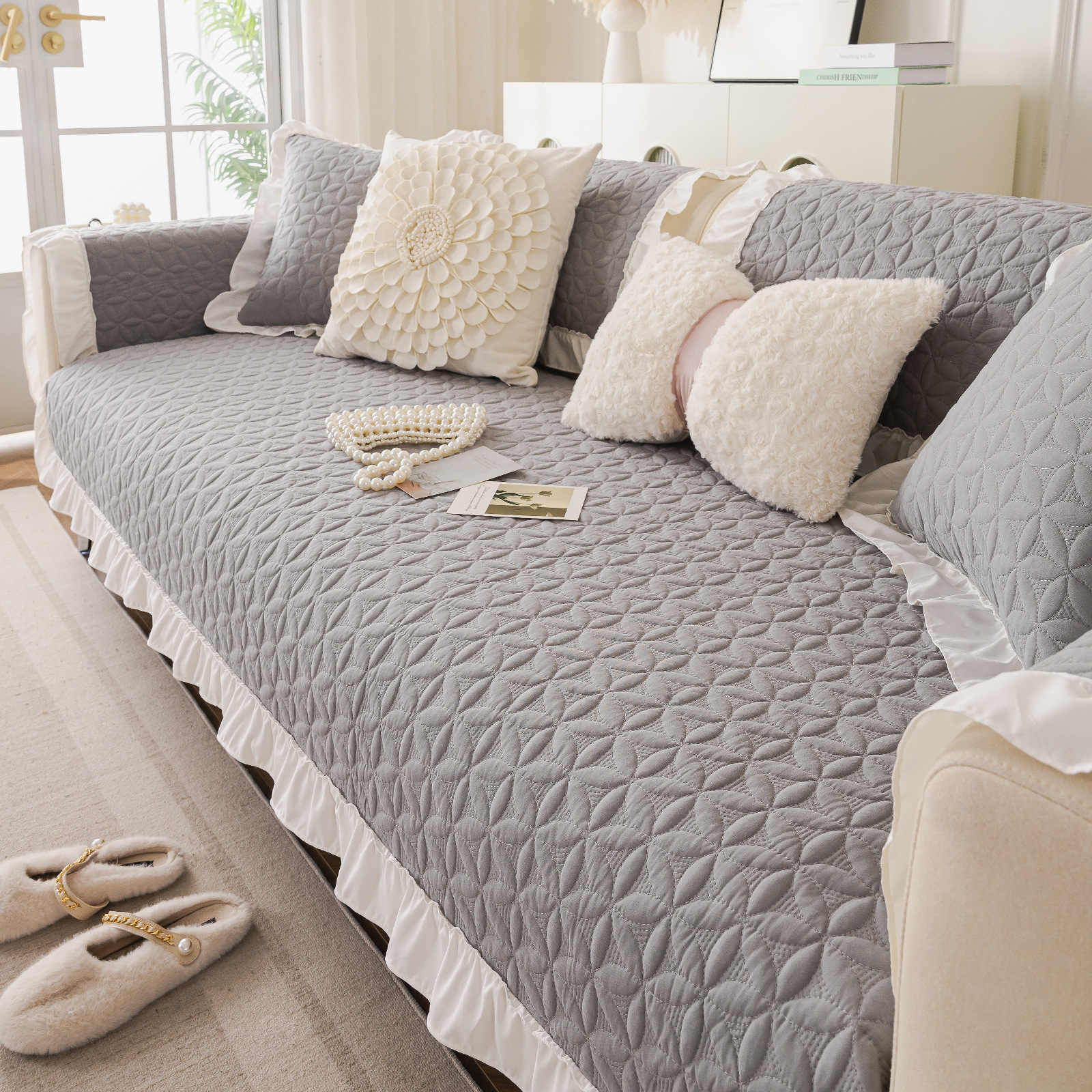 사계절 유니버설 워시블 코튼 소파 쿠션 모든면 패브릭 커버 타월 미끄럼 방지 커버 타월 작은 신선한 쿠션 목회 스타일
