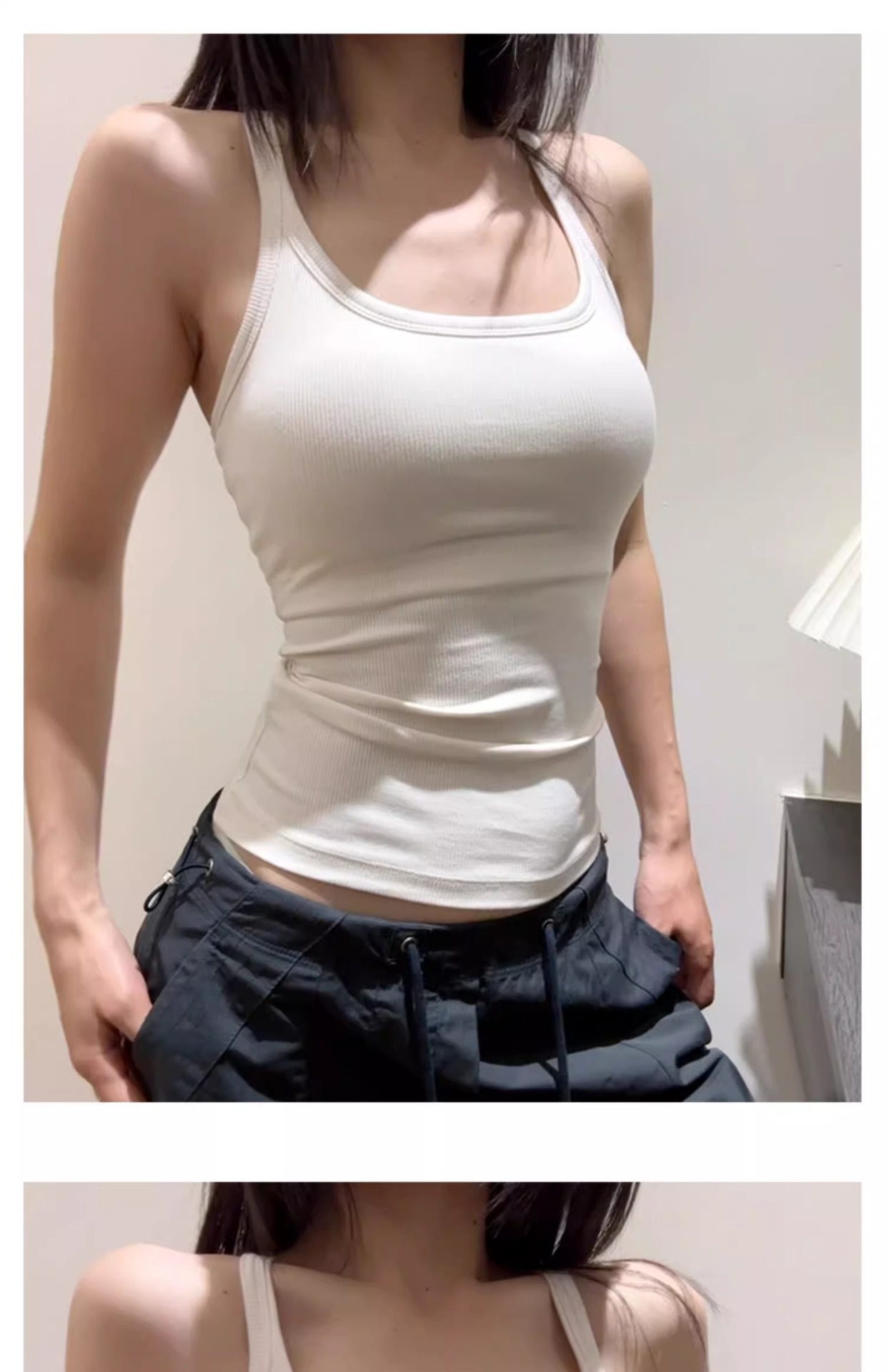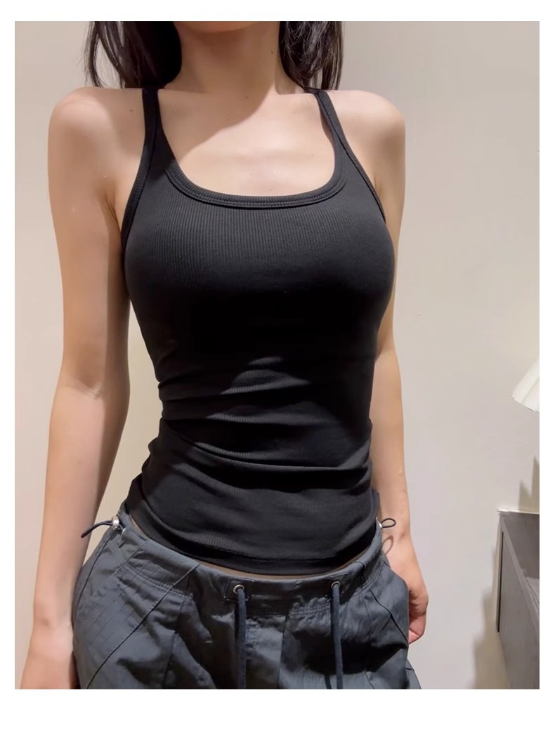 아메리칸 스타일 카미 솔 여성의 여름 얇은 내부 2025 새로운 스타일 민소매 탑 가슴 패드 가슴 커버 스포츠 교수형 목스토어 가기