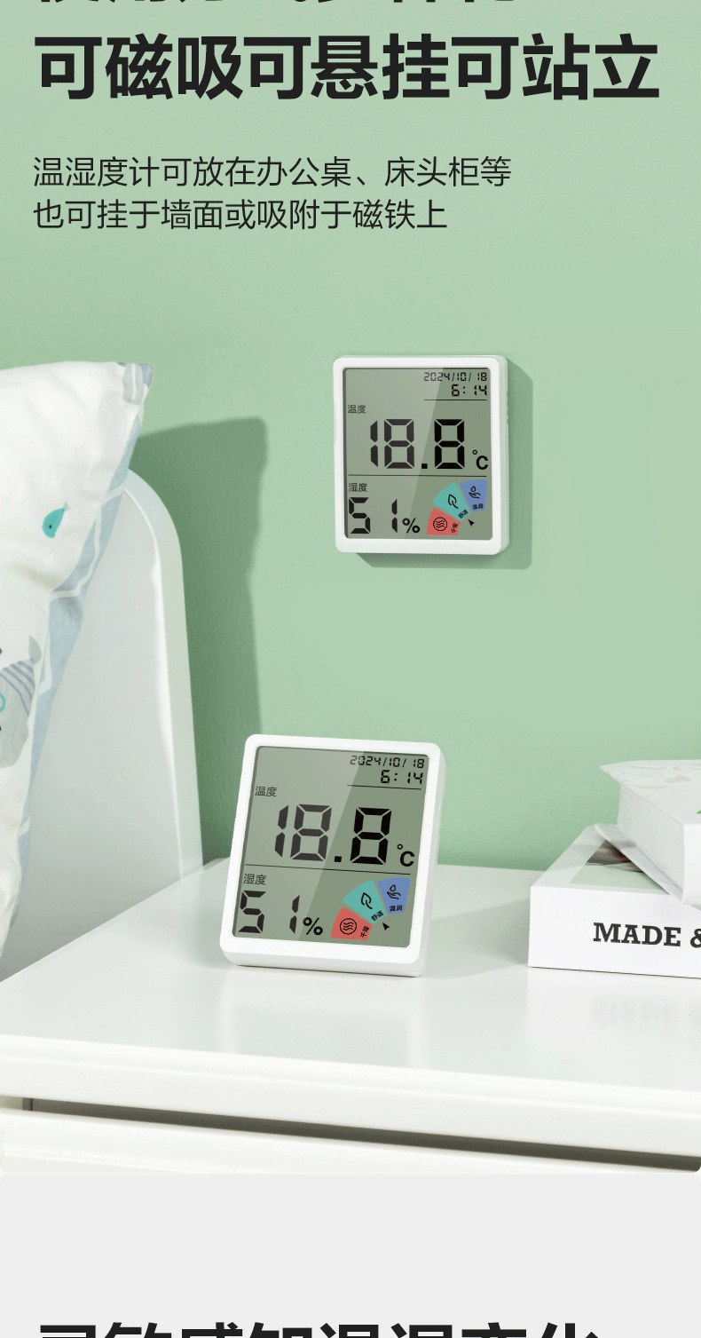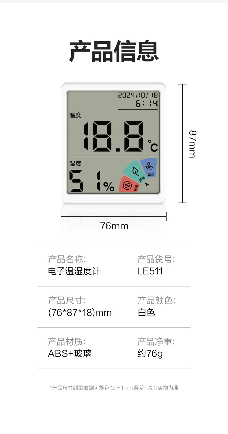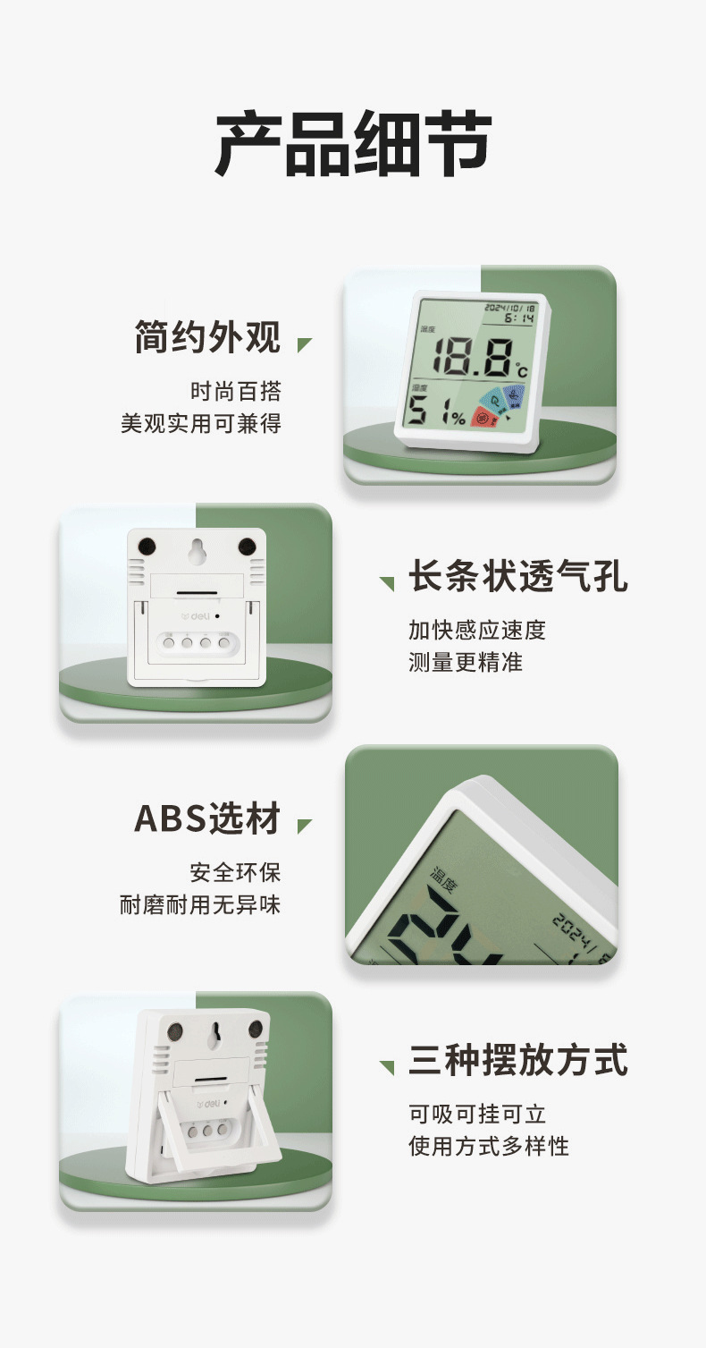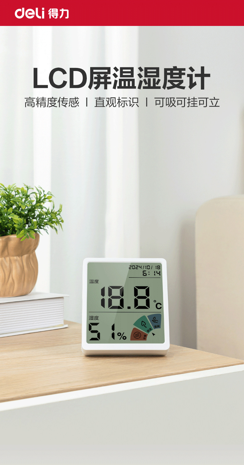 델리 LE511 전자 온도 및 습도 측정기 온도 및 습도 측정기/미터 사무실 홈 벽 장착 데스크탑 베이비 룸